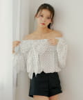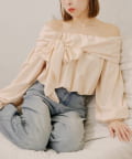 オフショルリボンバルーンブラウス