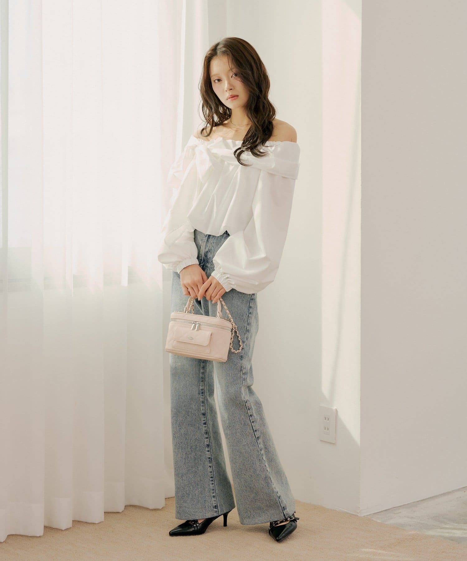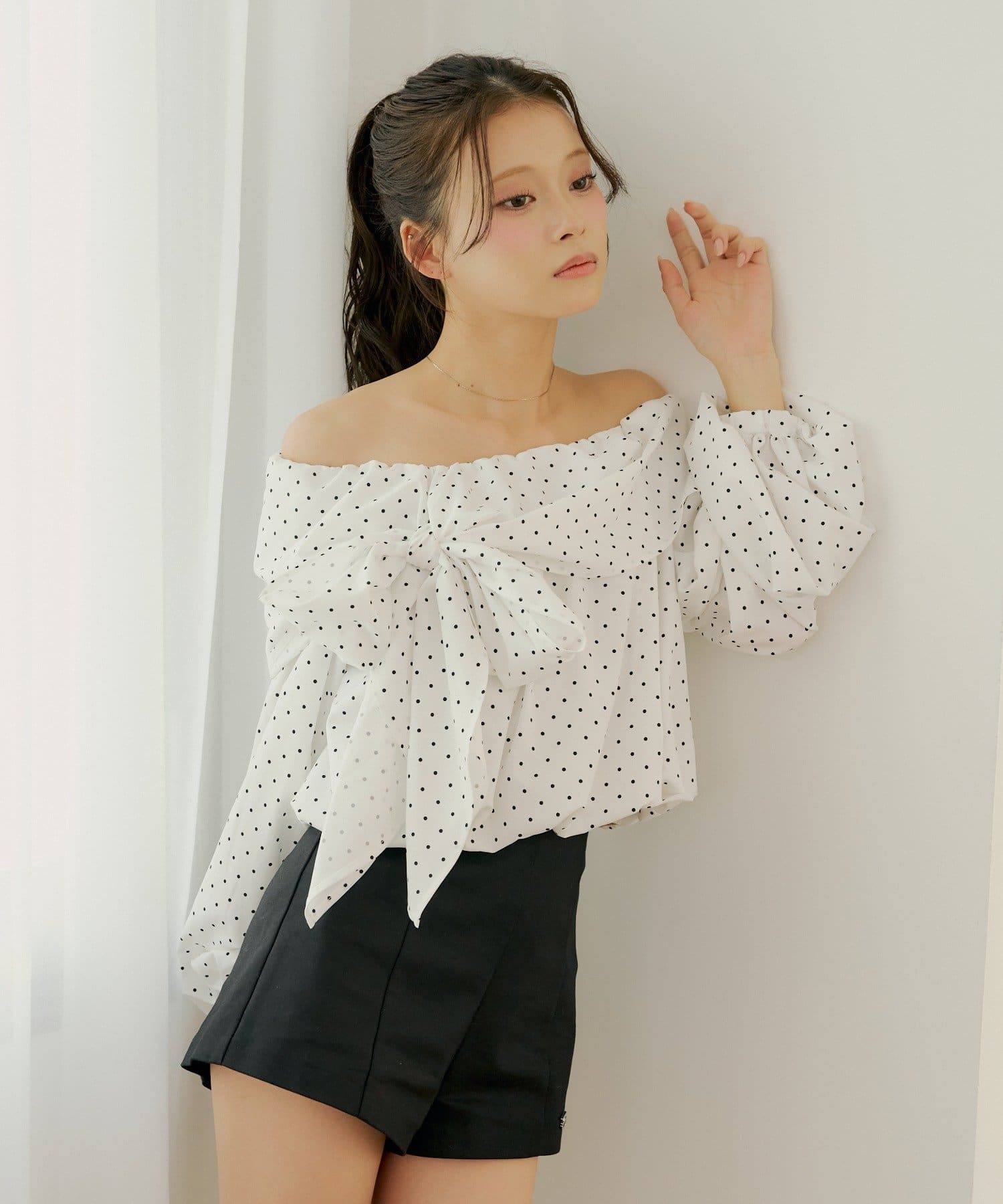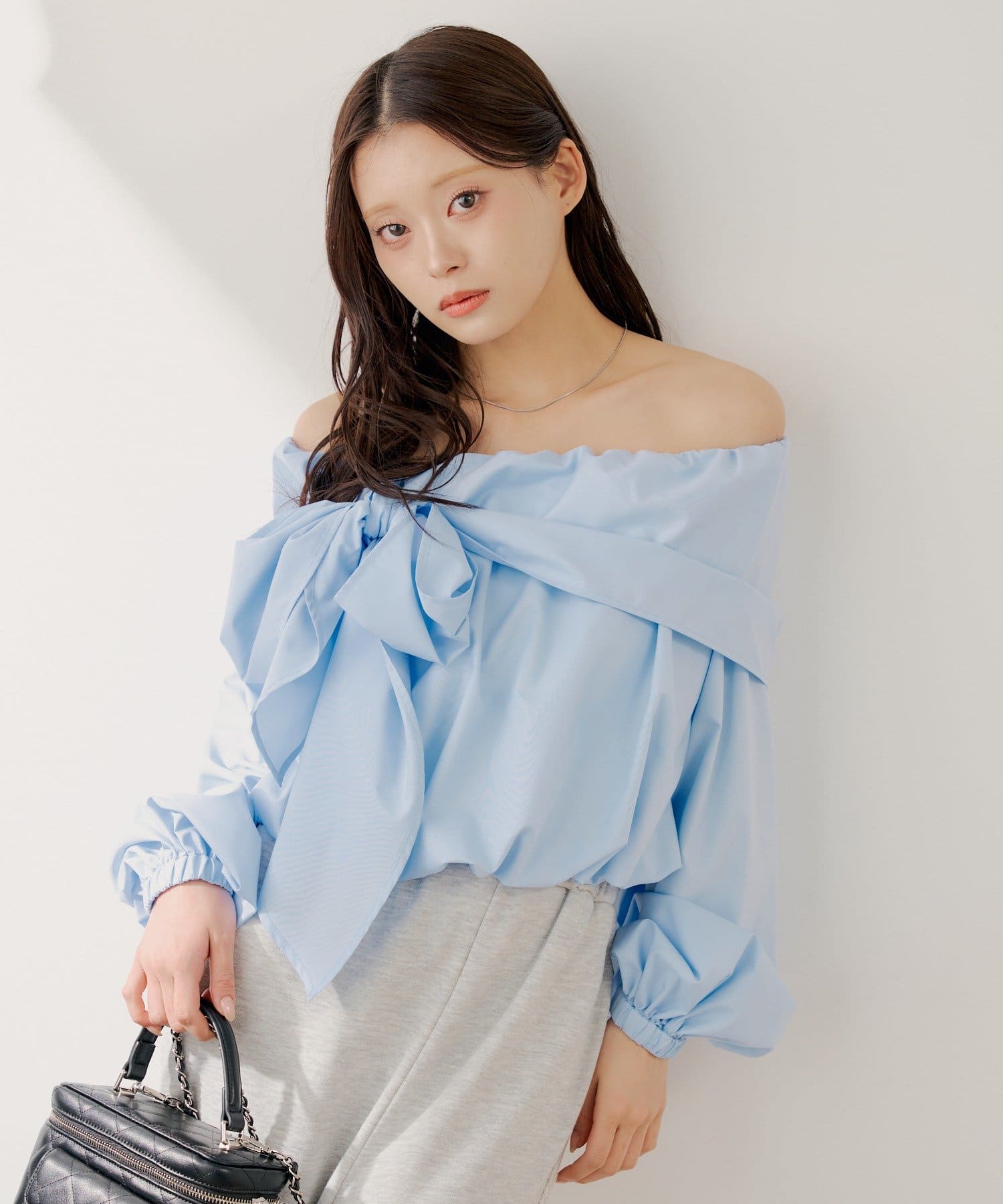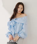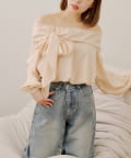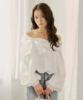 リボンとバルーン袖が目を惹くオフショルブラウス登場!