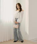 ・オフショルダーデザインがデコルテラインを綺麗に見せ、抜け感をプラス。