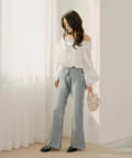 ・ミニボトムと合わせるとフェミニンなスタイルにも。