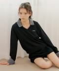 ・襟元と袖口のチェックやストライプ柄が、さりげないワンポイントアクセントにも。