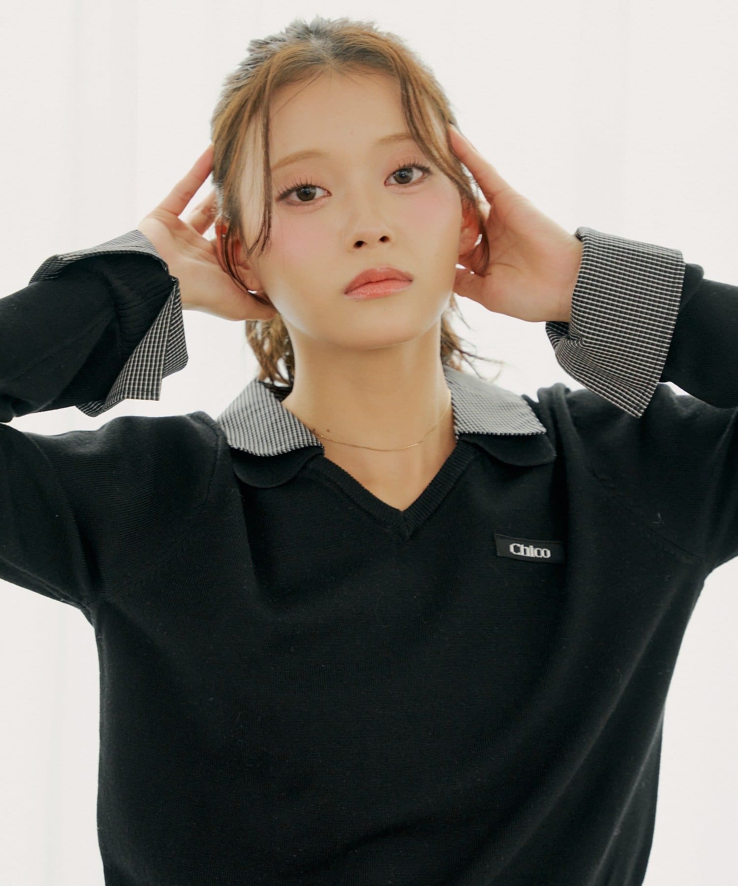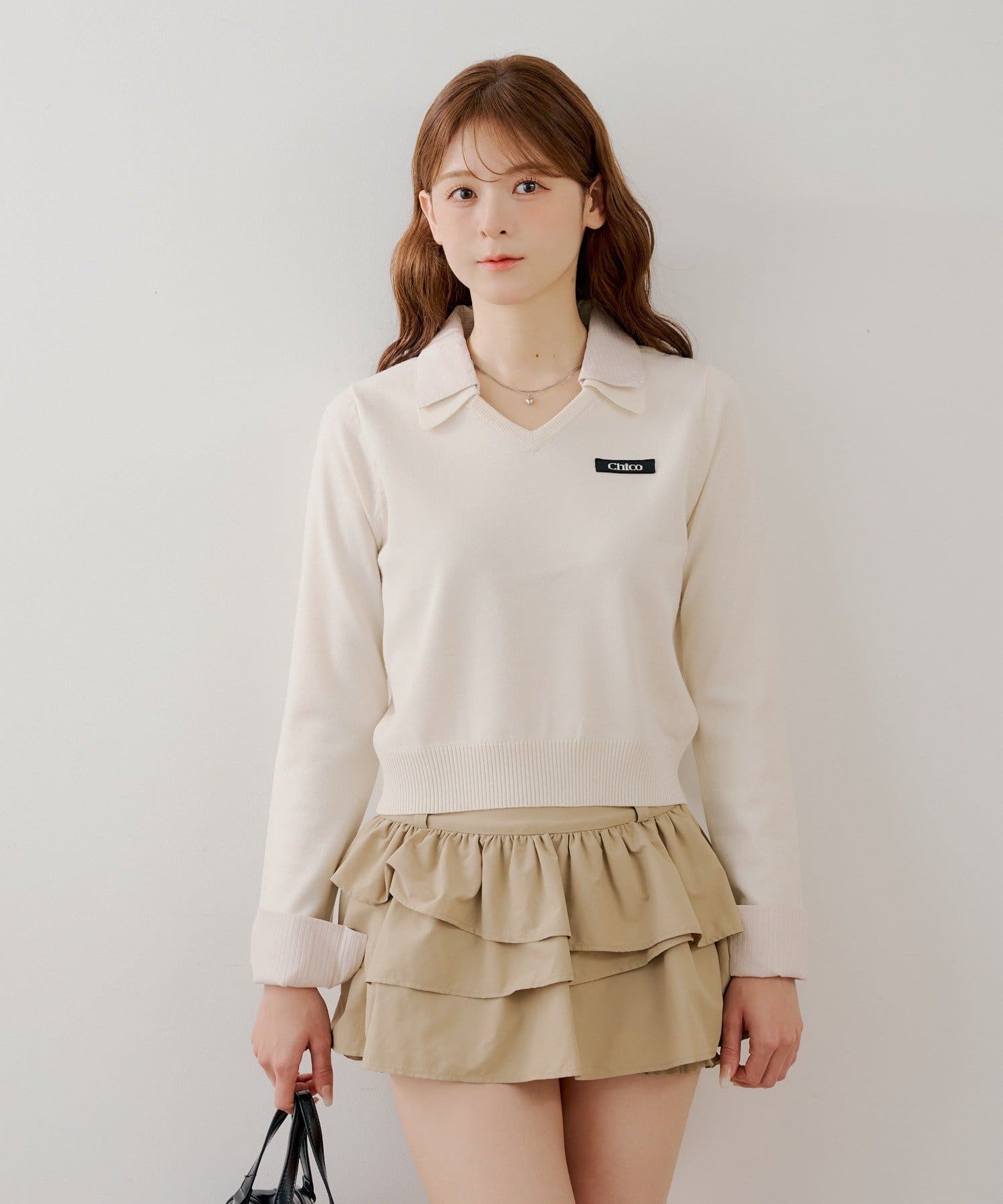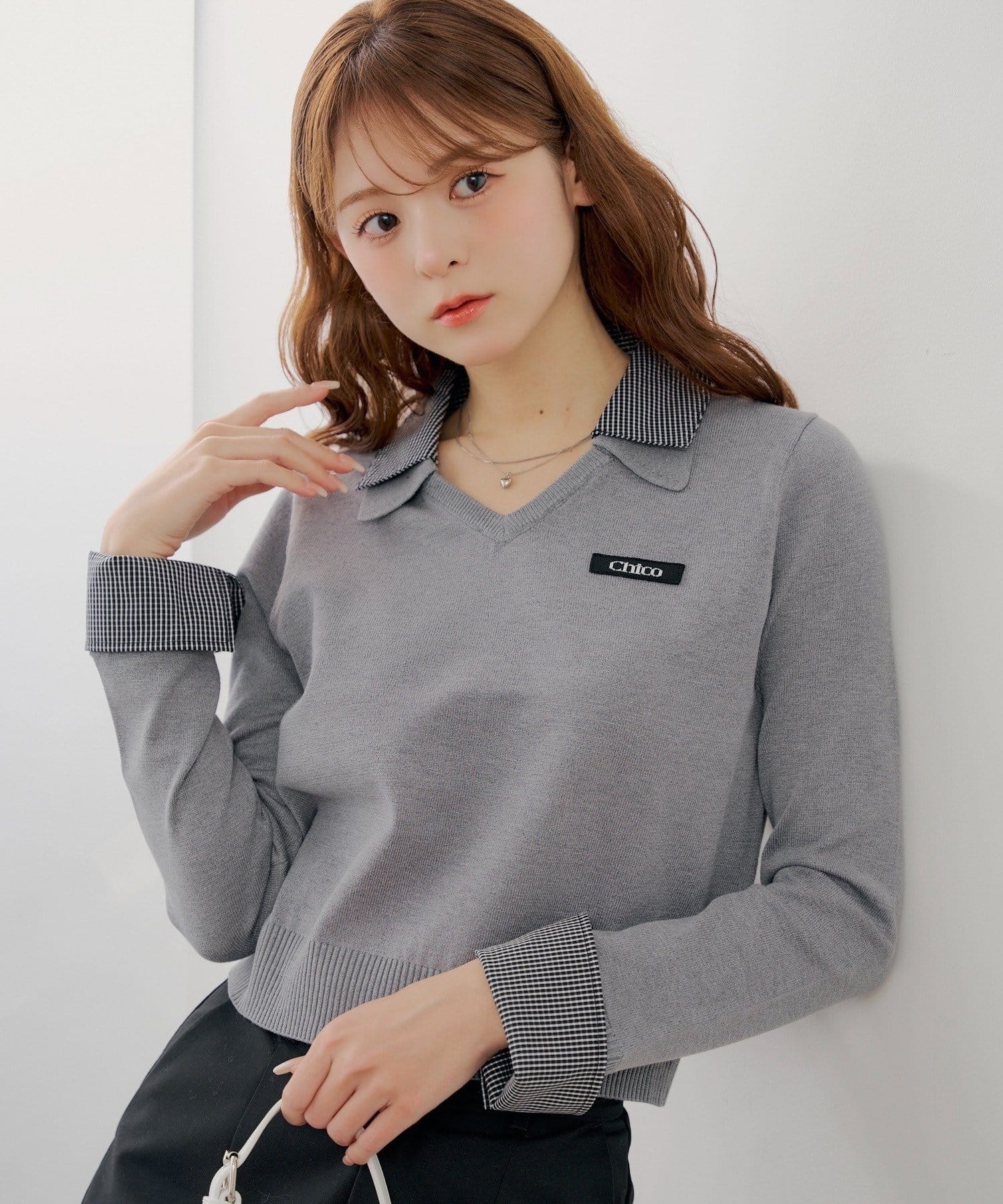 トレンドの襟レイヤードが一枚で叶う、Vネックニット登場!