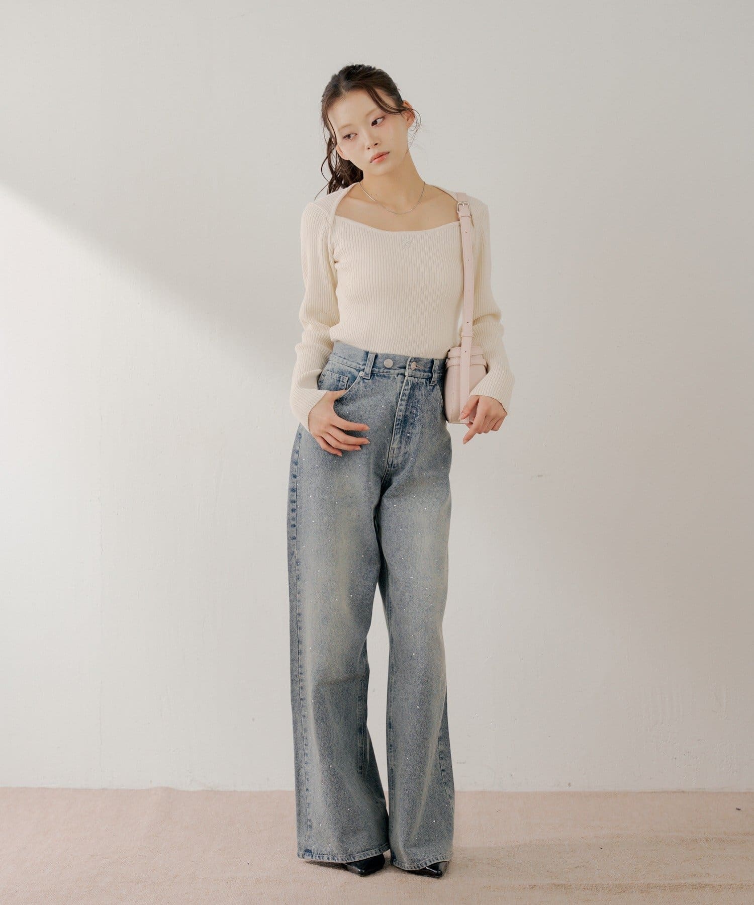・ミニボトムと合わせるとフェミニンなスタイルに仕上がります。