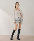 ・ミニボトムと合わせるとフェミニンなスタイルに仕上がります。