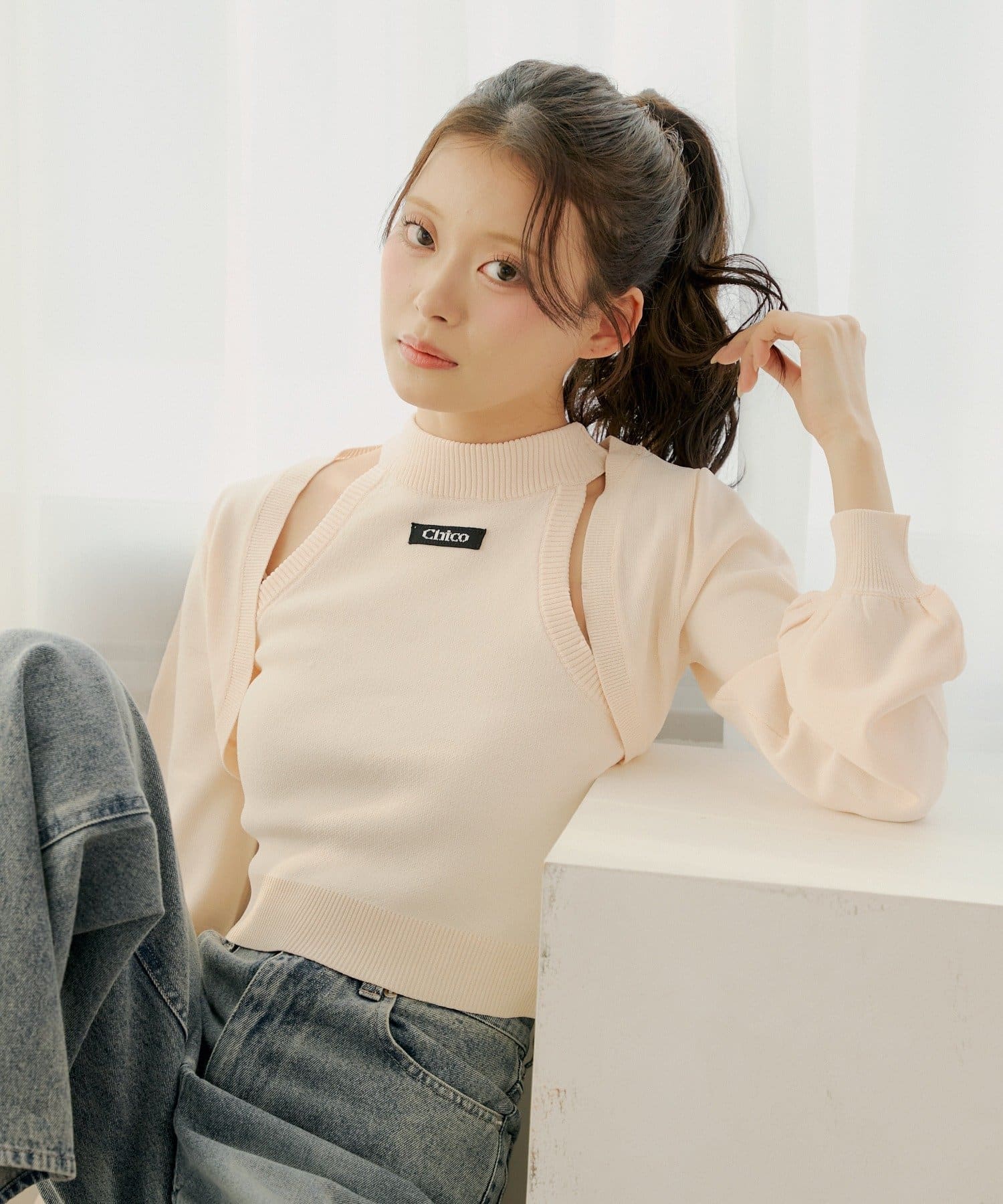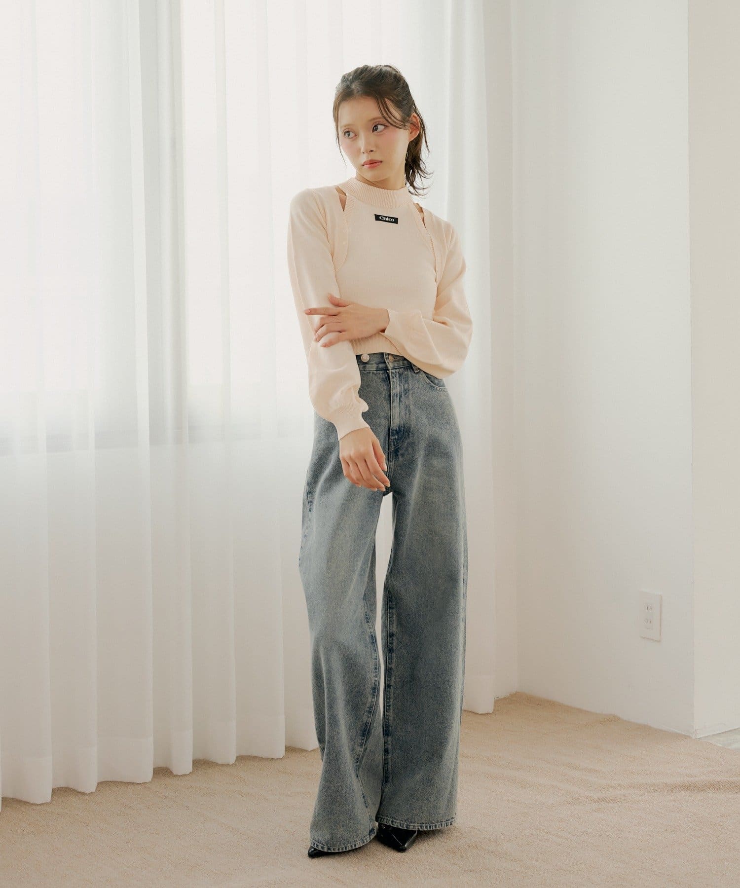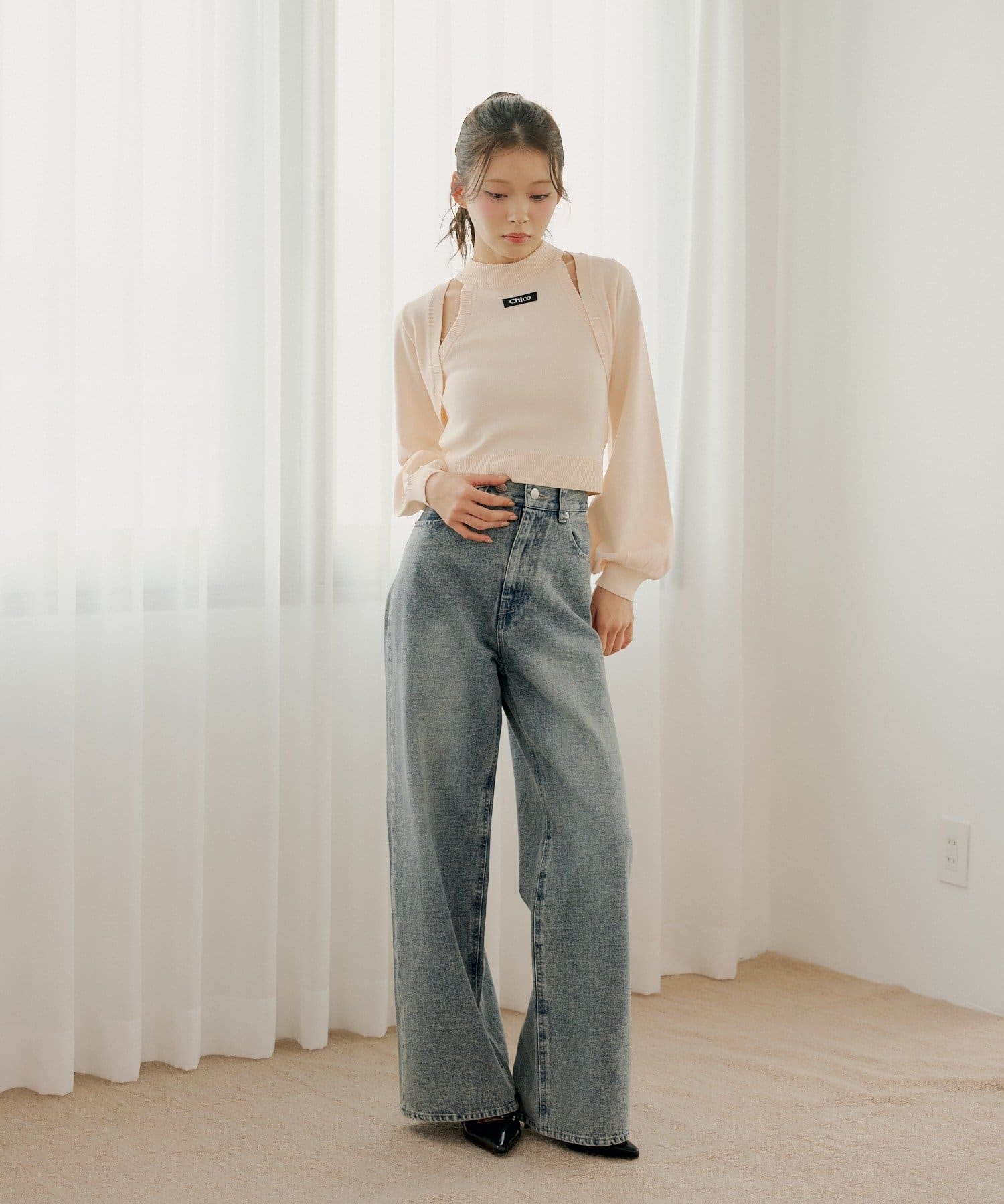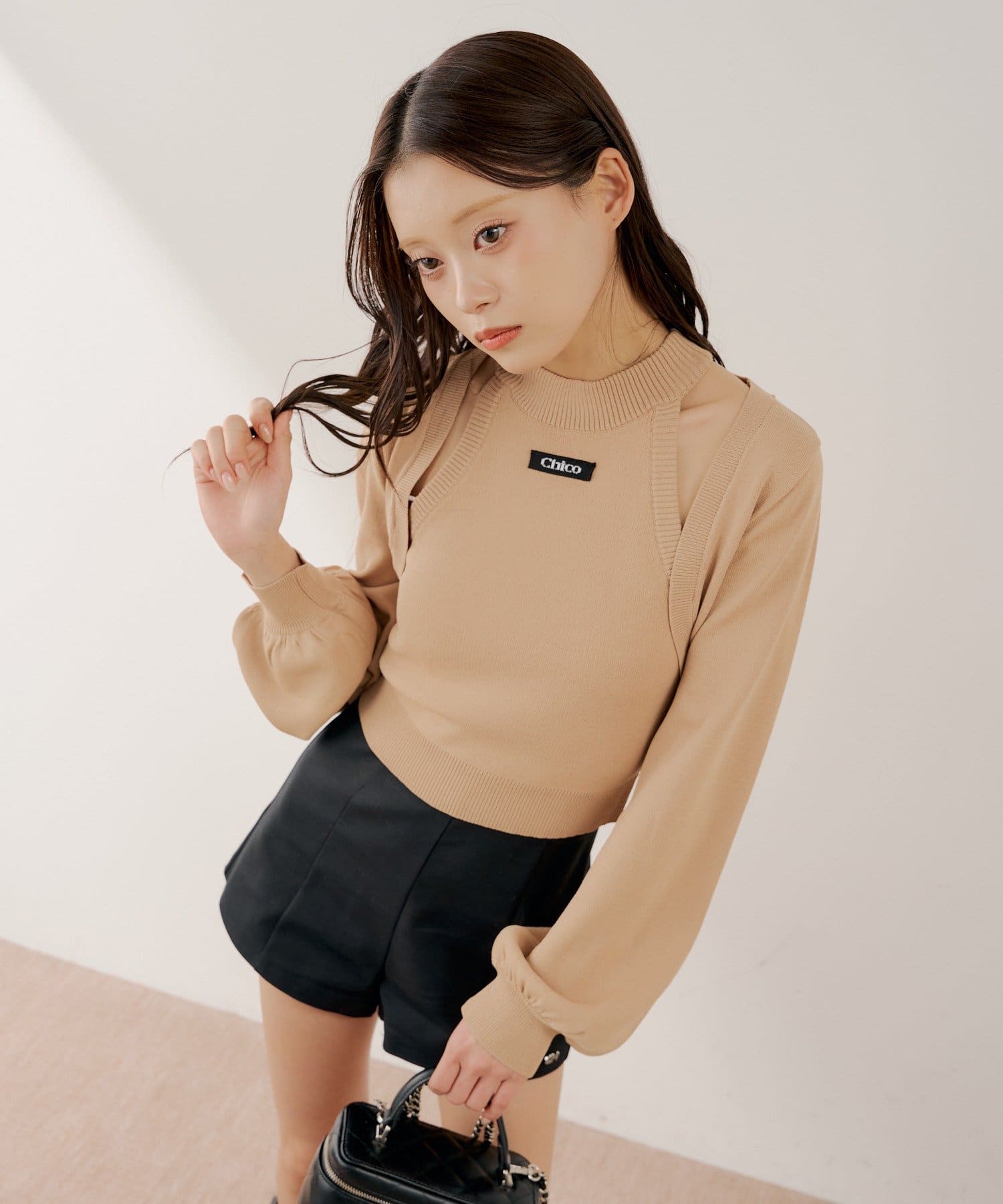 ・ミニボトムと合わせるとフェミニンなスタイルに仕上がります。