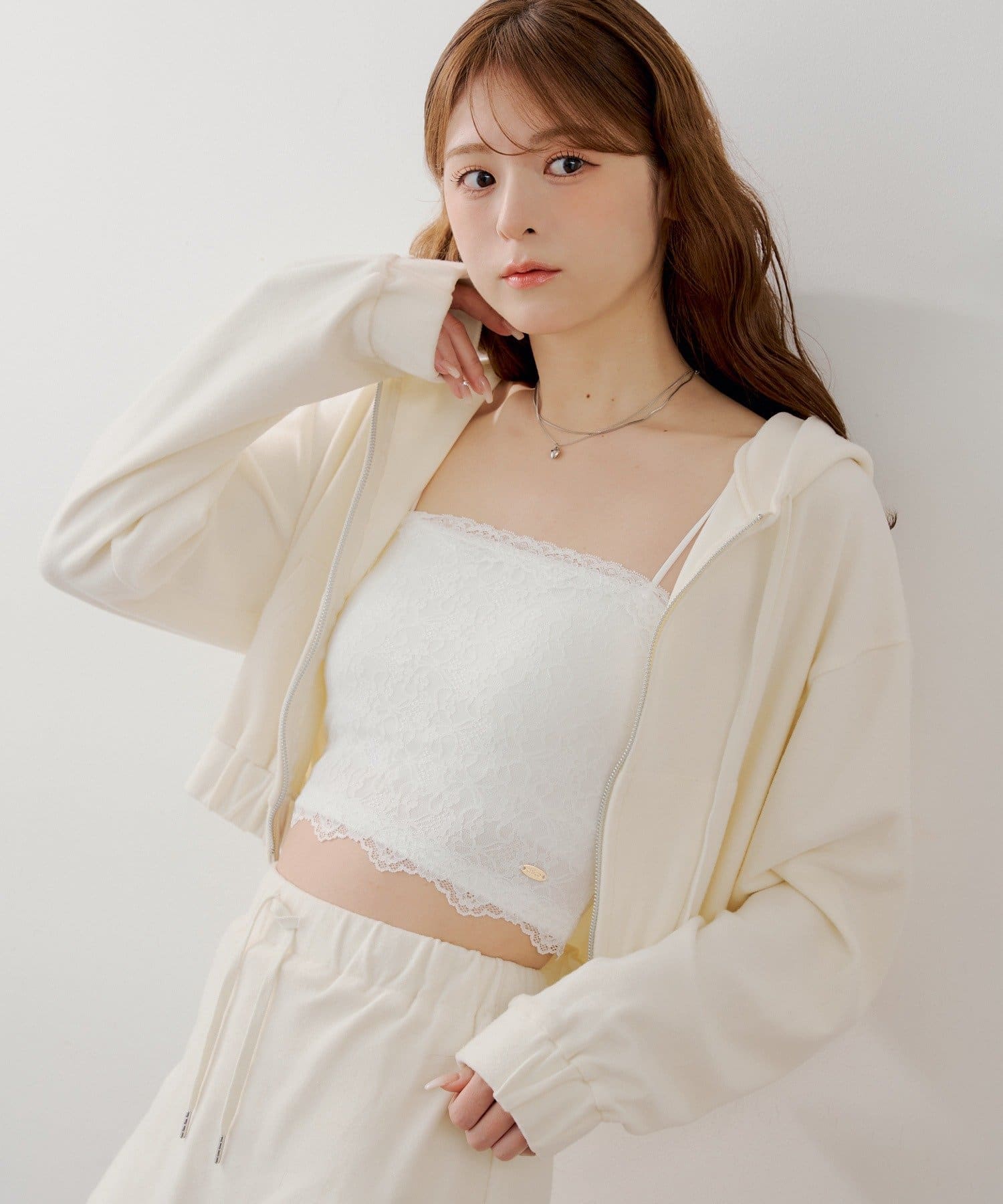 ・繊細なレースが、女性らしさを引き立てるベアチューブトップ。