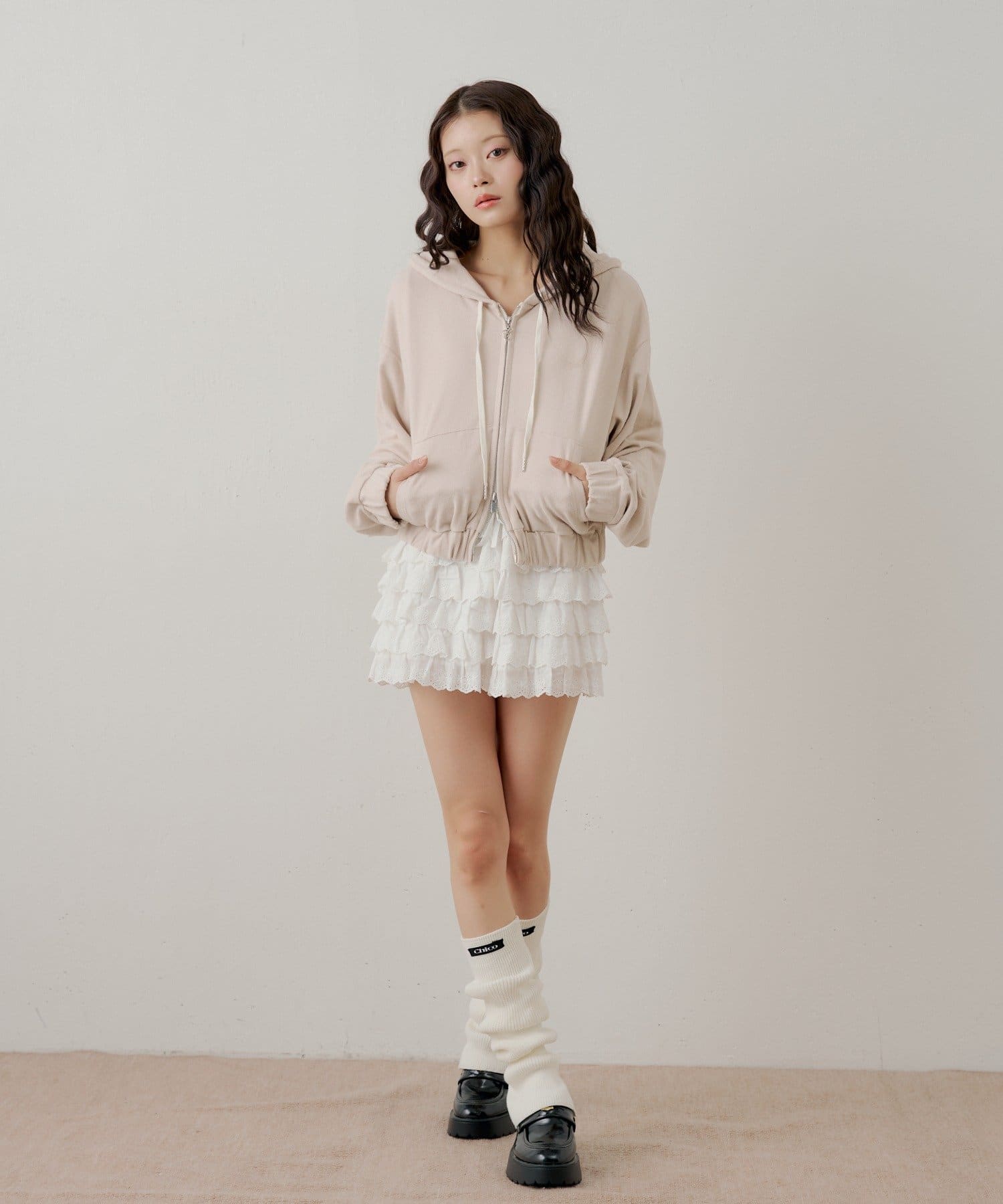 ・ミニボトムと合わせるとフェミニンなスタイルに仕上がります。