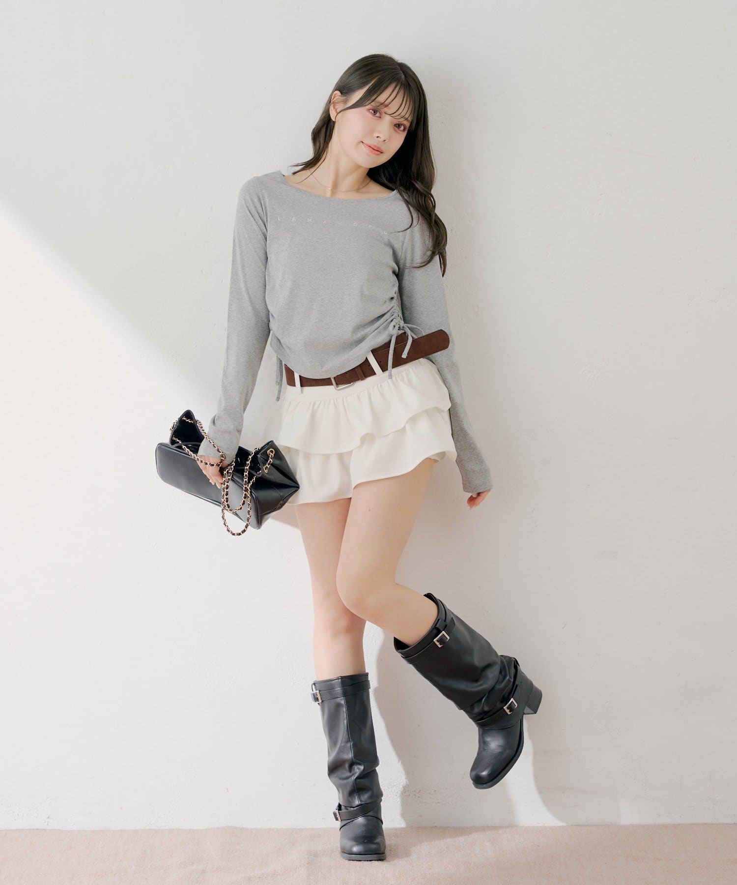 ・ミニボトムと合わせるとフェミニンなスタイルに仕上がります。