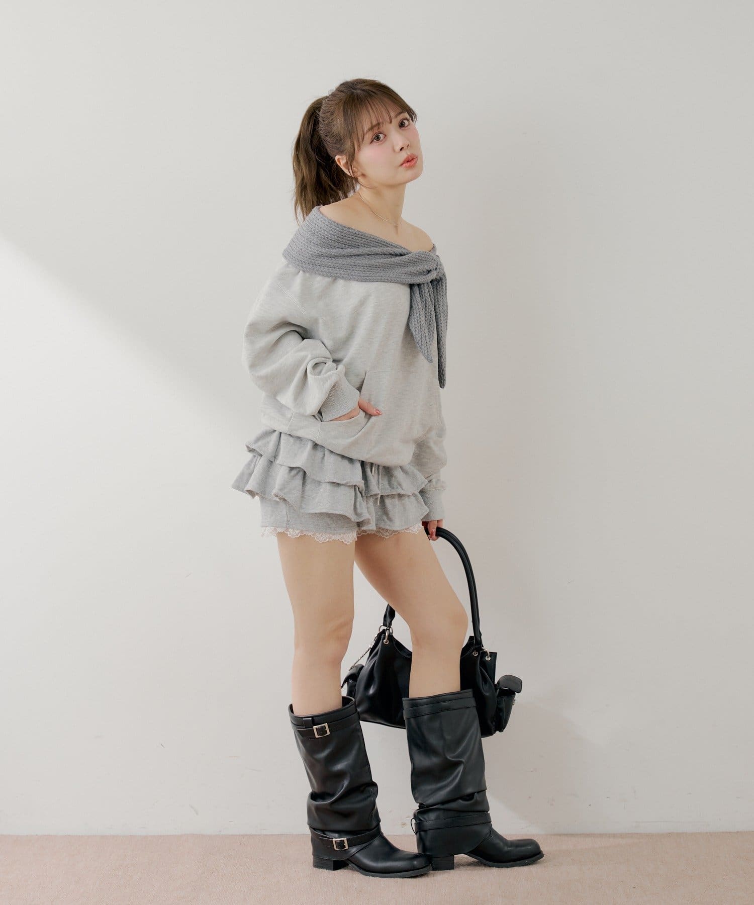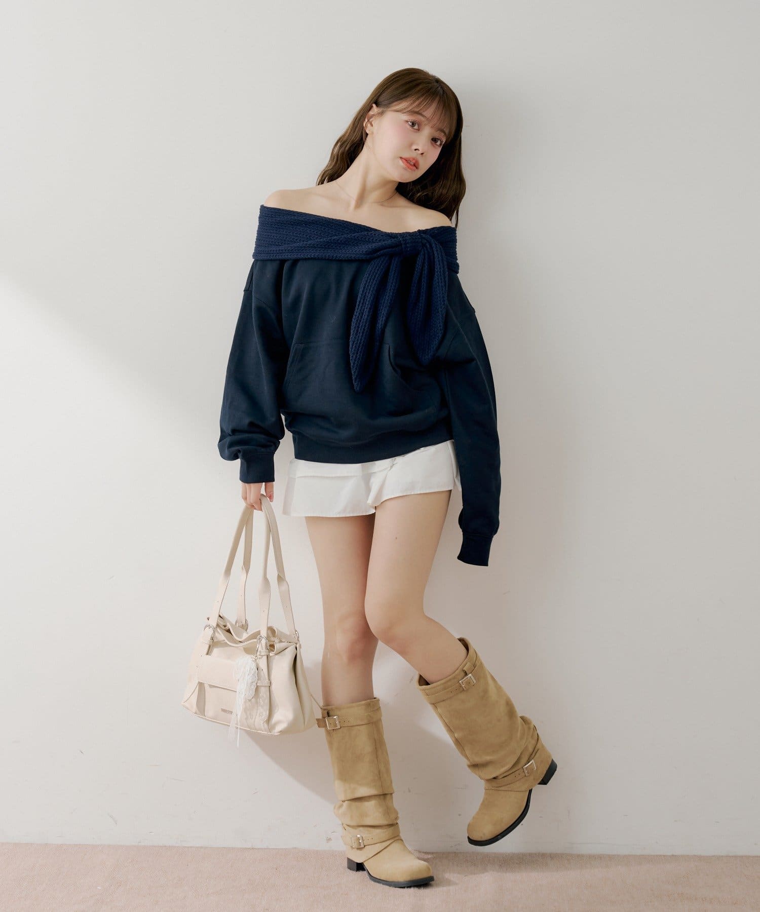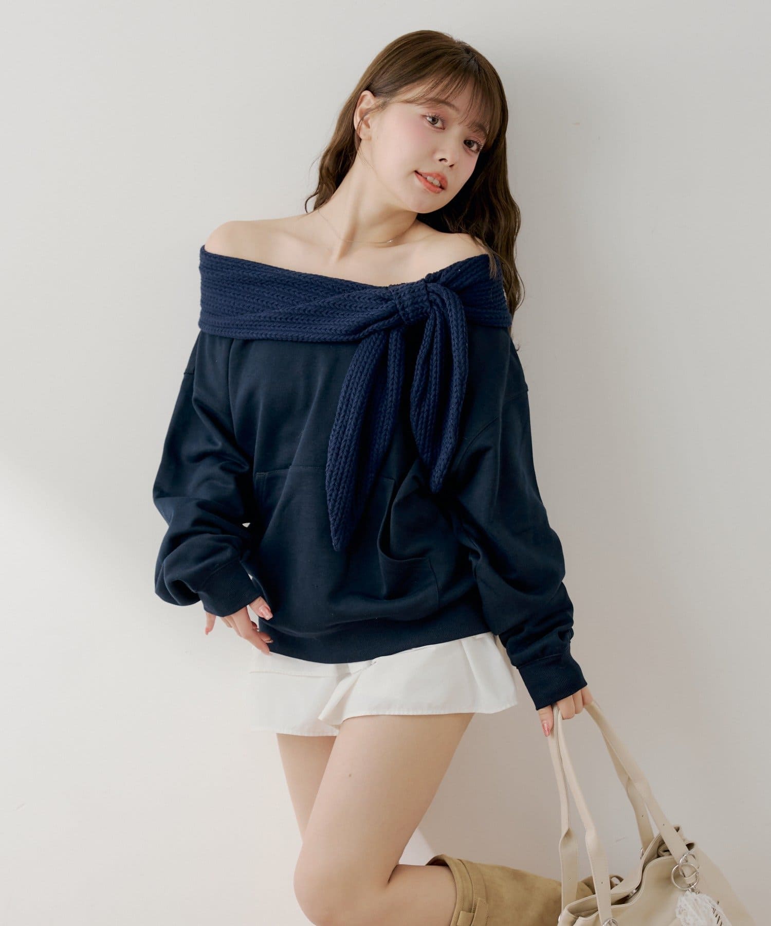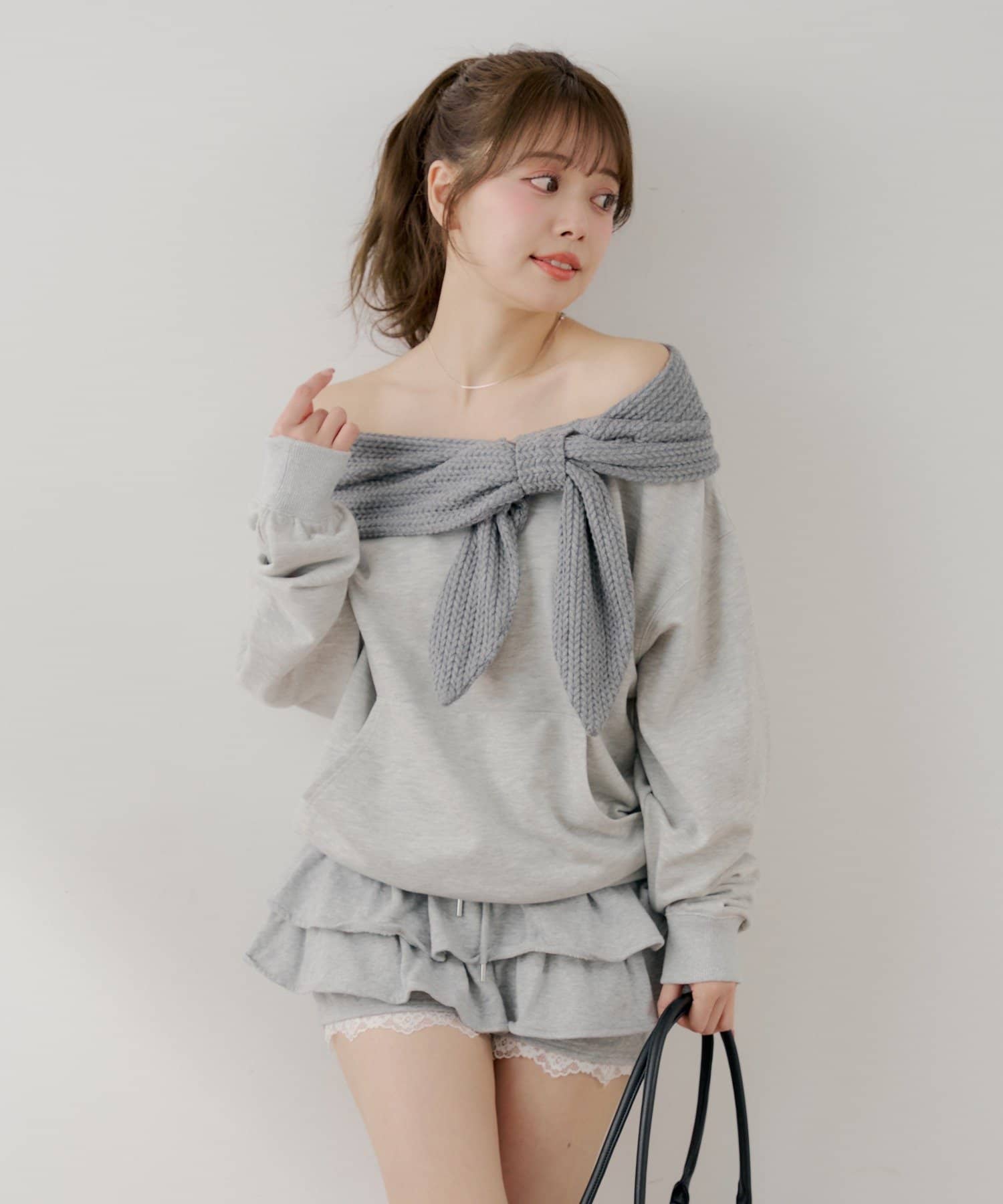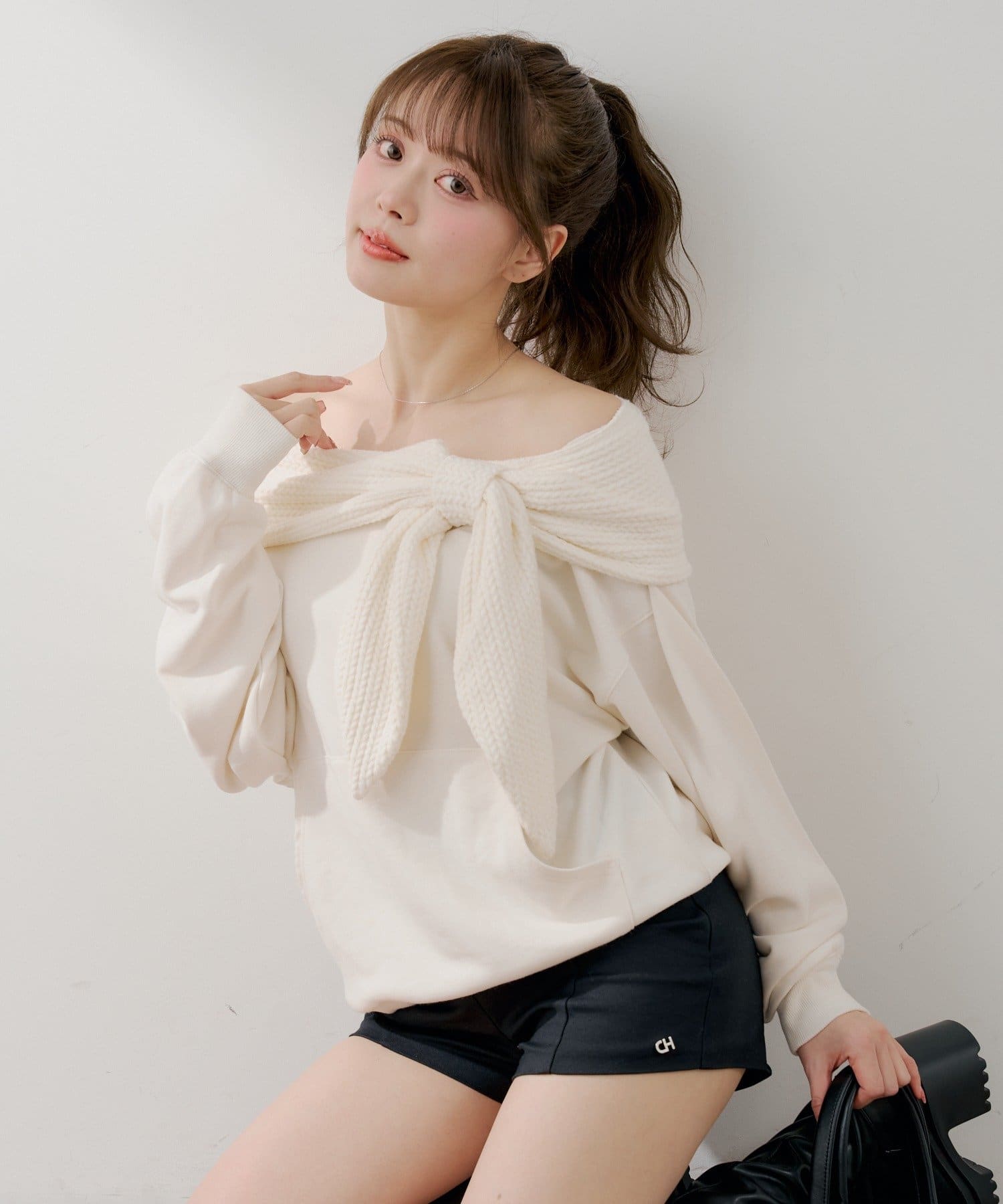 可愛いと着回しやすさを両立したオフショルリボンスウェット登場!