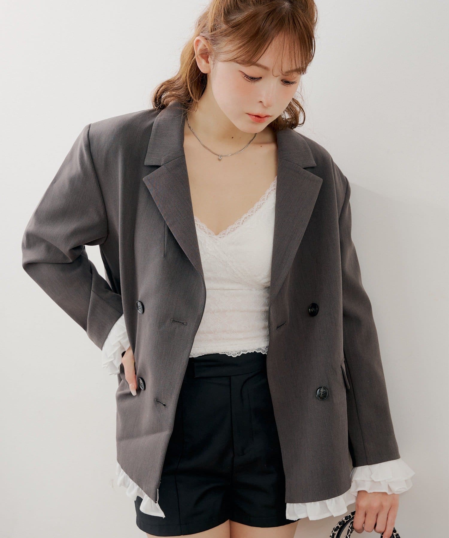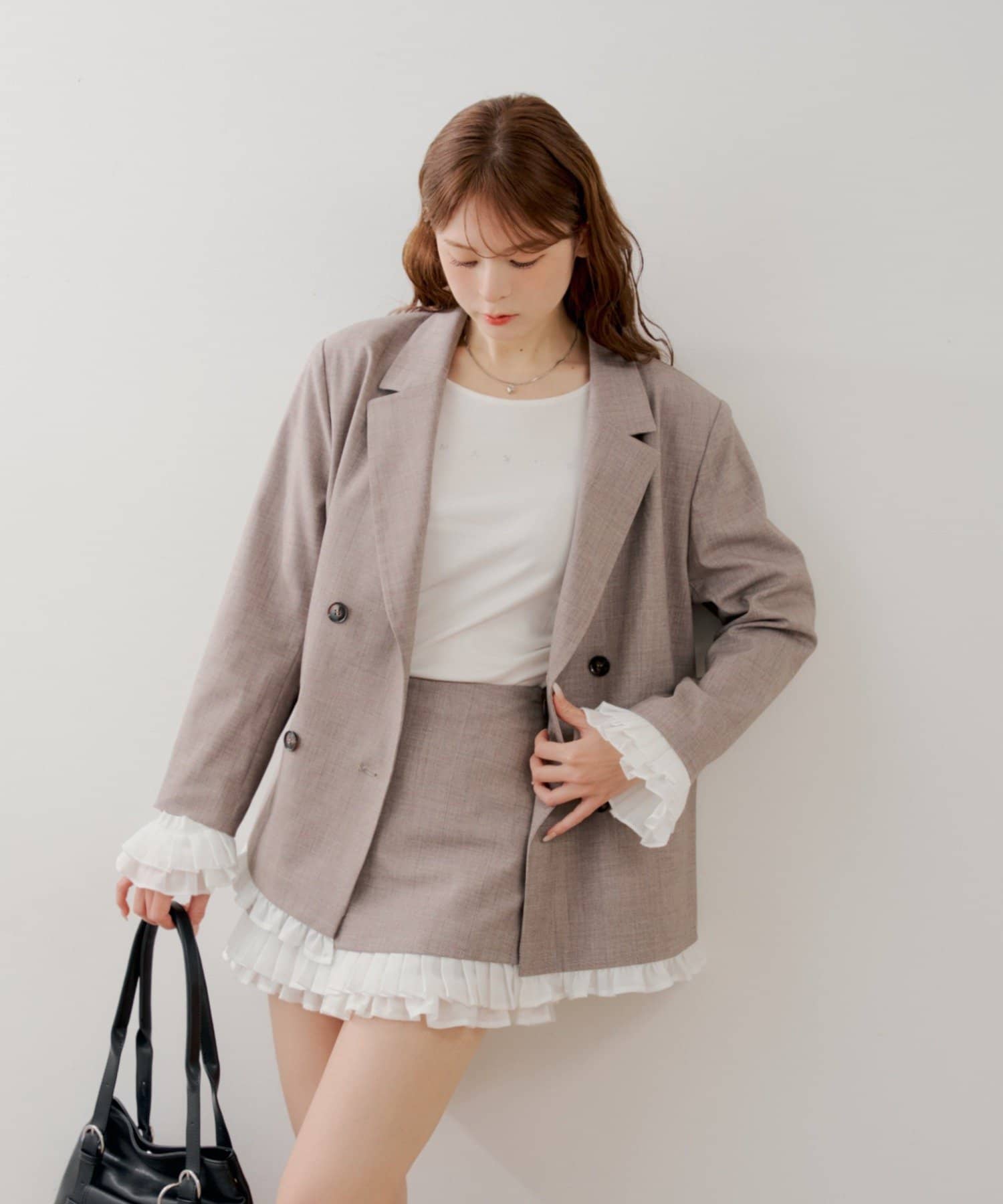 袖口と裾のフリルが目を惹くテーラードジャケット登場!