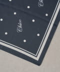 ・クラシカルなドット柄に、さりげないロゴが散りばめられたスカーフ。