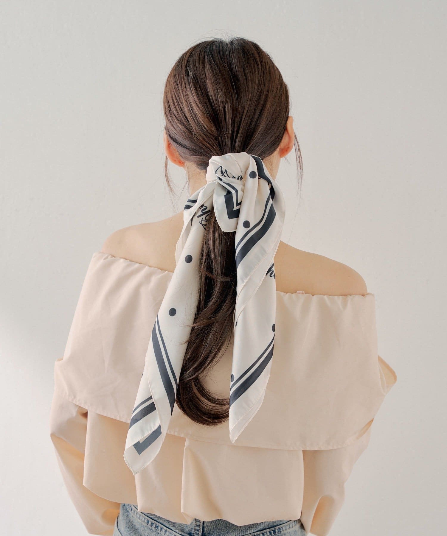 ・首元に巻いてエレガントに、ヘアアレンジに取り入れてトレンド感をプラス、バッグのハンドルに結んでアクセントにするなど、様々なアレンジが楽しめます。