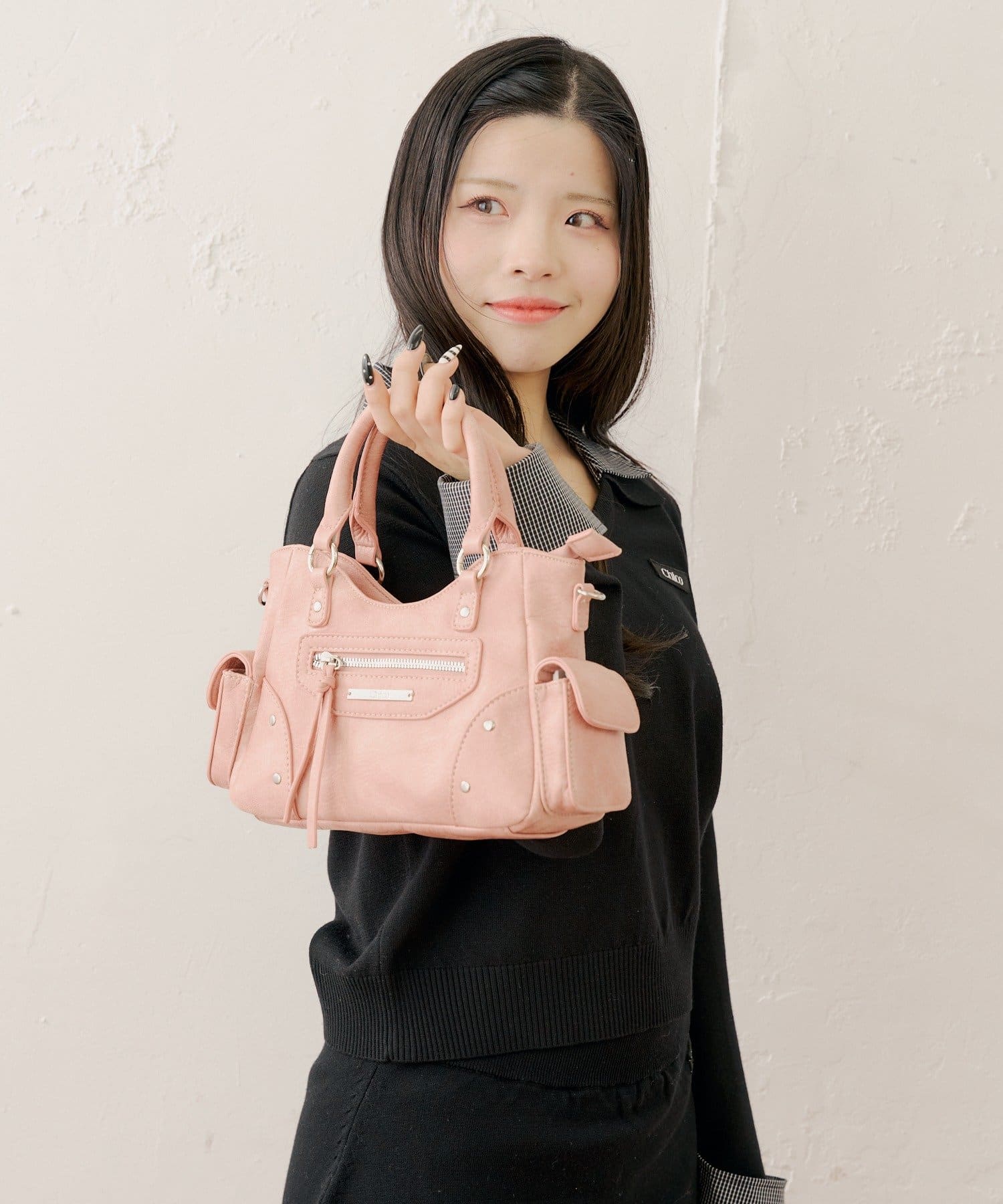 【ひーうか企画】サイドポケット付きスタッズデザインバッグ