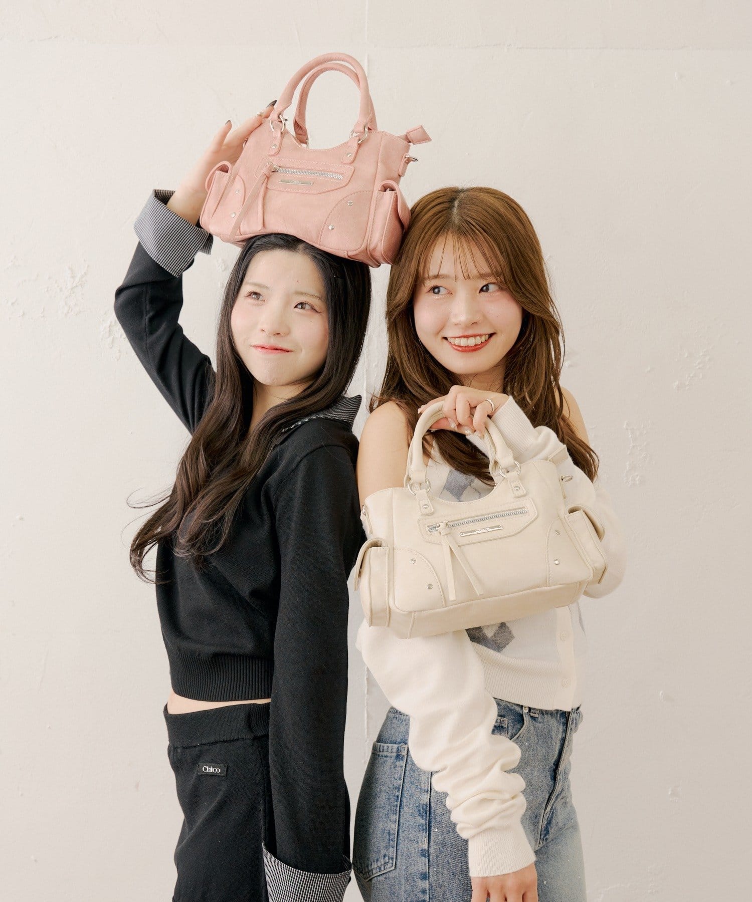 • Chico(チコ) 【ひーうか企画】サイドポケット付きスタッズデザインバッグ