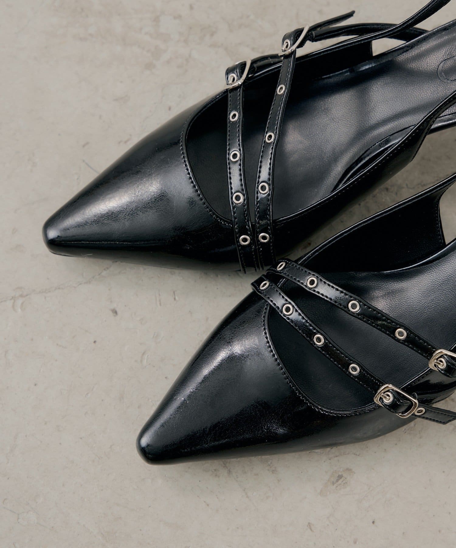・ポインテッドトゥのシルエットが、女性らしさを引き立て、洗練された印象に。
