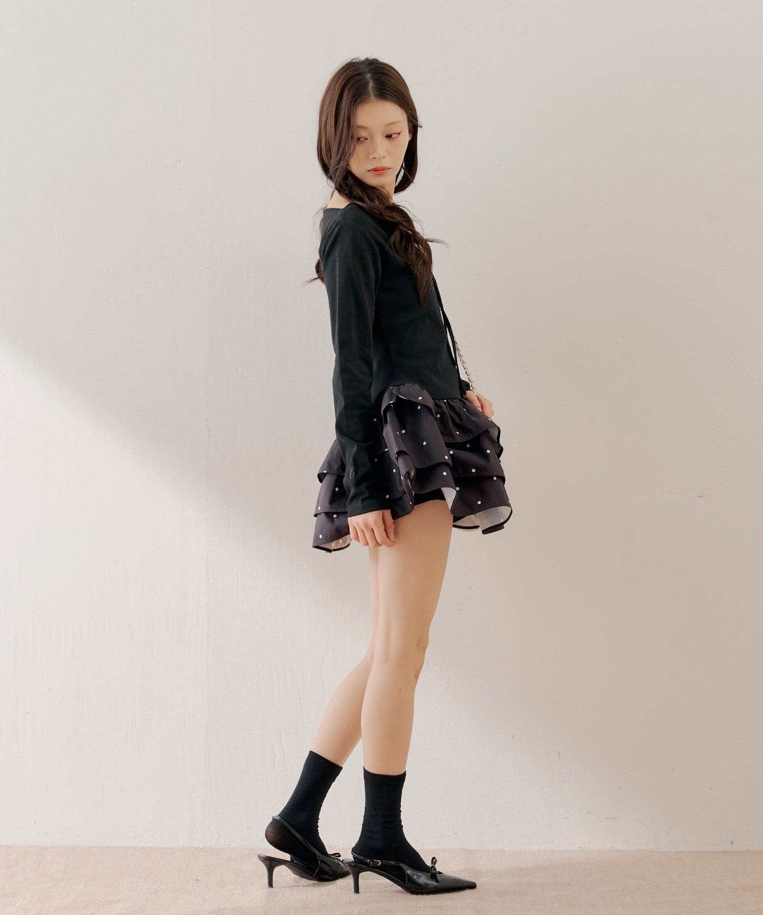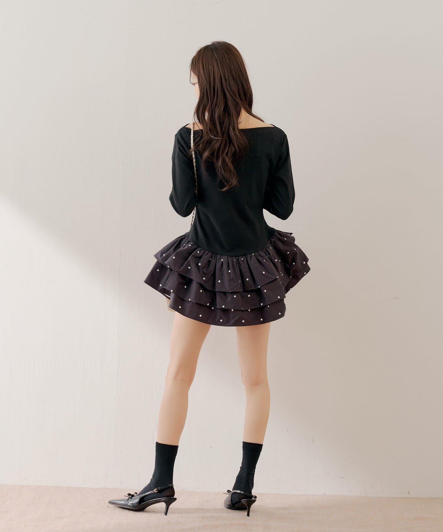 ・ふんわりとしたティアードフリルが、華やかさをプラス。