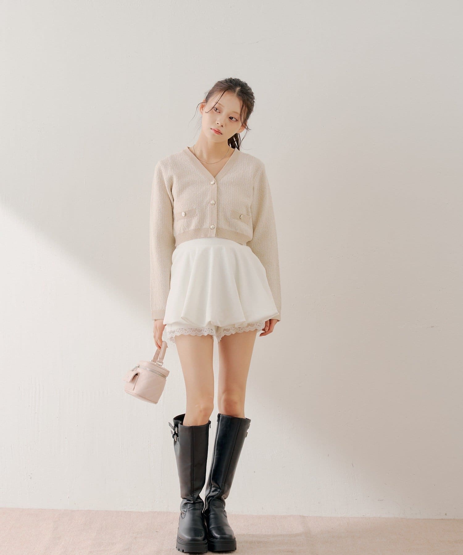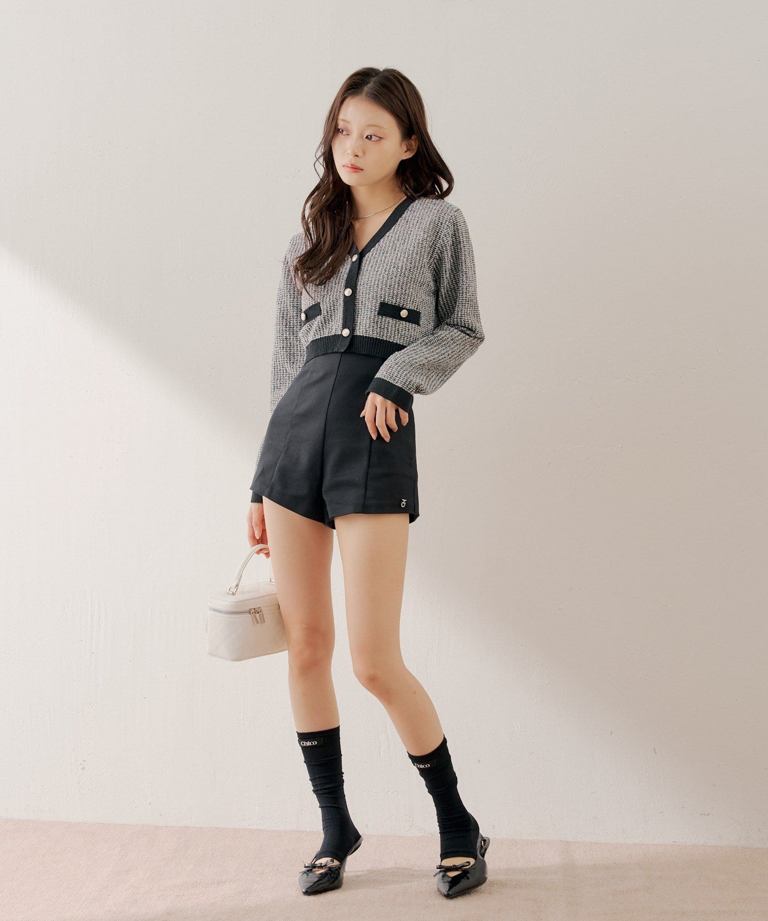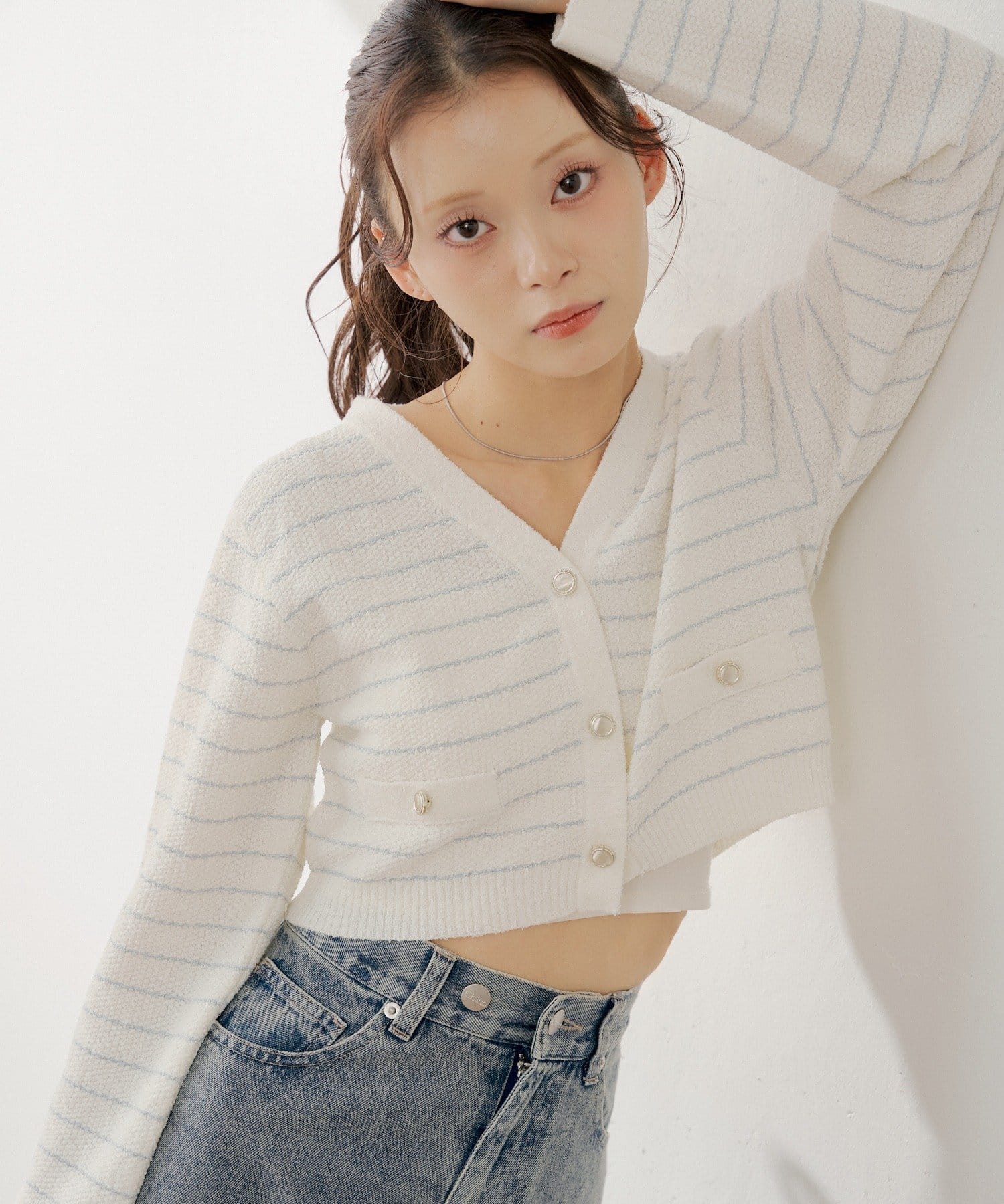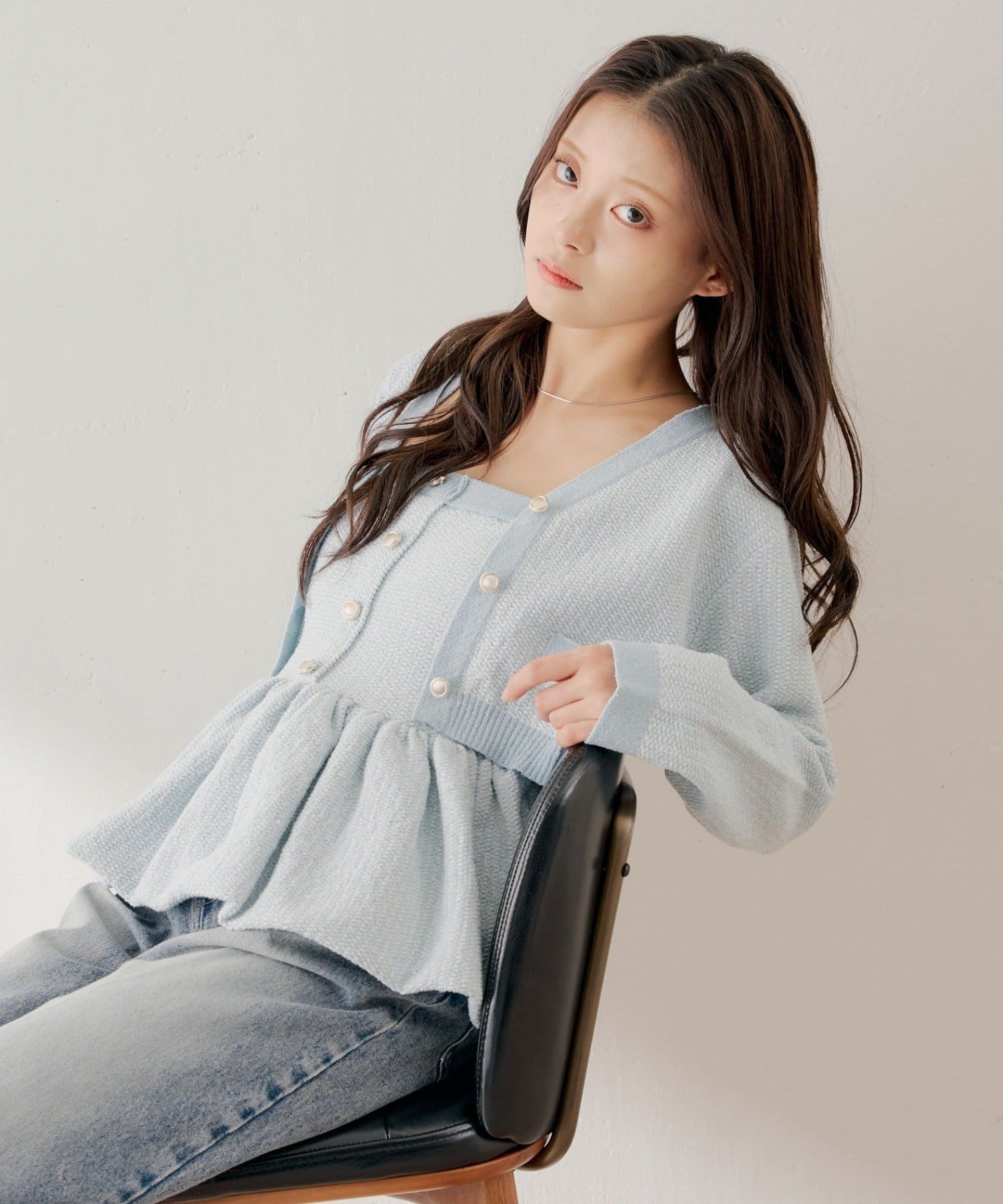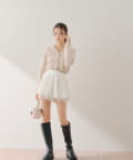 ・ミニボトムと合わせてフェミニンなスタイルに着るのも可愛いです。