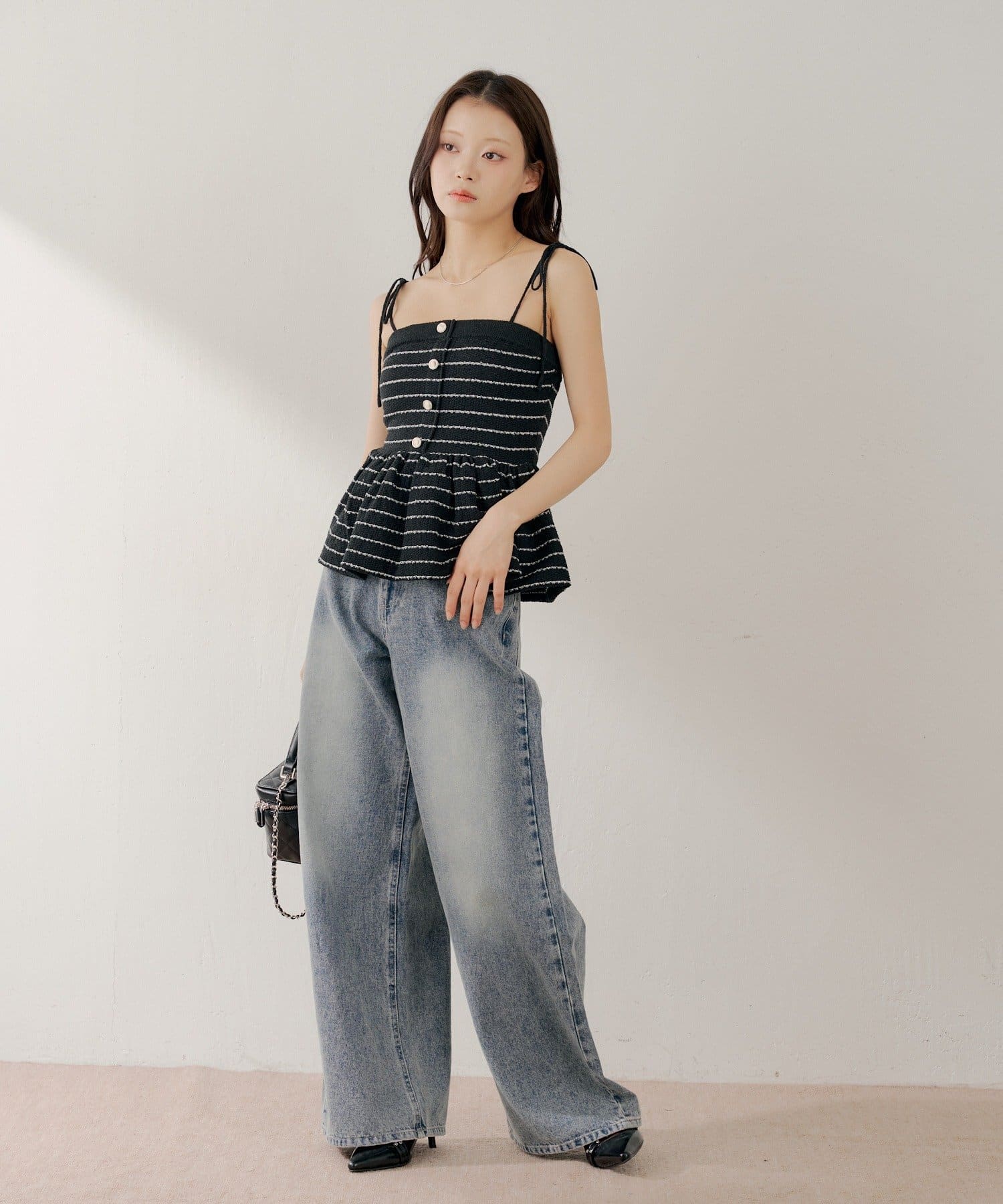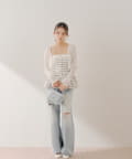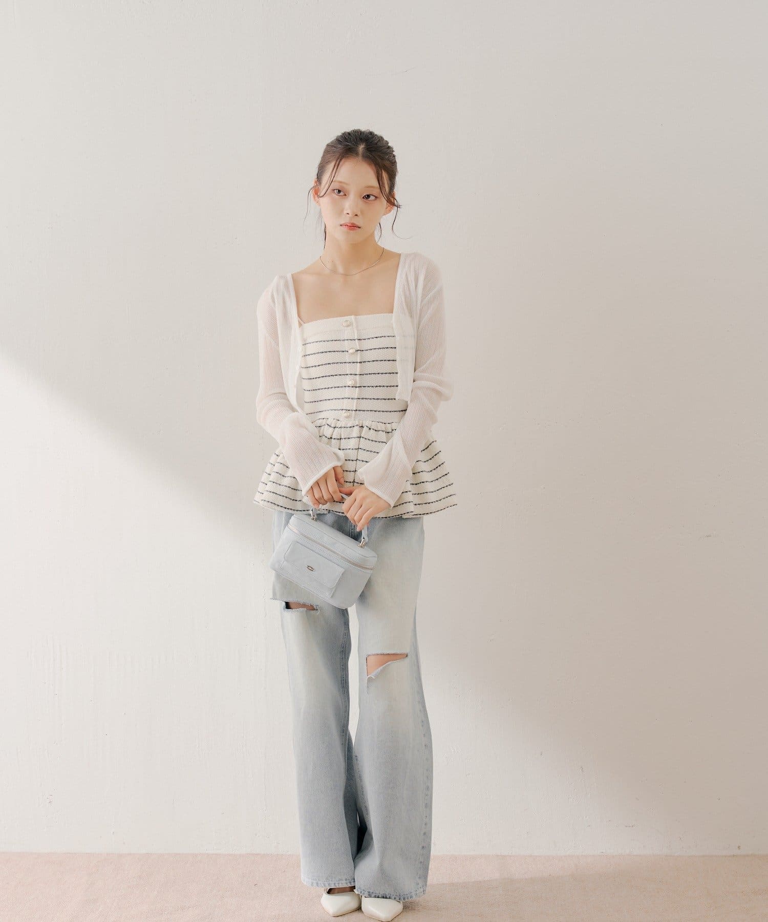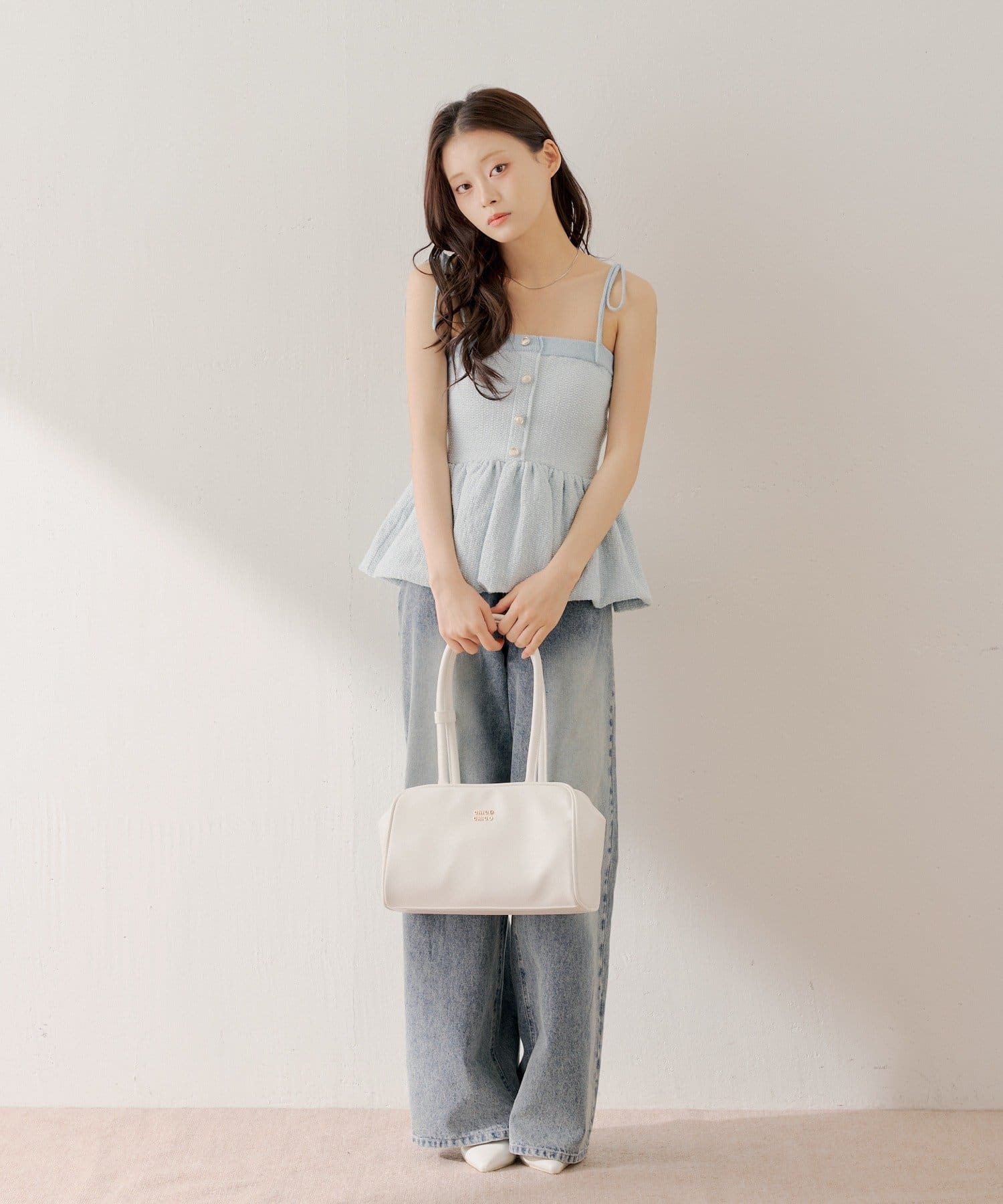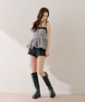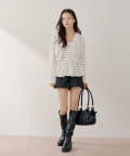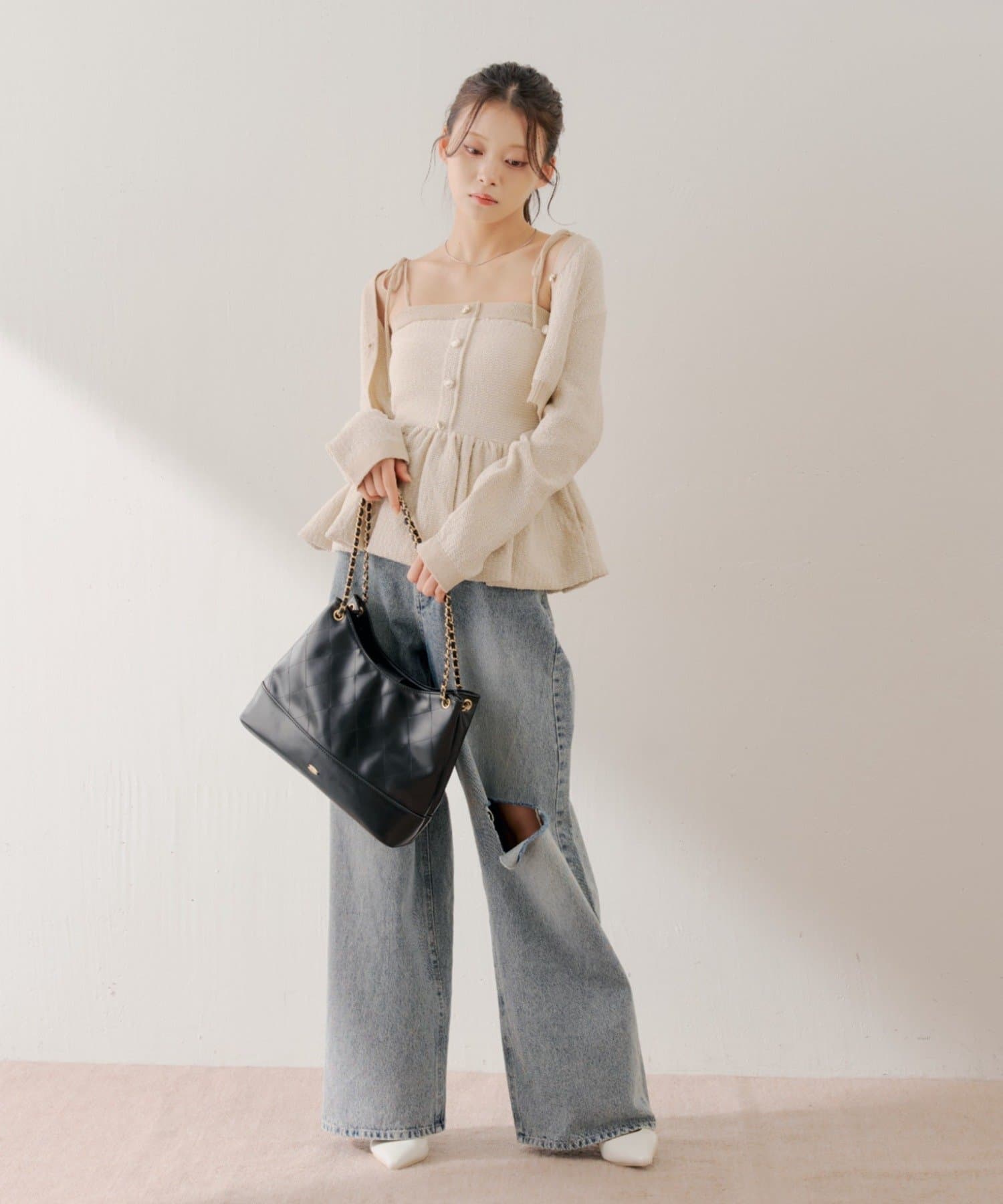 ・ミニボトムと合わせてフェミニンなスタイルで着るのも◎