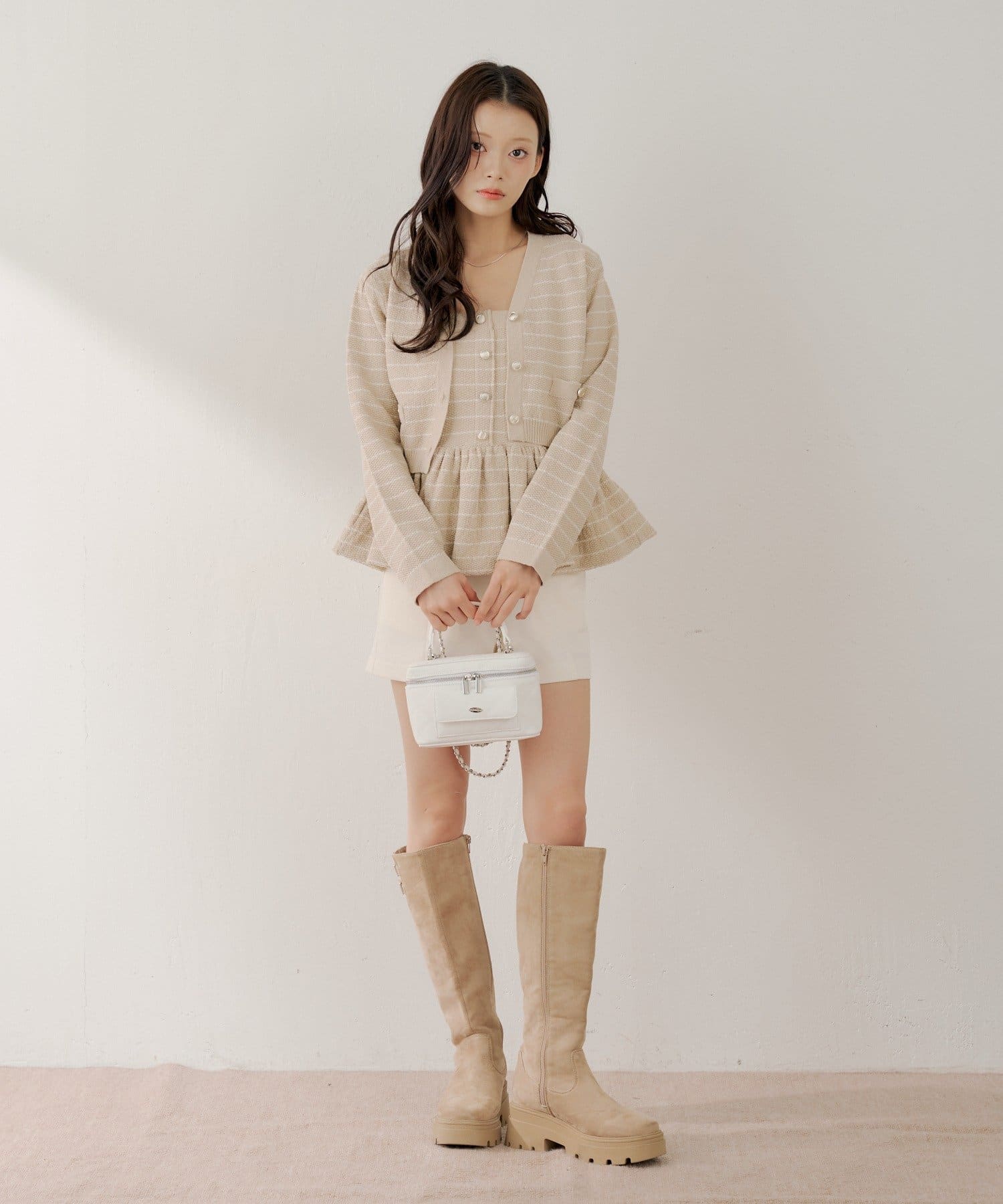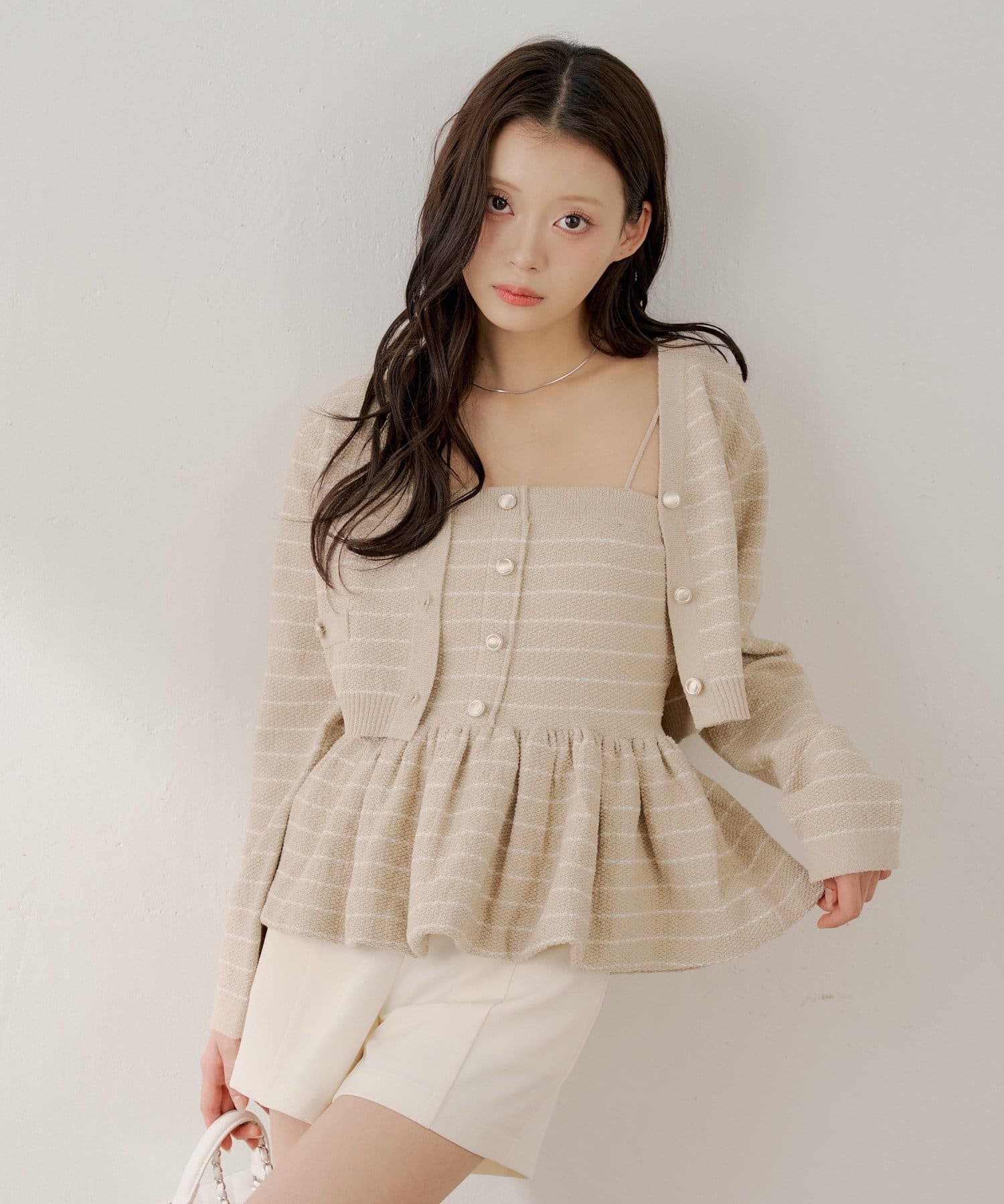 ・同素材のカーディガンと合わせてアンサンブルとしても着用可能で、上品な印象に。
