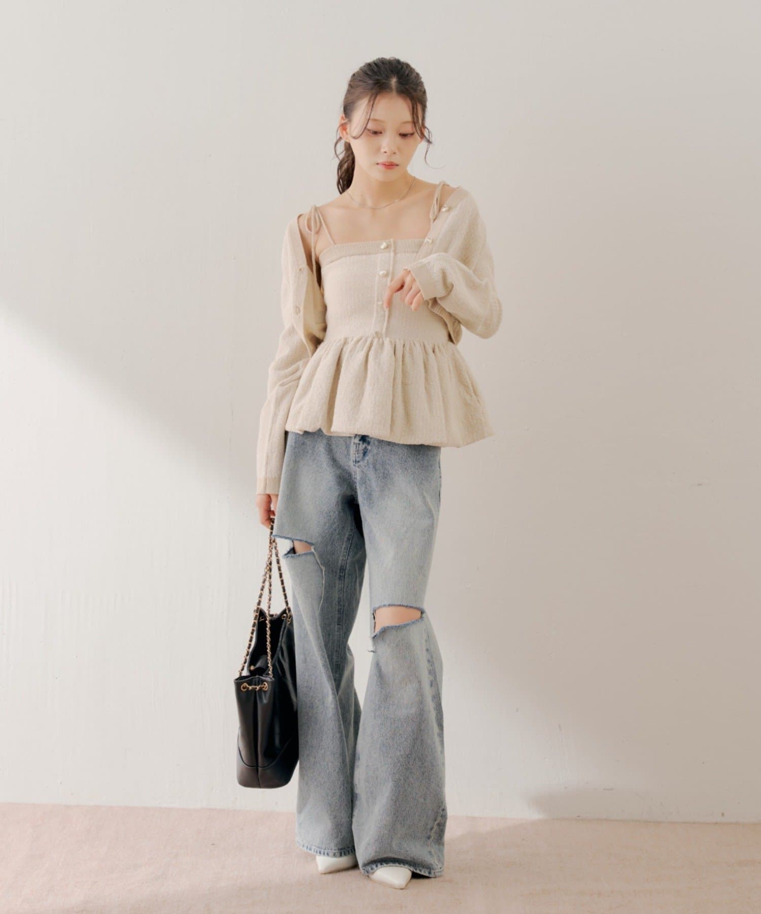 トレンドの着こなしが叶う、ペプラムシルエットのニットベアトップスが登場!