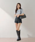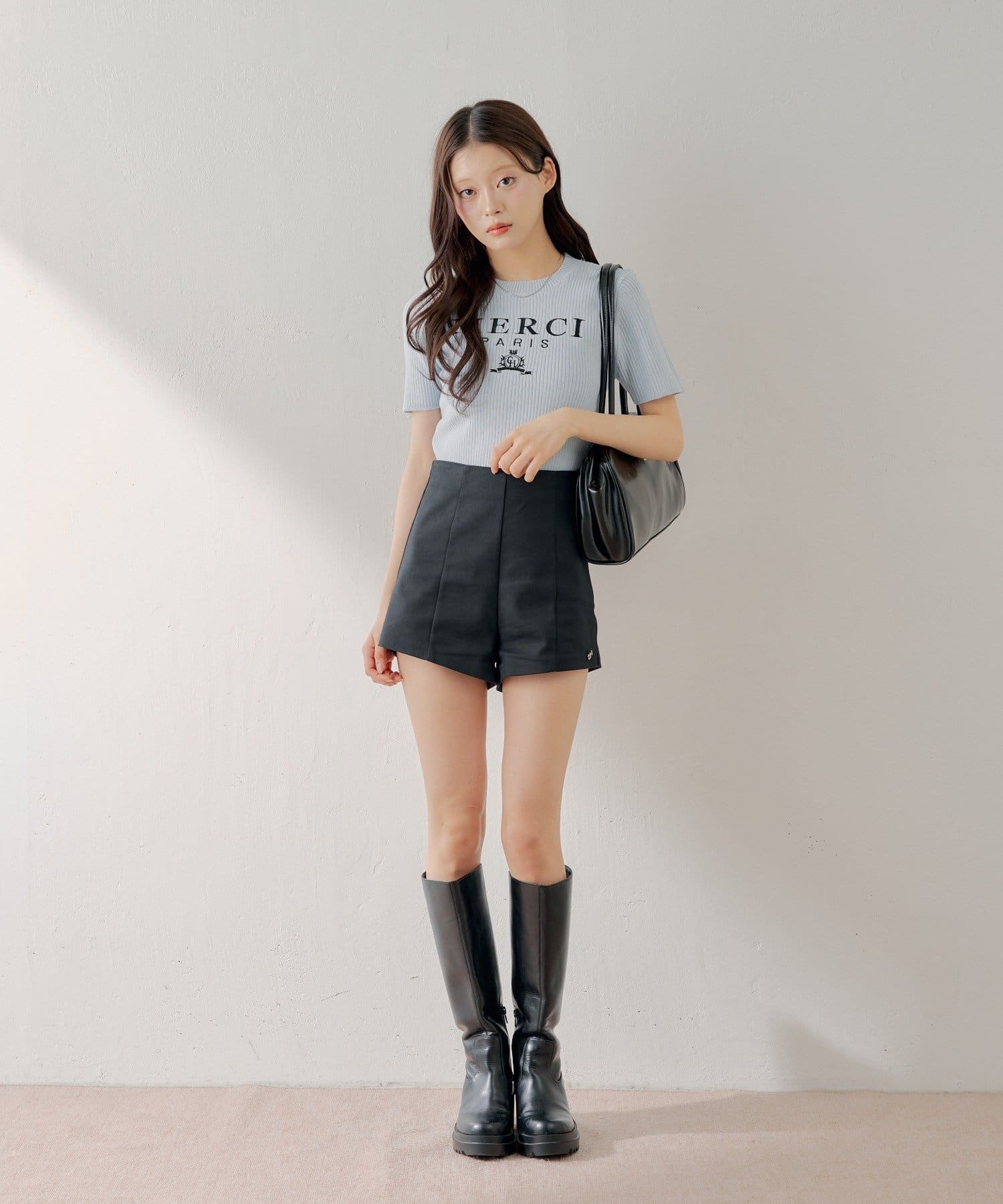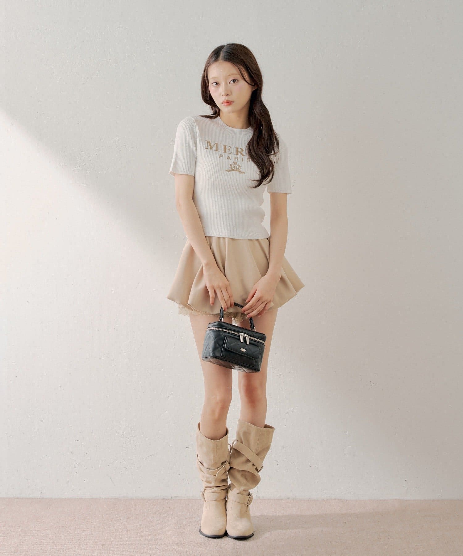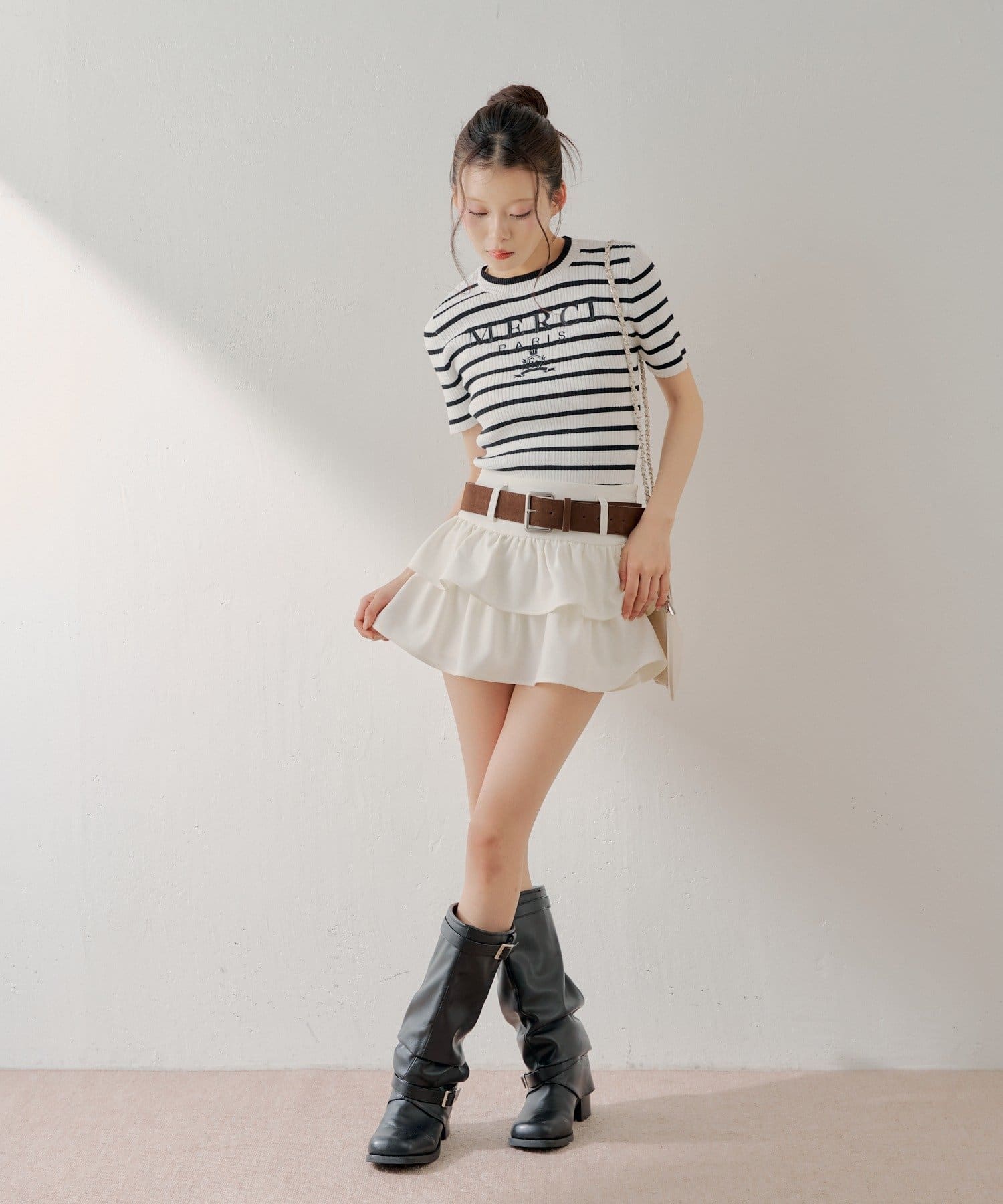 ・ミニボトムと合わせるとフェミニンなスタイルに仕上がります。