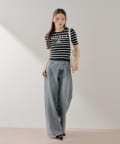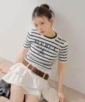 ・繊細なリブ編みがボディラインに優しくフィットし、女性らしいシルエットを演出する半袖ニット。