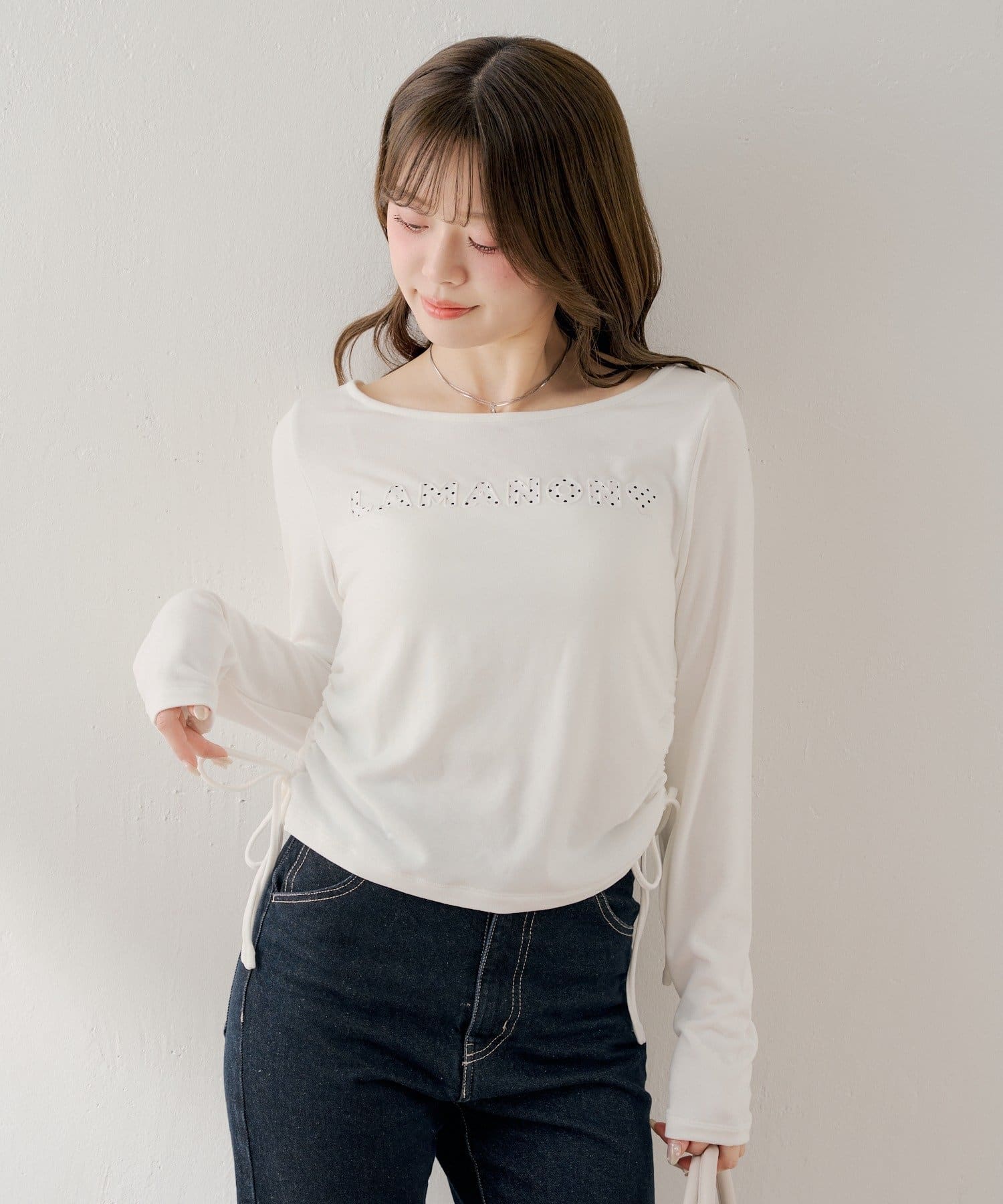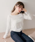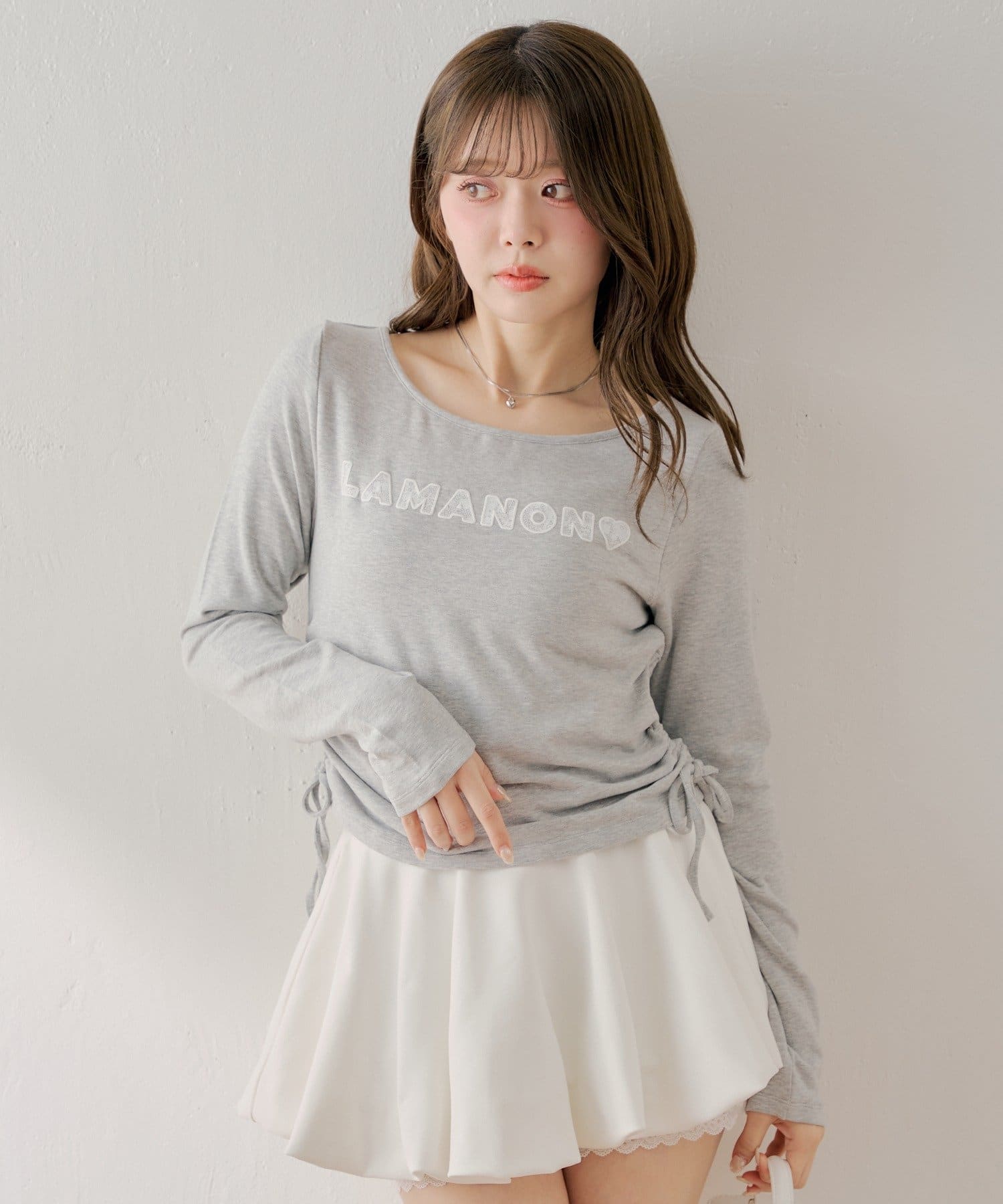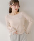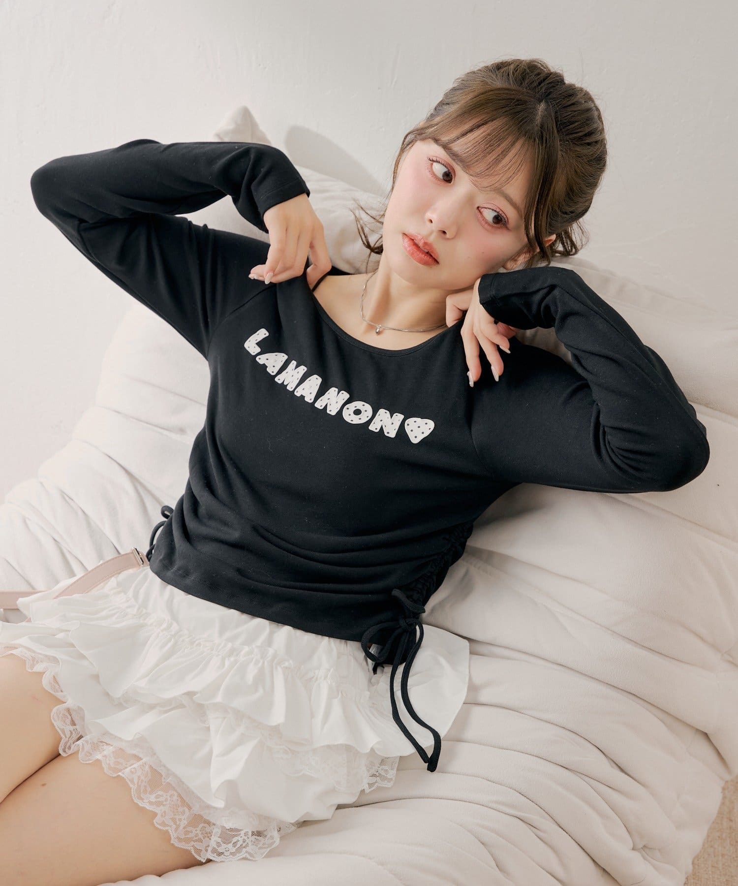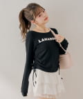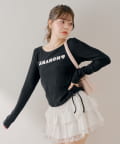 ・胸元にあしらわれたドットとレースロゴが目を惹くコンパクトT。
