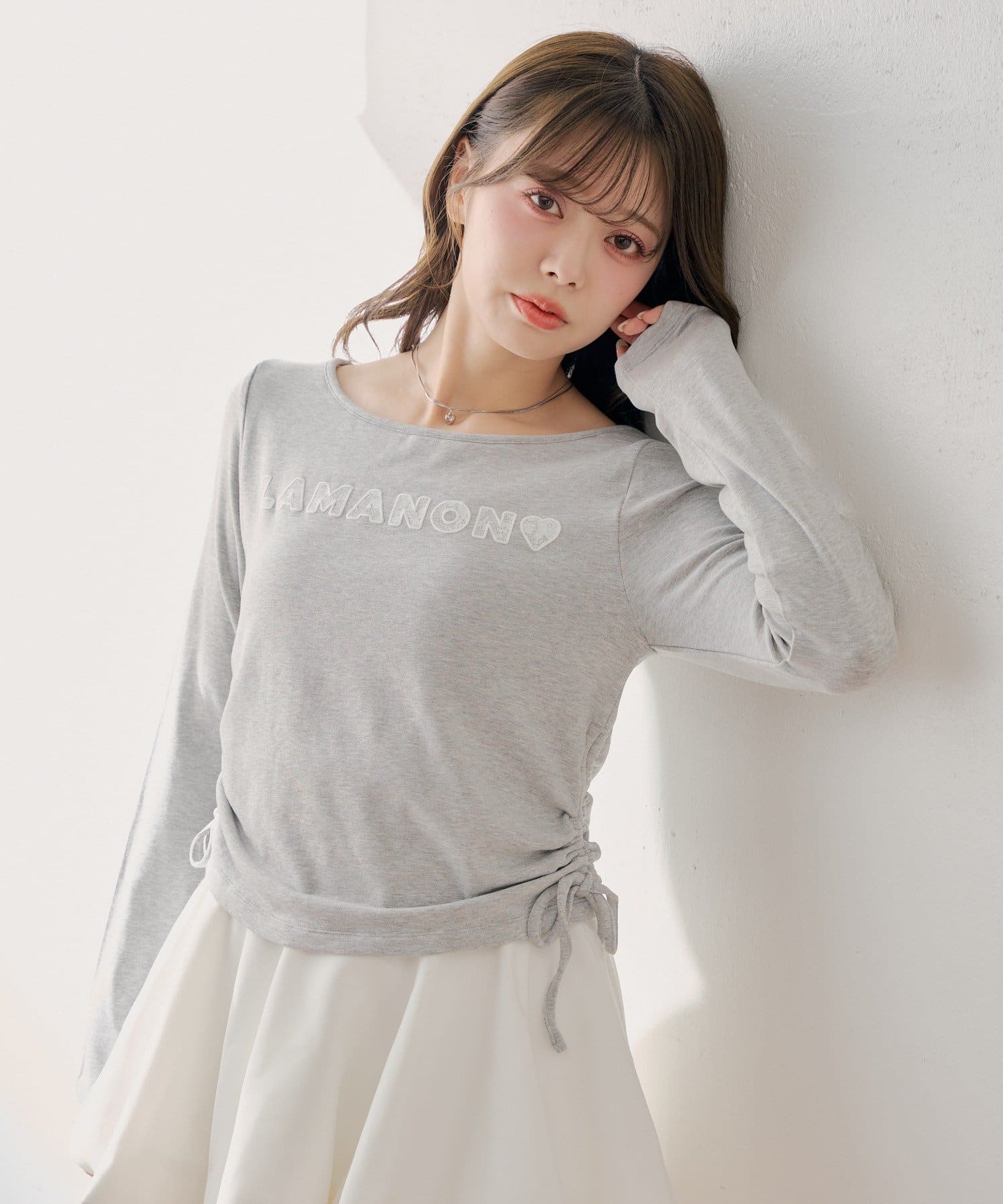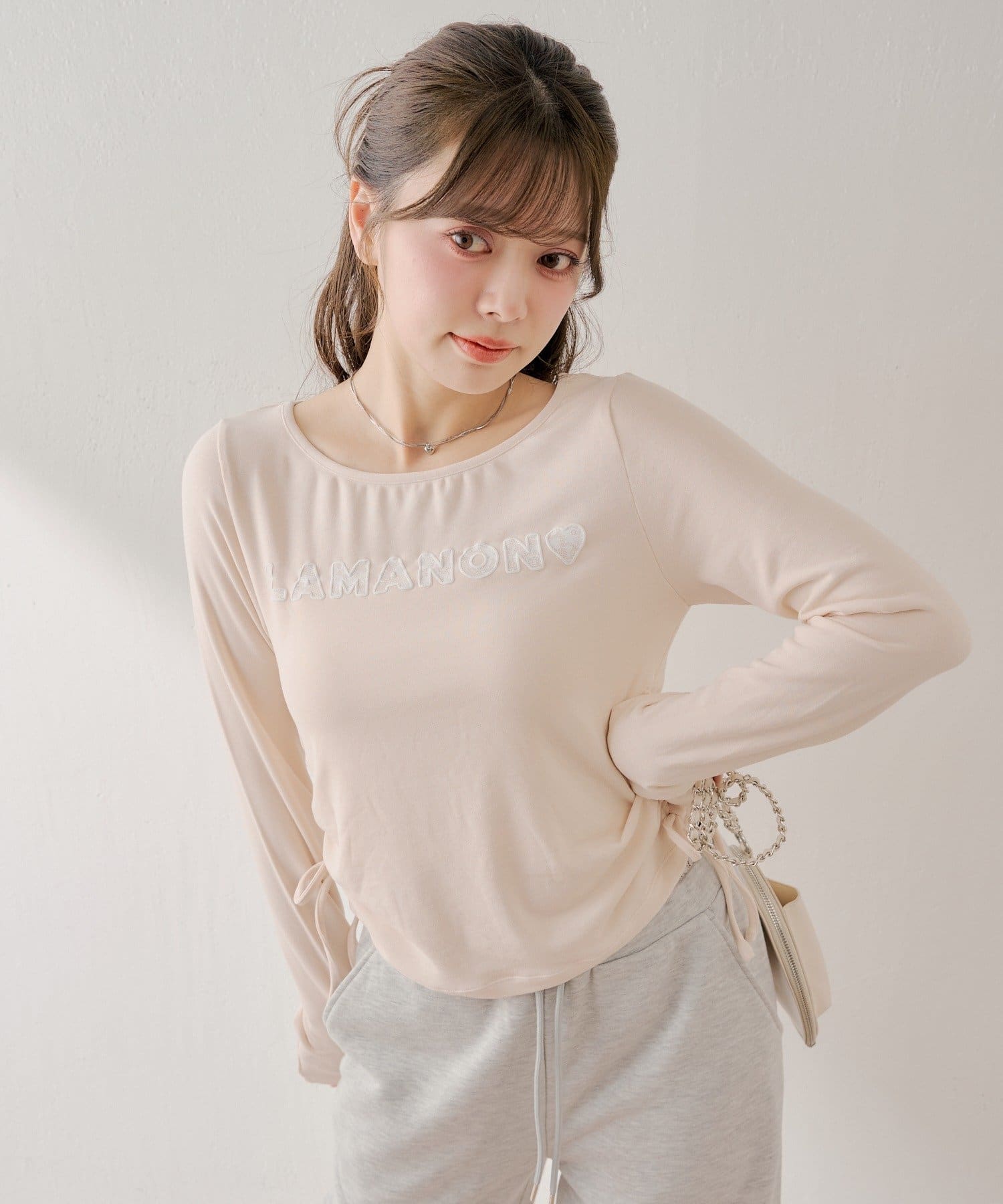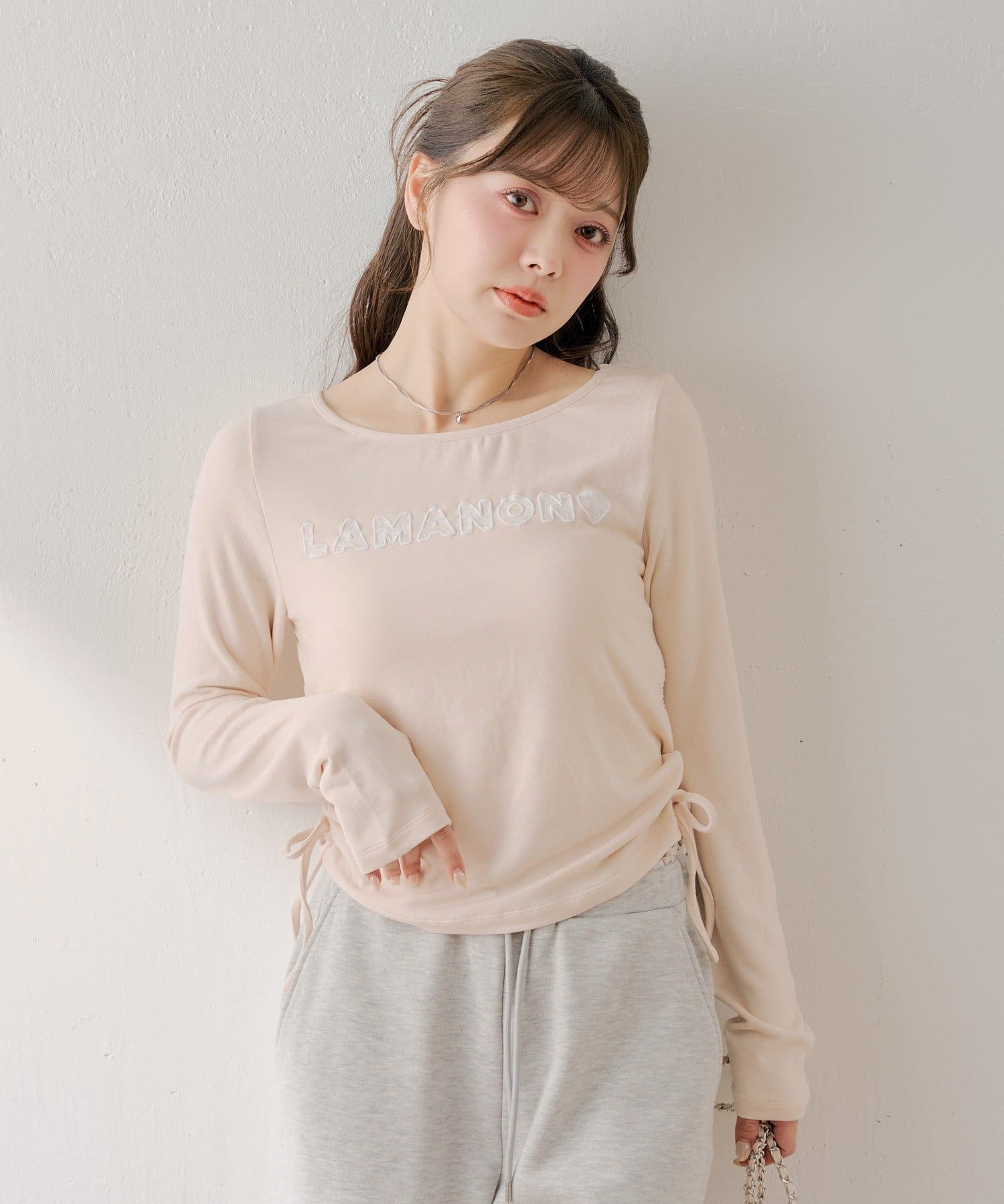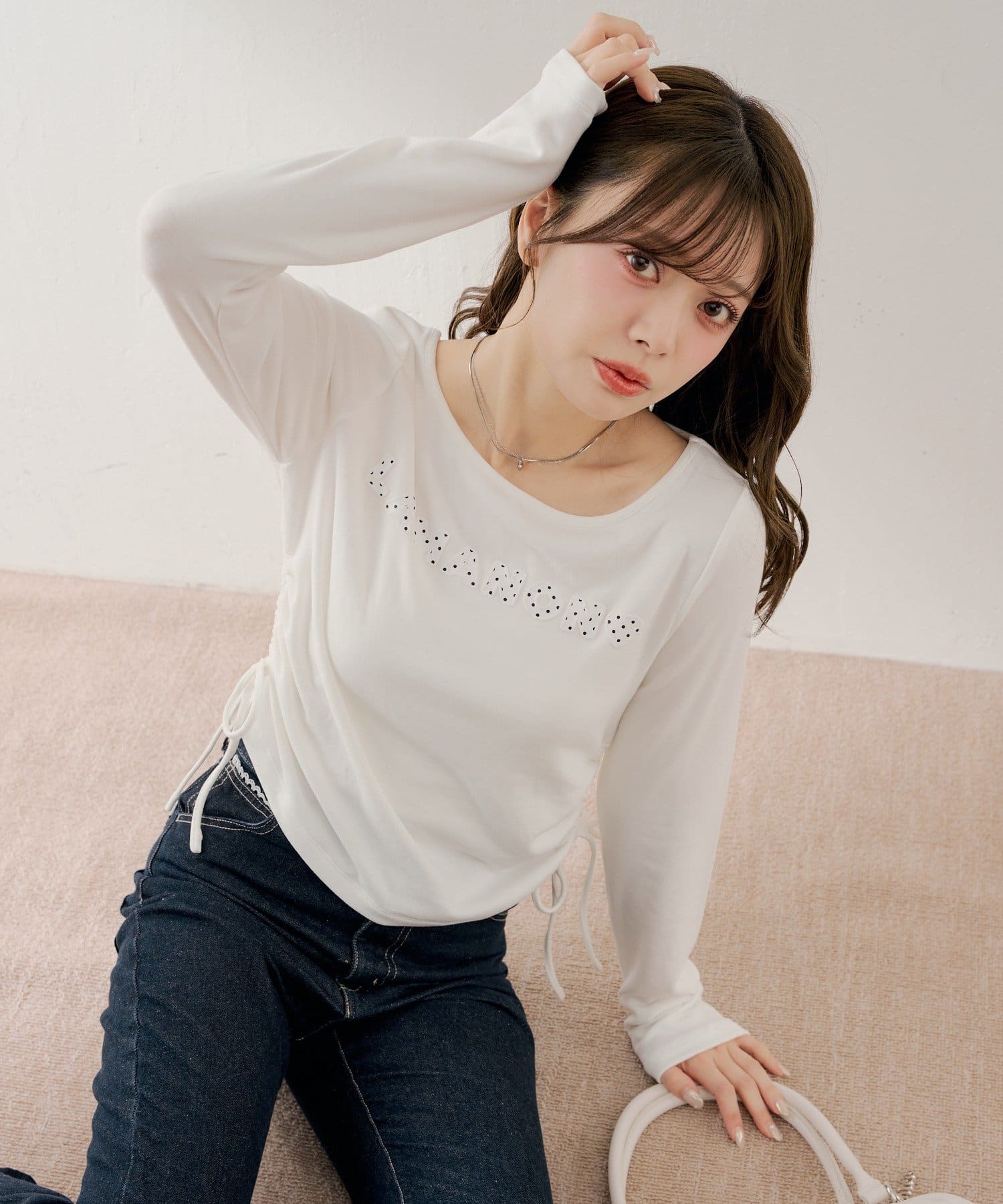 ・胸元にあしらわれたドットとレースロゴが目を惹くコンパクトT。