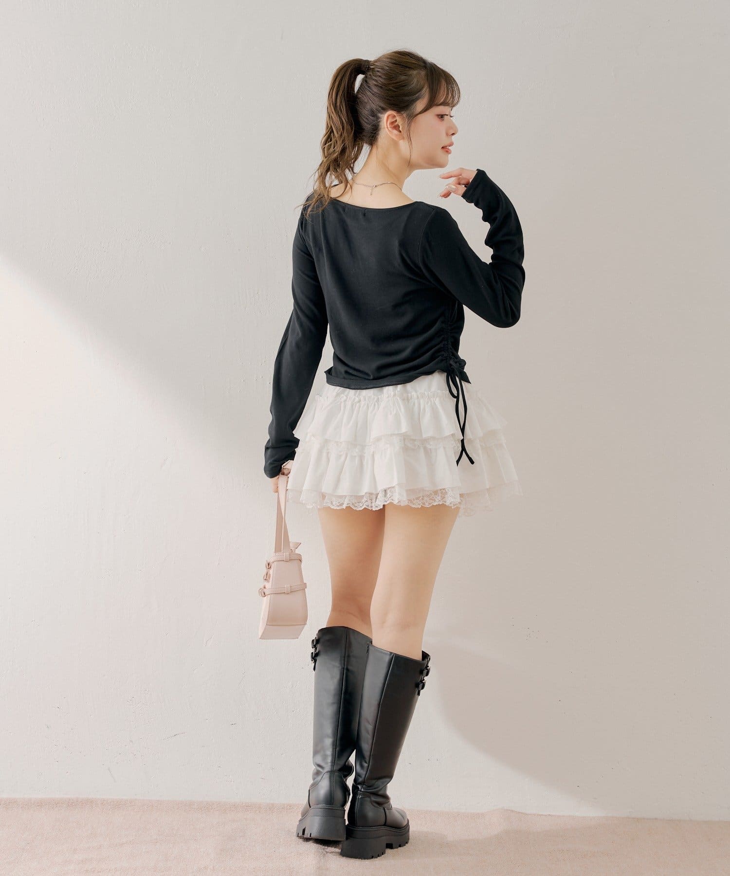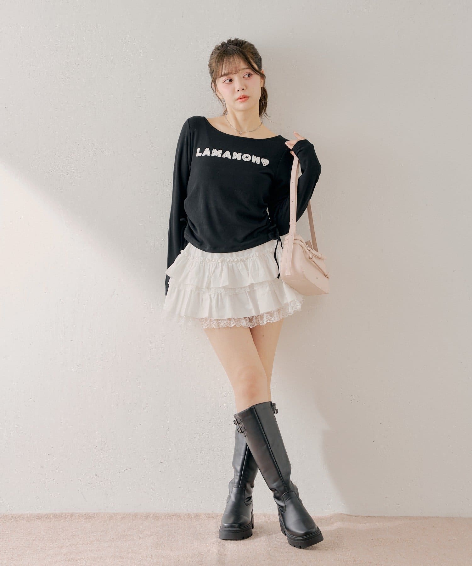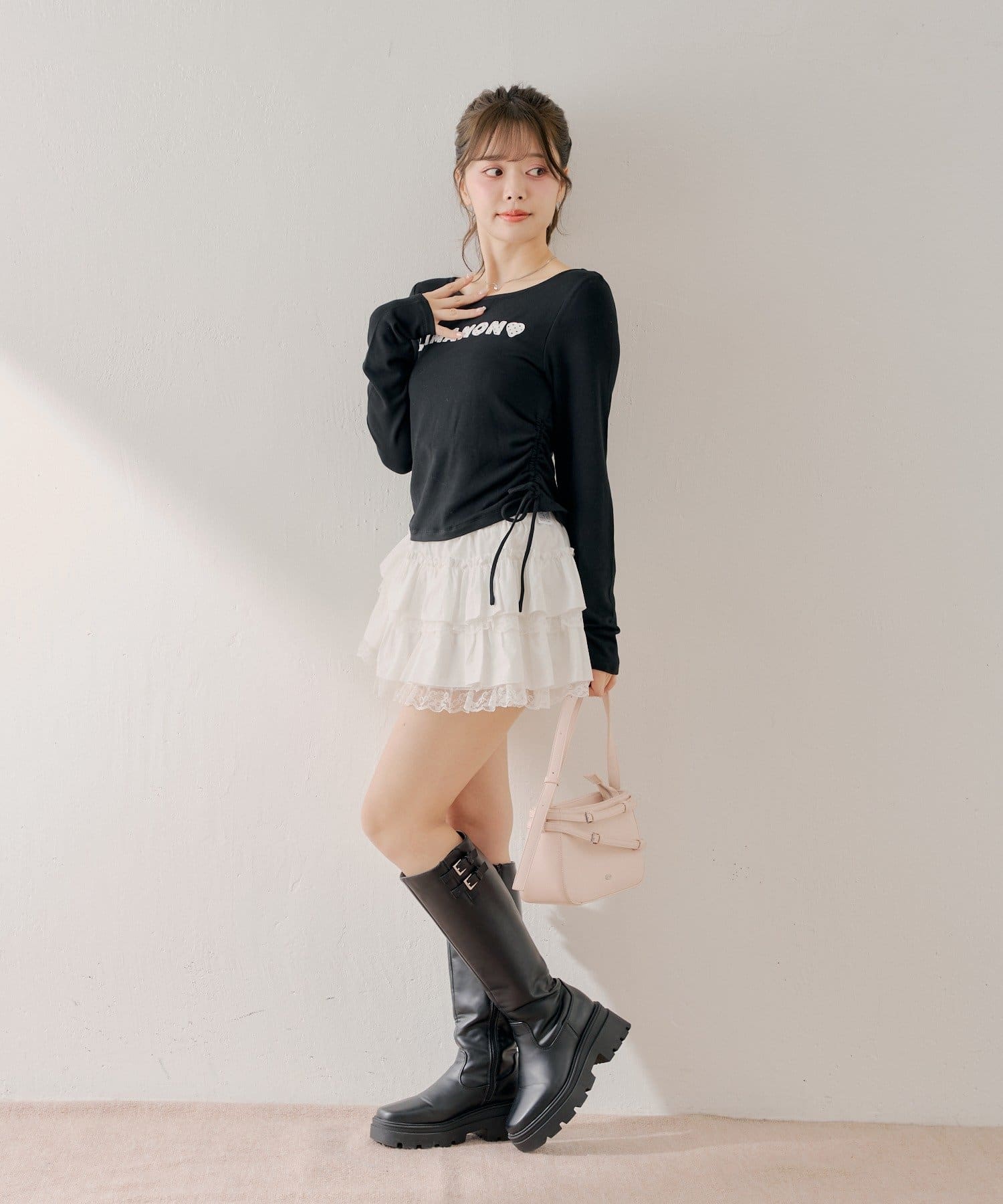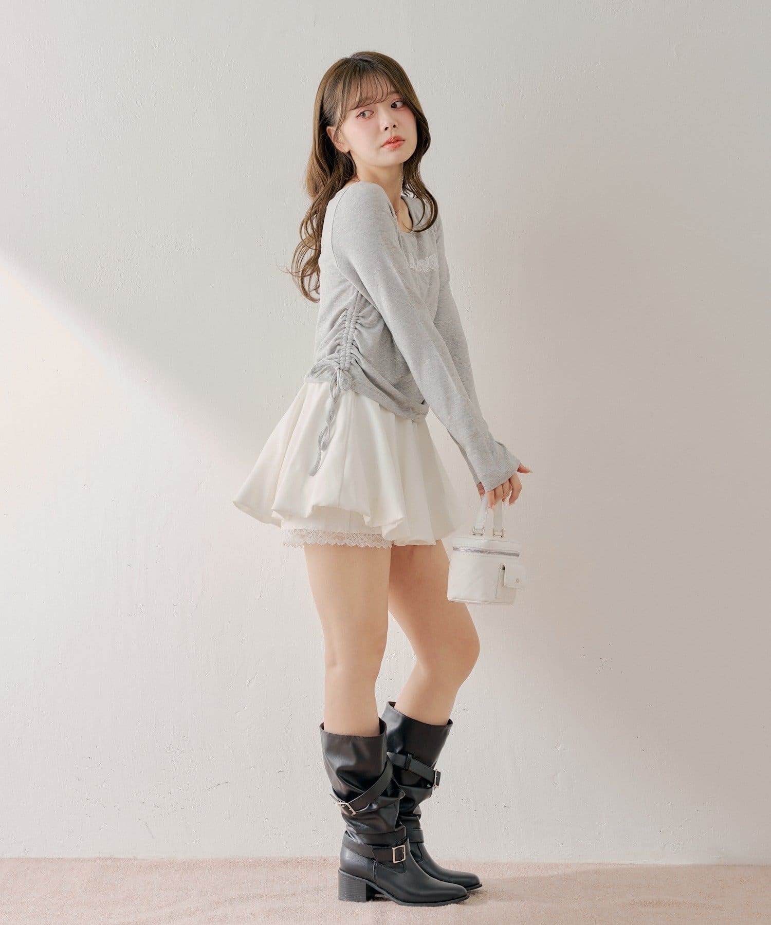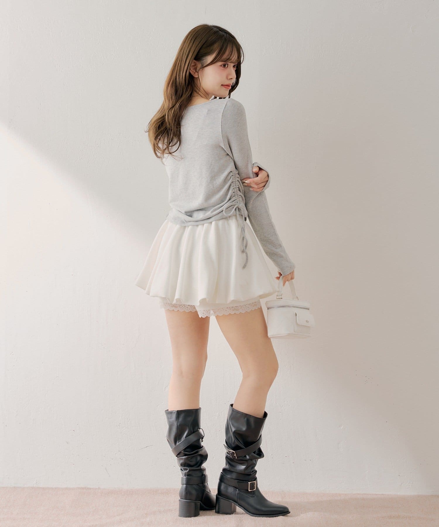 ・ミニボトムと合わせるとフェミニンなスタイルに仕上がります。