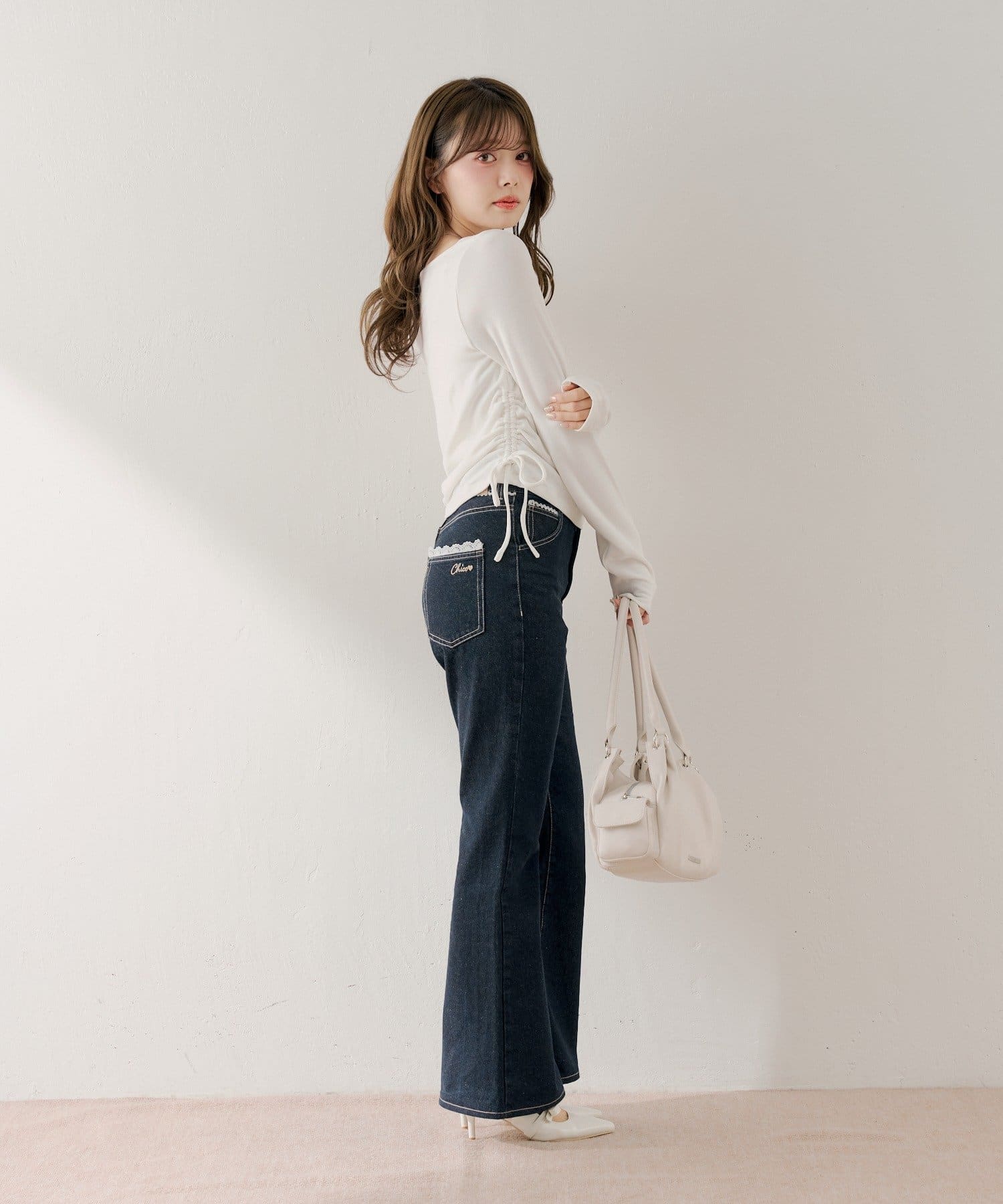 ・デニムパンツと合わせて大人カジュアルスタイルに着るのも可愛いです。