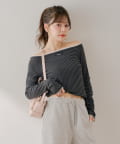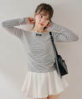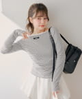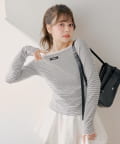 定番のボーダーに大人の可愛らしさをプラスしたコンパクトボーダートップス