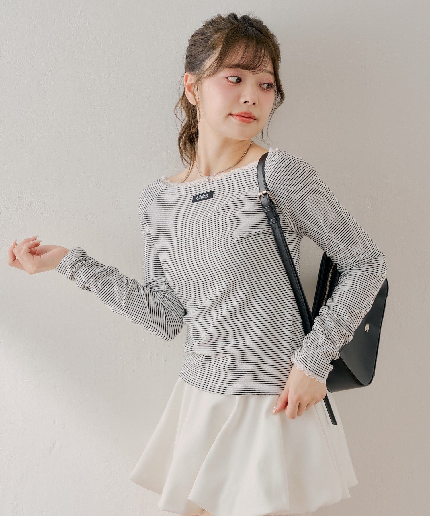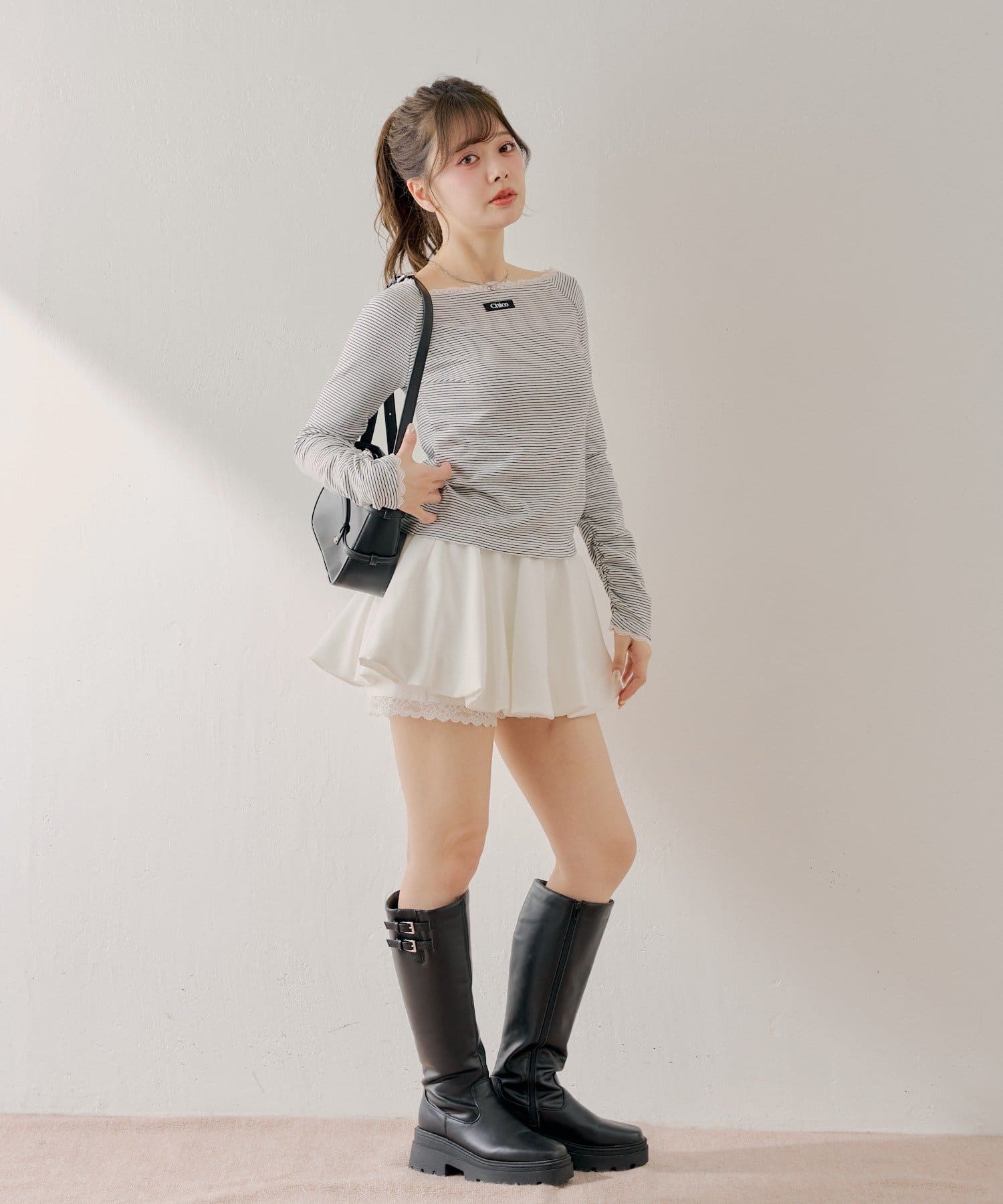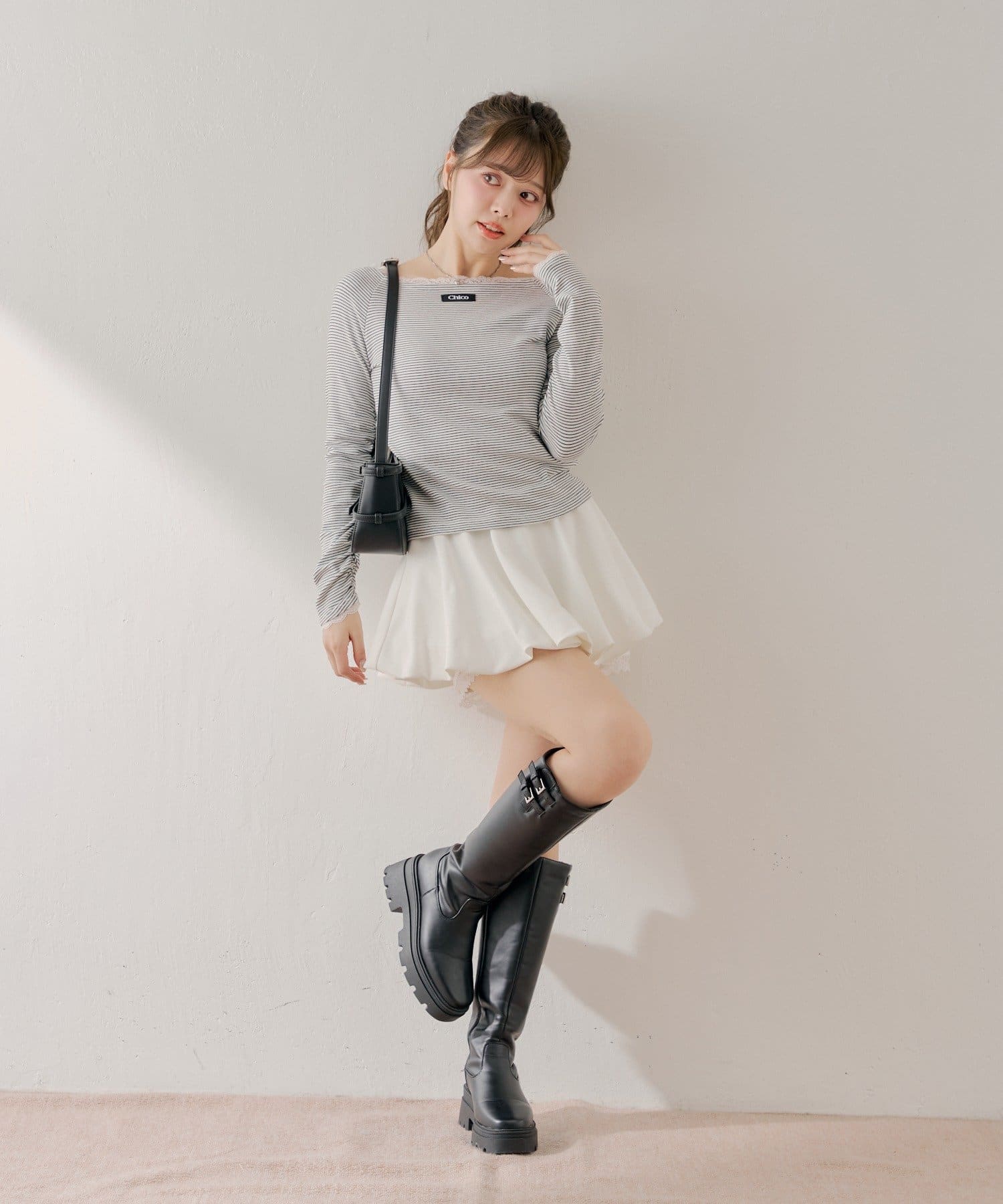 ・ミニボトムと合わせるとフェミニンなスタイルに仕上がります。