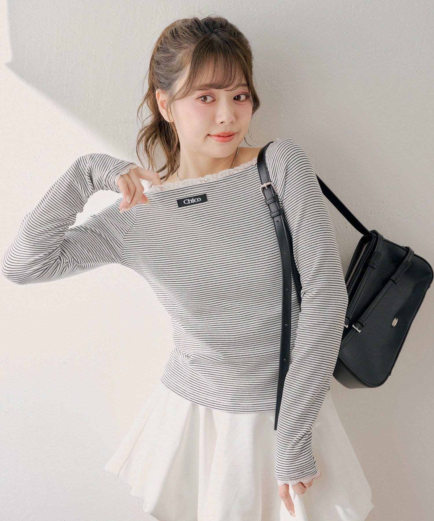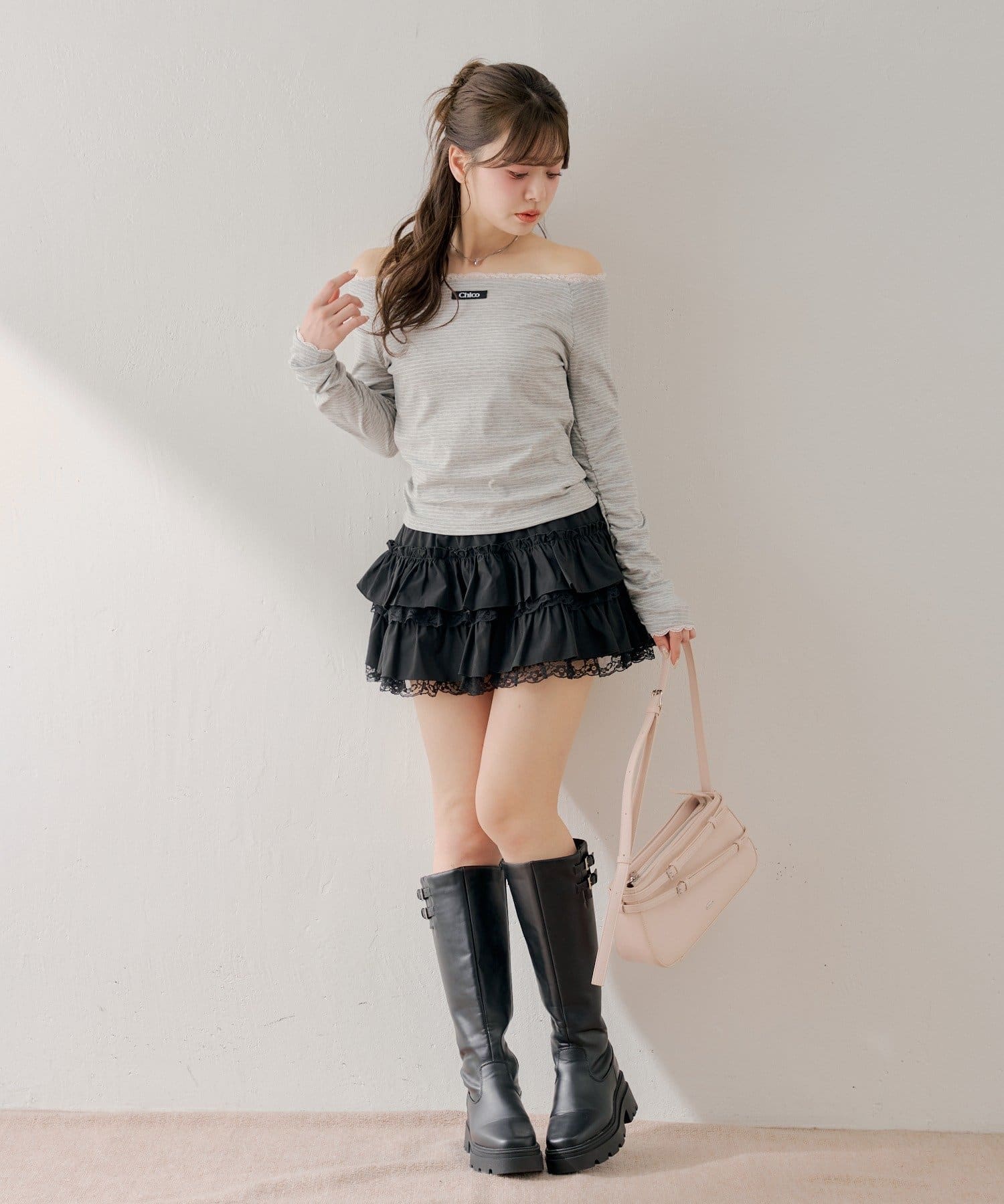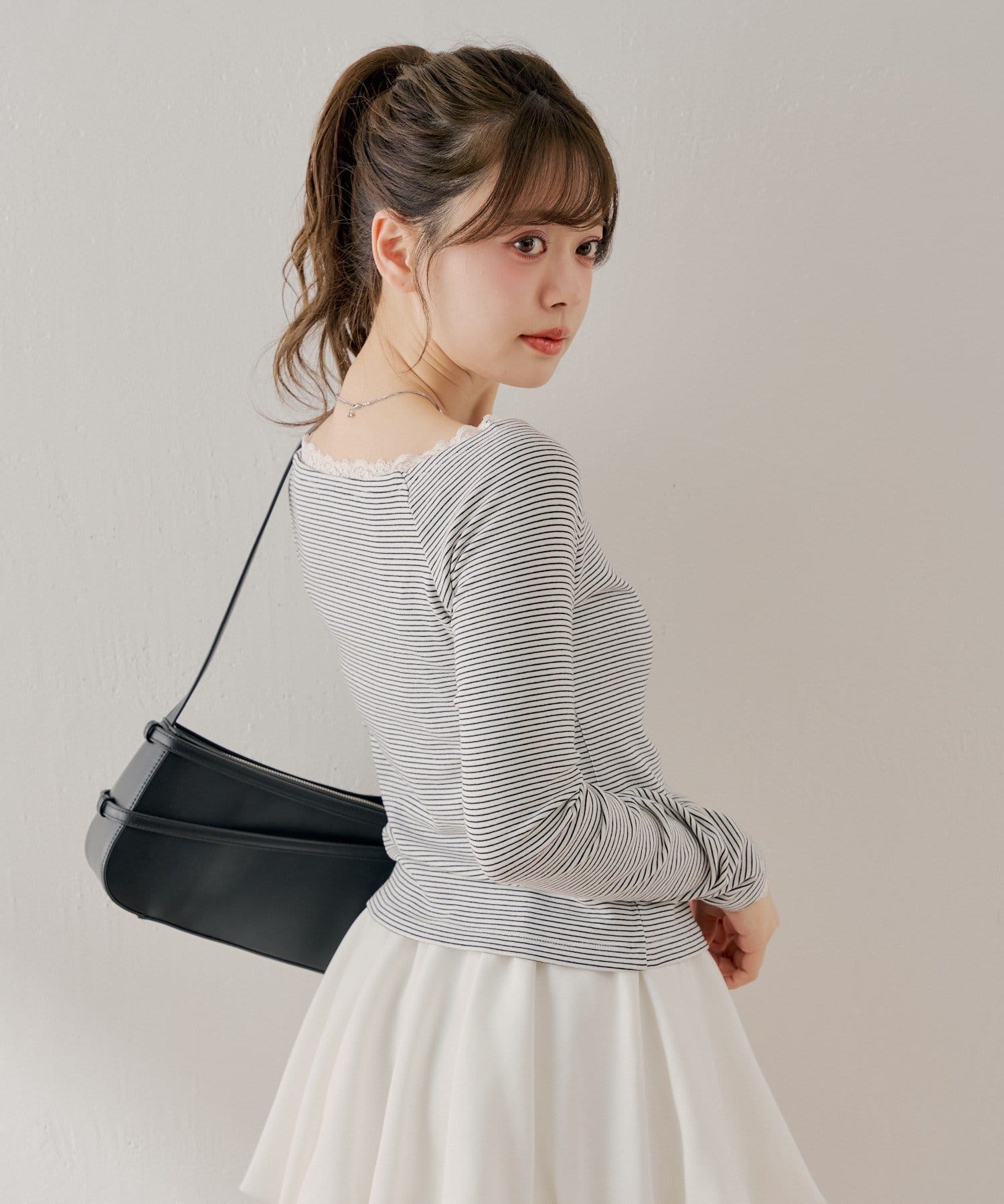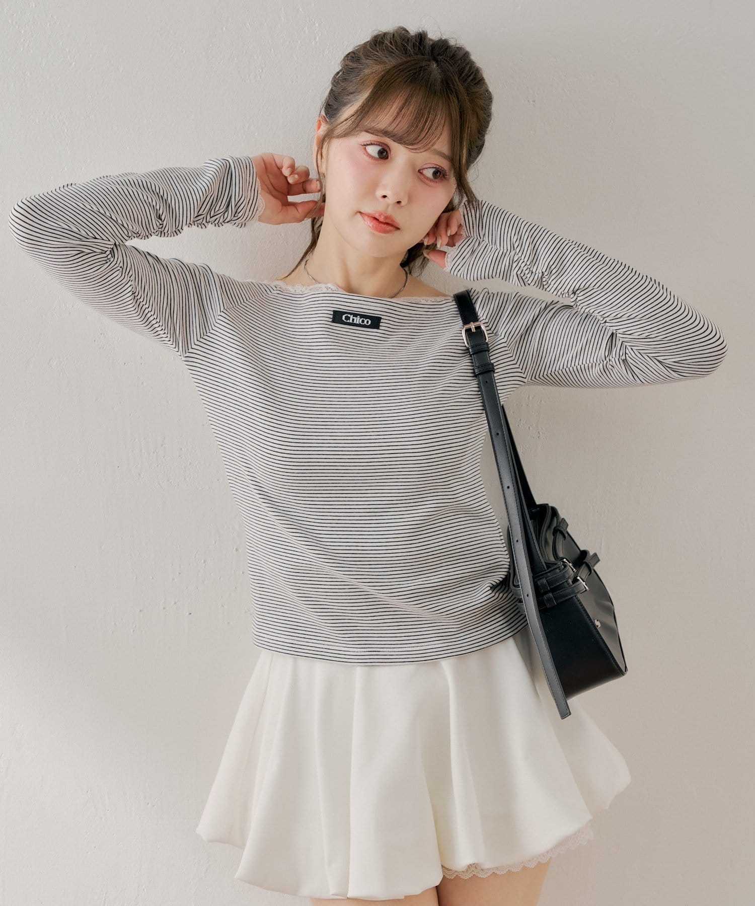 ・ミニボトムと合わせるとフェミニンなスタイルに仕上がります。