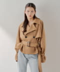 ・クラシカルなトレンチコートのデザインを、軽やかなショート丈とフレアシルエットに。