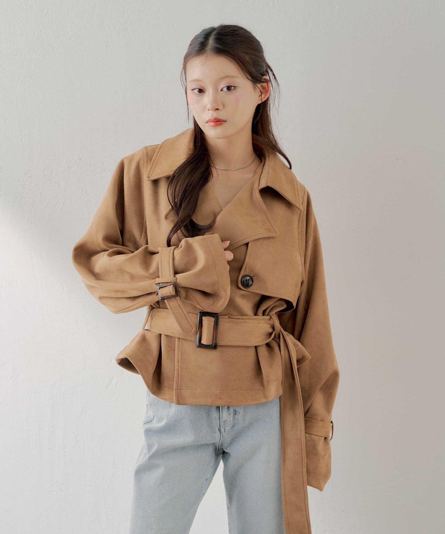 いつものコーデにトレンド感をプラスしてくれる、スエード素材のショートトレンチコート登場!