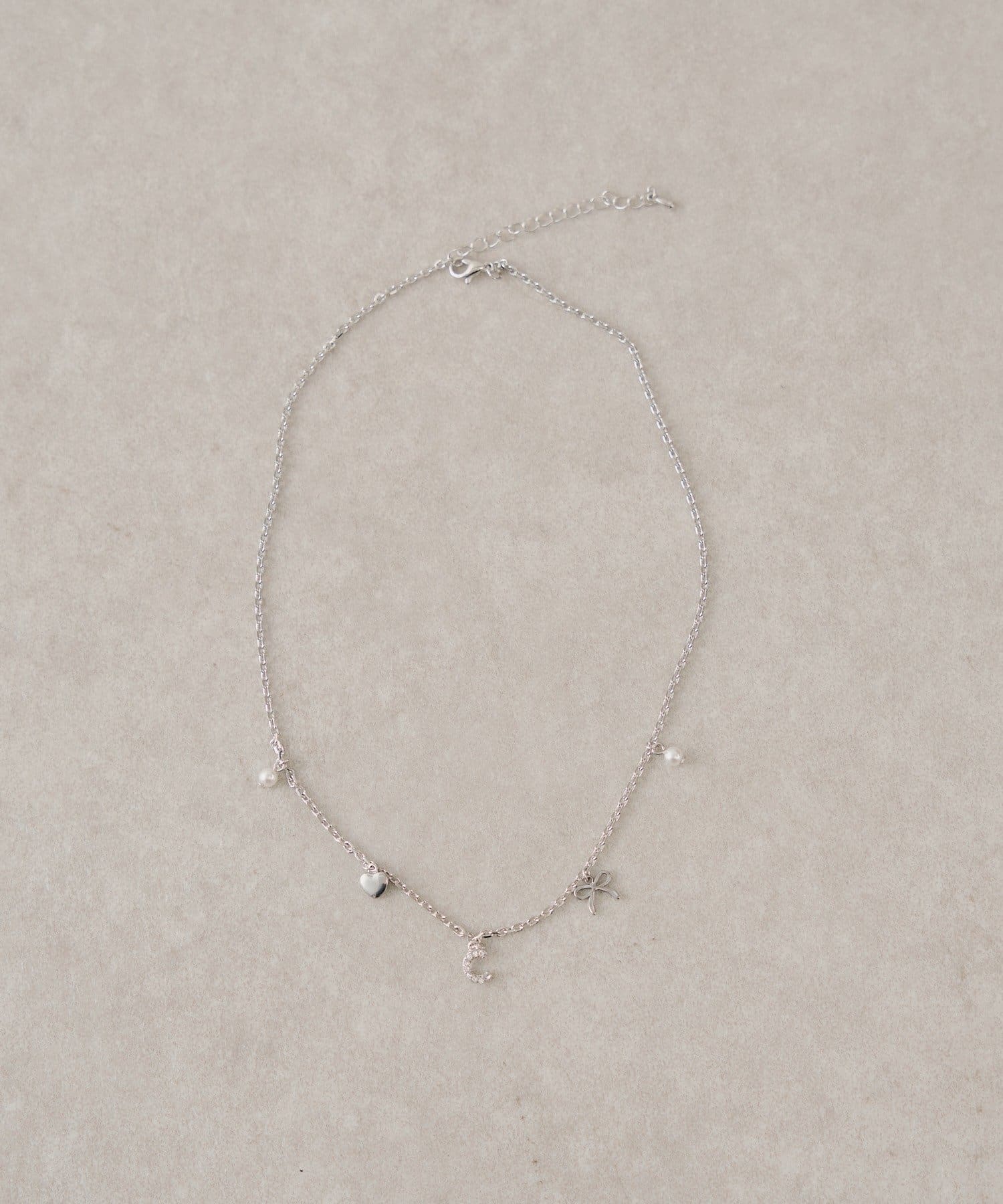 ・さりげなく揺れるアソートチャームが、胸元に上品な輝きを添えるネックレス。