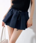 ・スカートの裾から覗くフリルがポイントのレイヤードミニスカート。