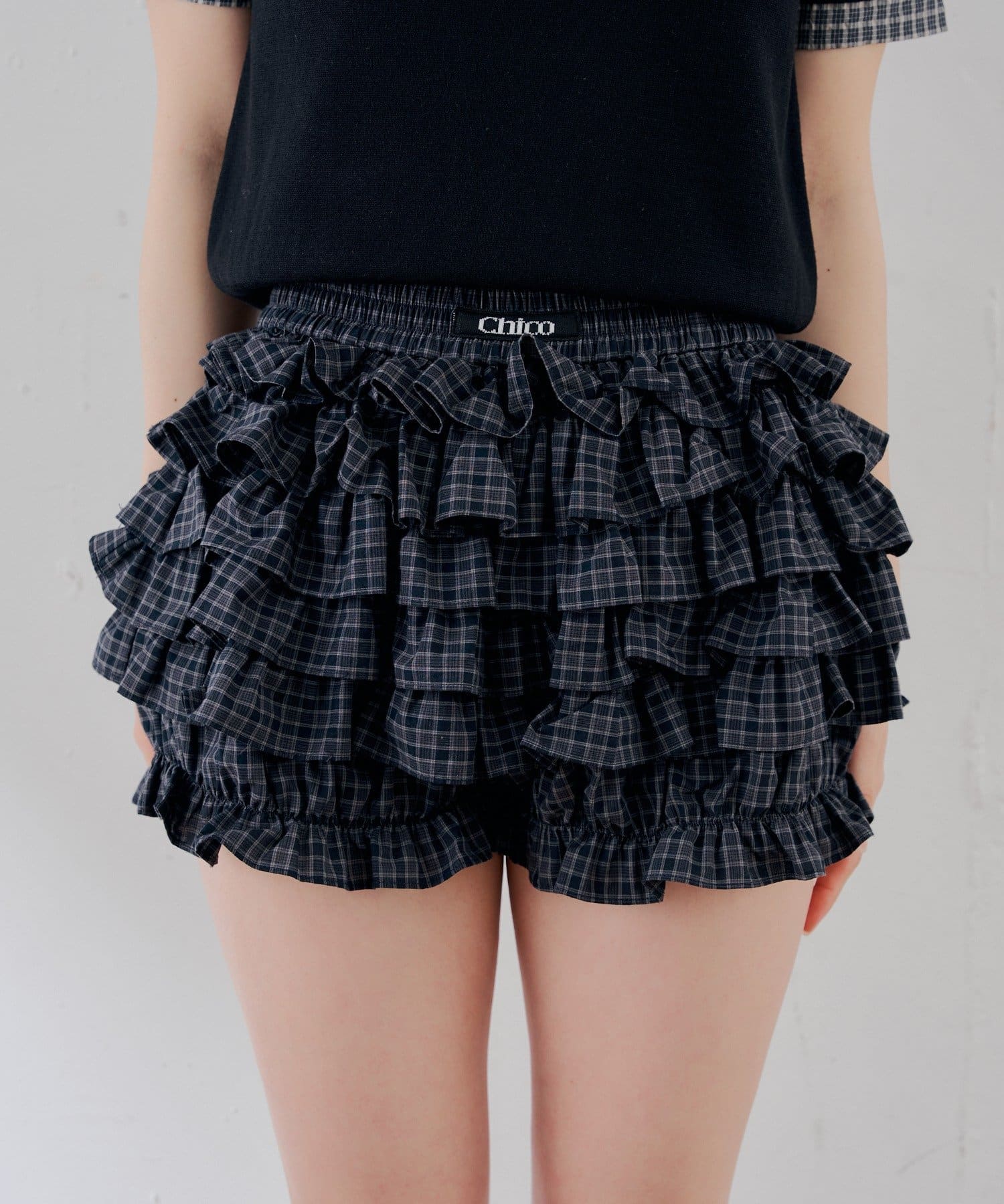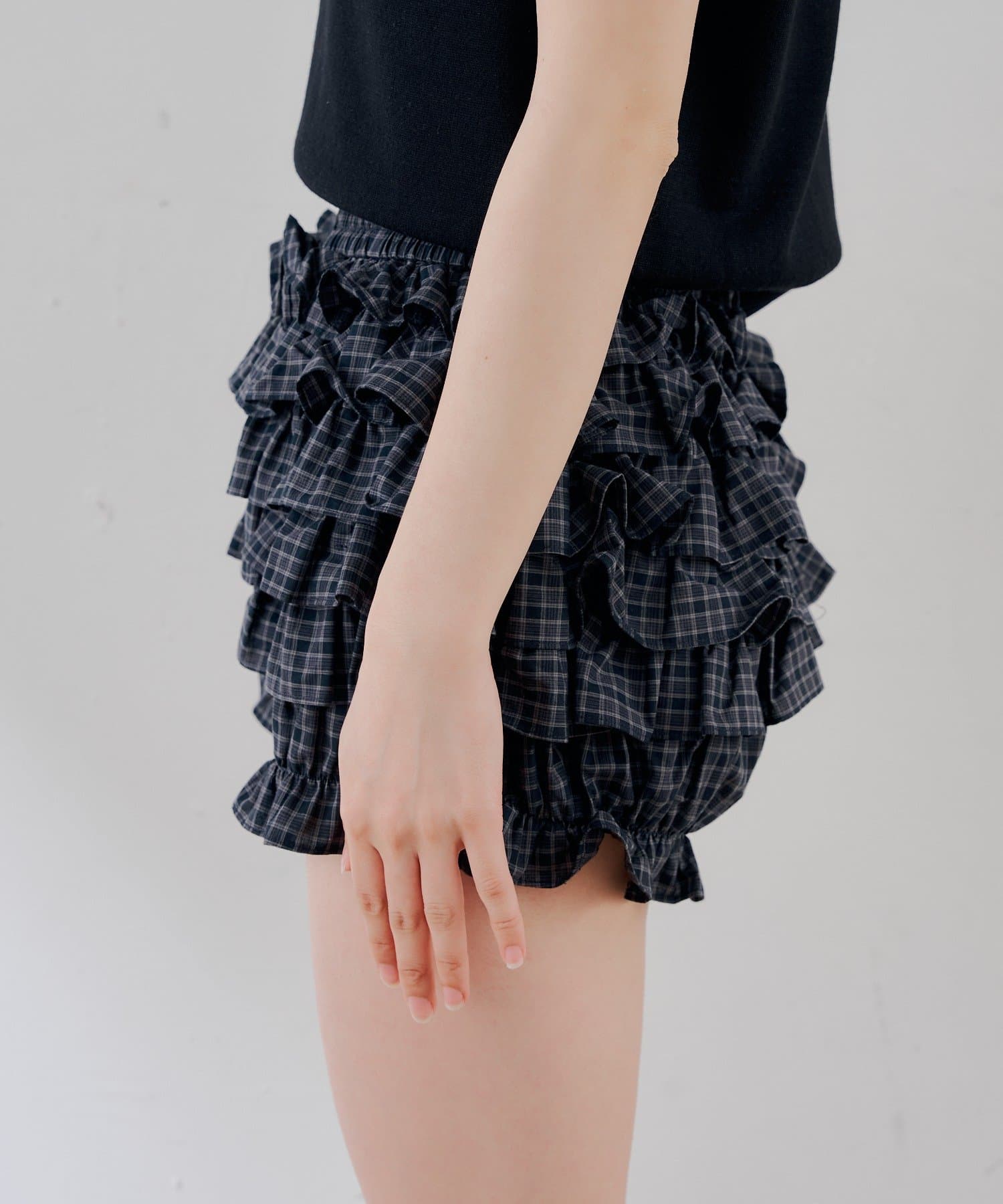 ・ふわっと広がるフリルティアードが可愛いショートパンツ。