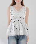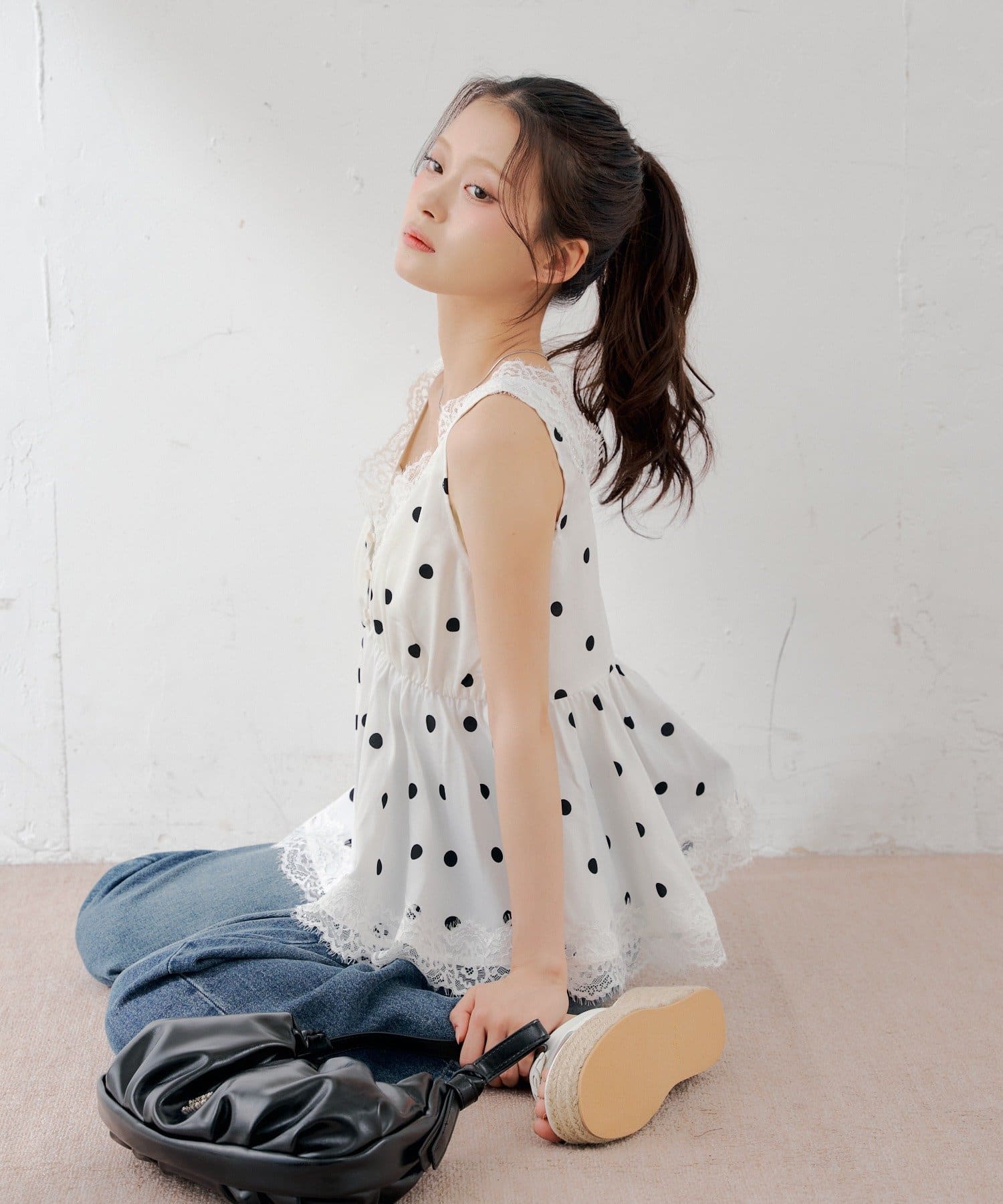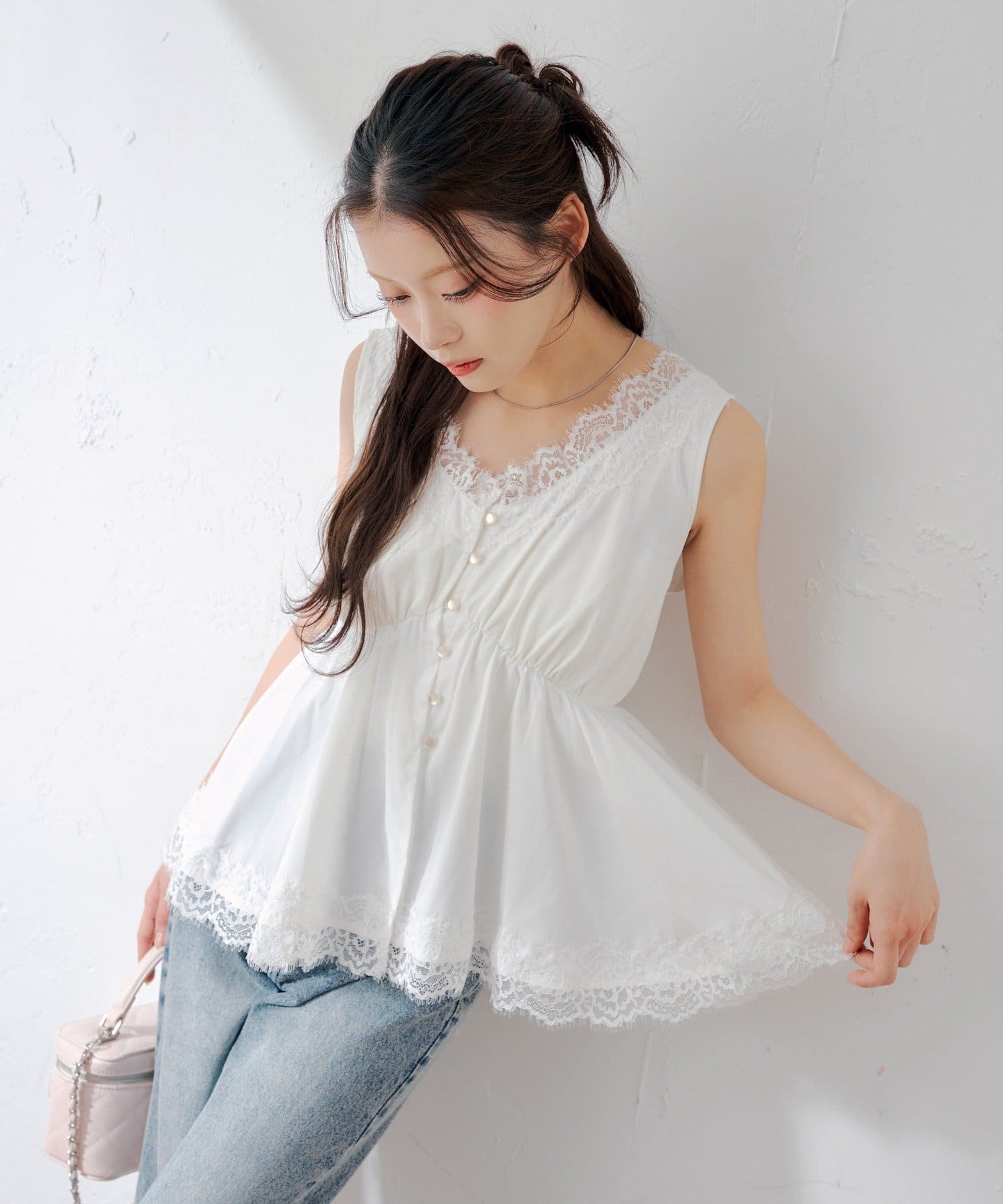 繊細なレースとふんわり広がるペプラムシルエット魅力のランジェリーブラウス