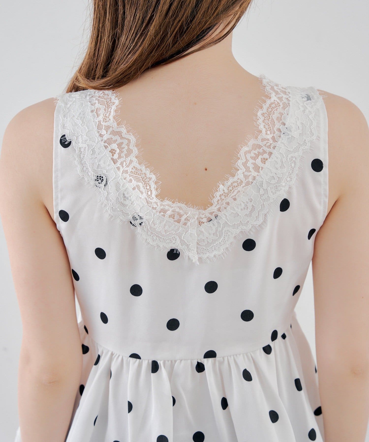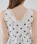 ・デコルテと裾にあしらわれた繊細なレースが上品な印象に。