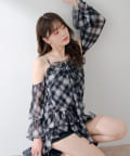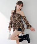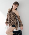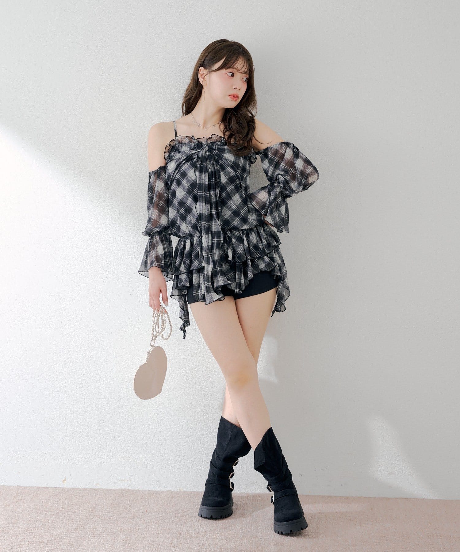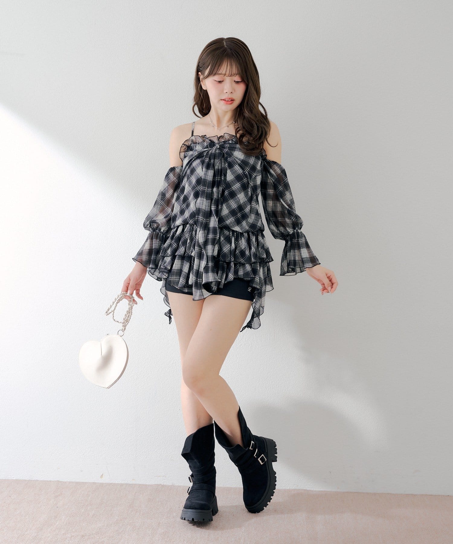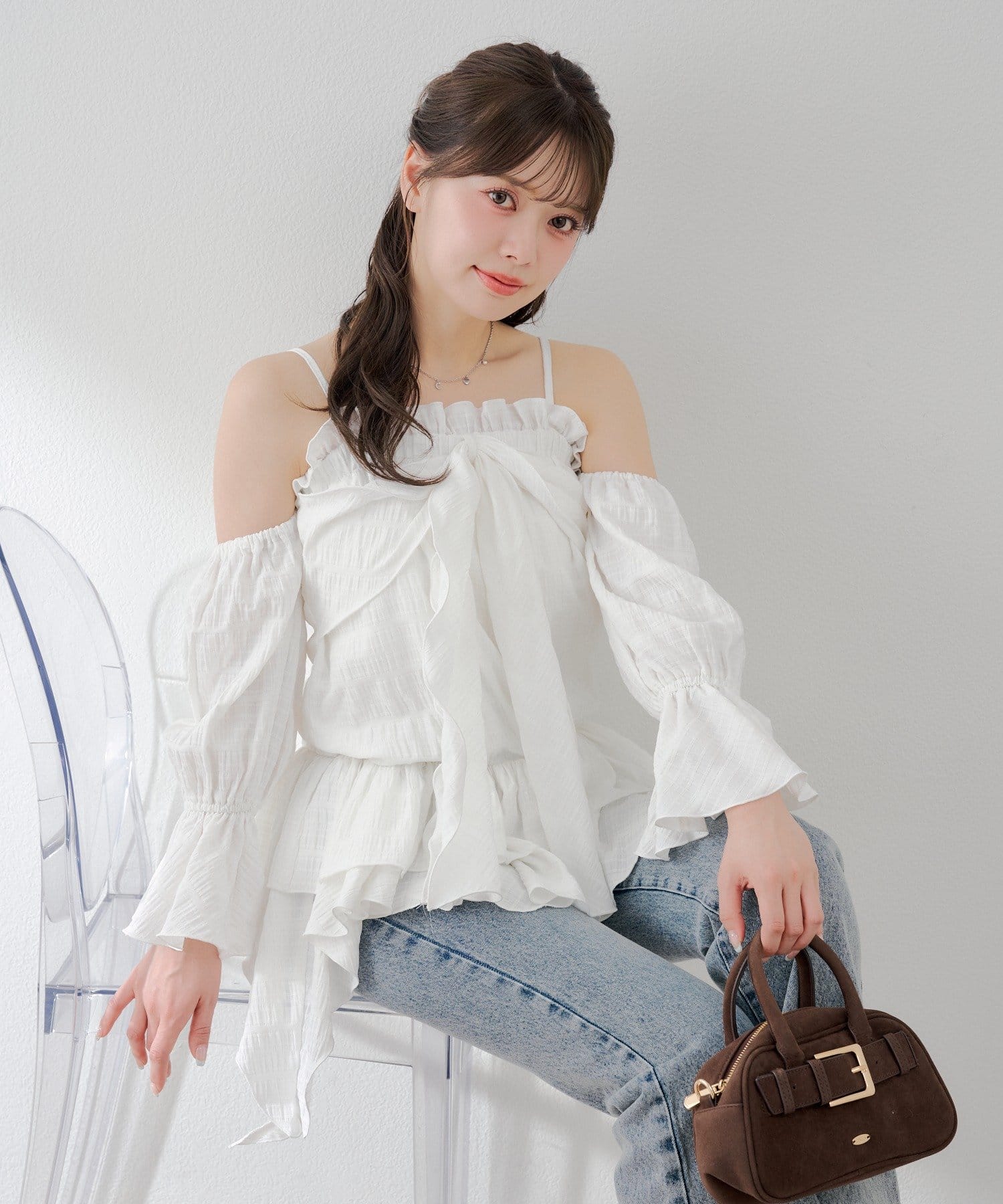 ・胸元のフリルとリボンが、フェミニンなアクセントをプラス。