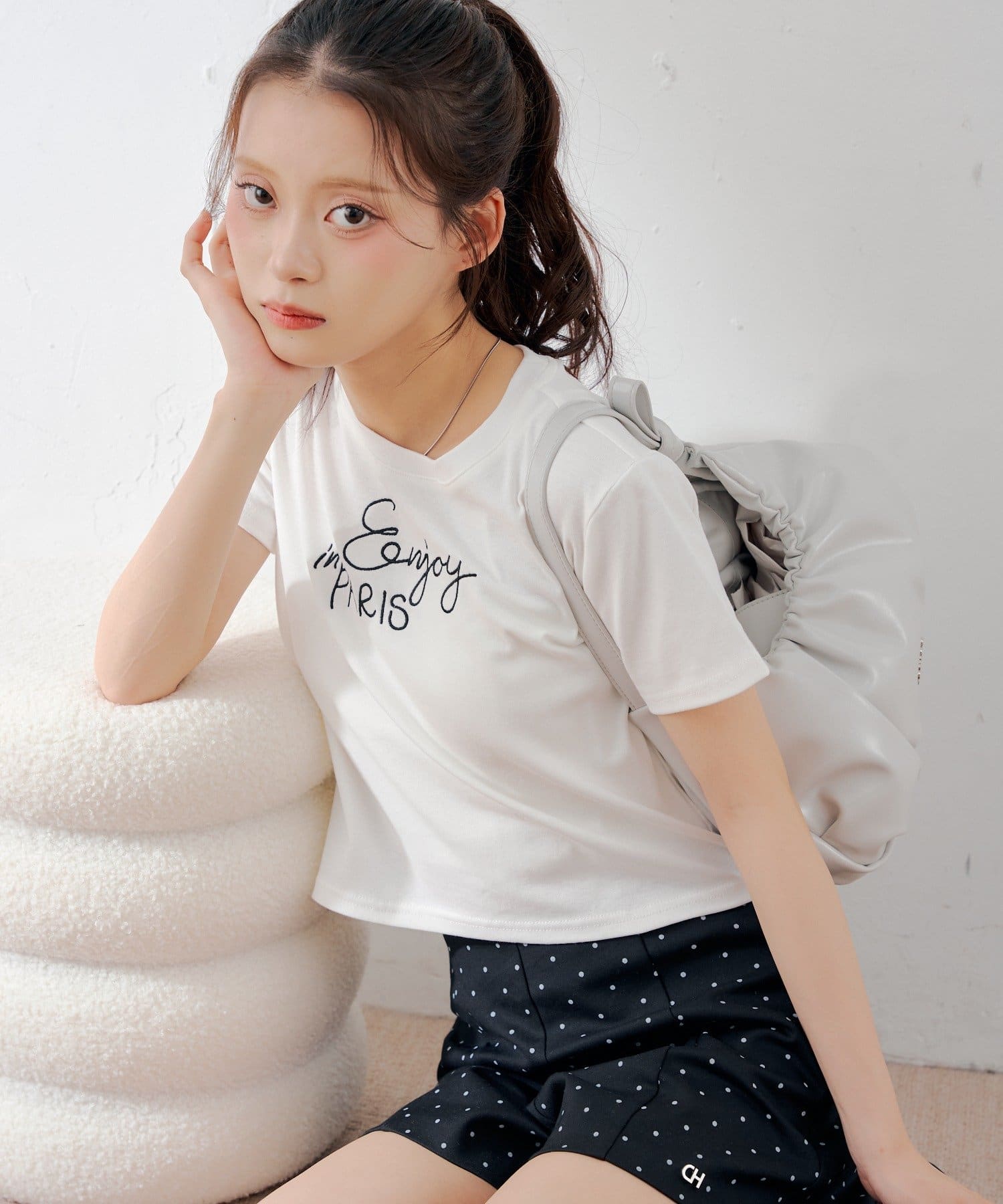 ・胸元のロゴ刺繍がさりげなくも目を惹くアクセントに。