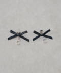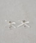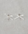 ・繊細なリボンときらめくビジューロゴが可愛らしさを引き立てるピアス。
