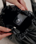 ・コロンとしたフォルムとふんわりと寄せられたギャザーが、大人可愛いサークルバッグ。
