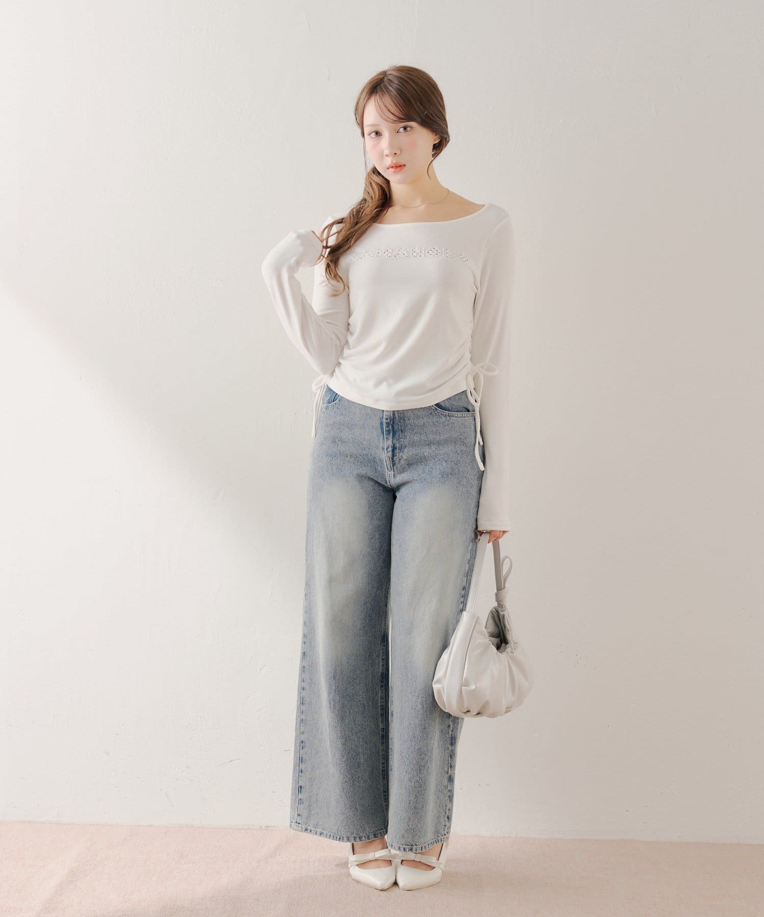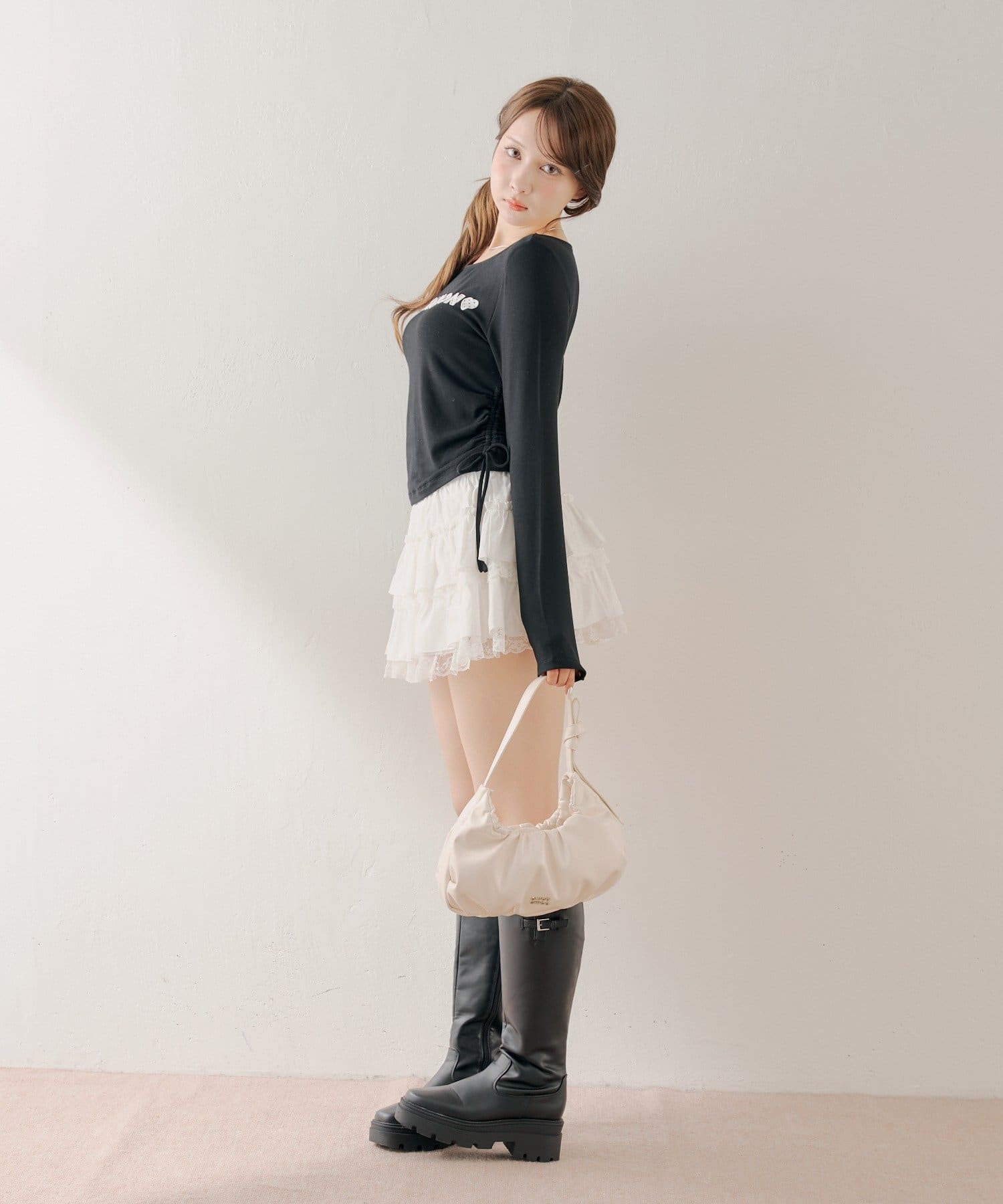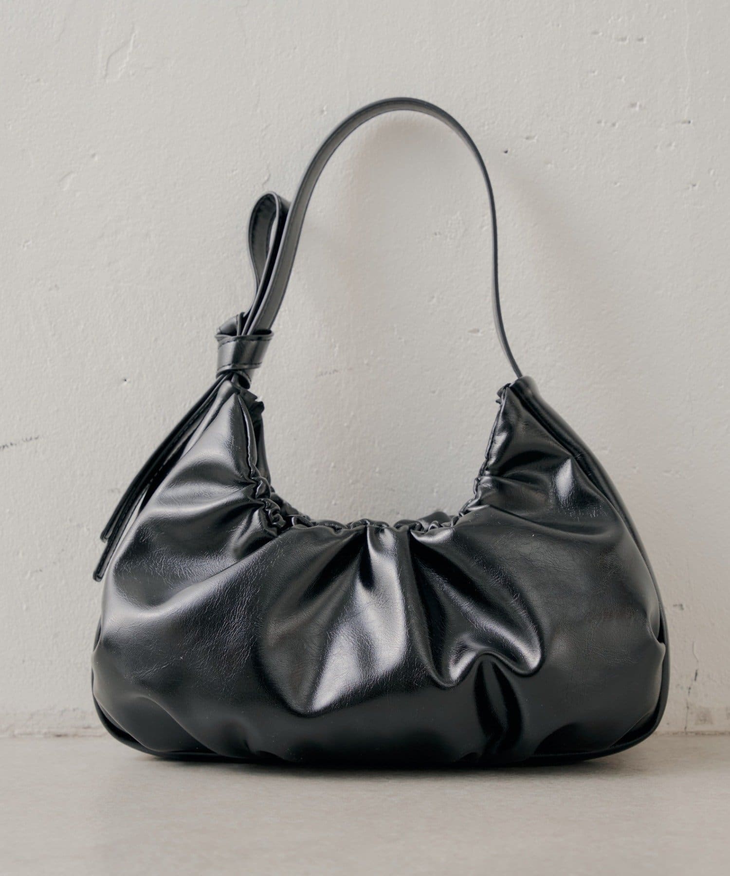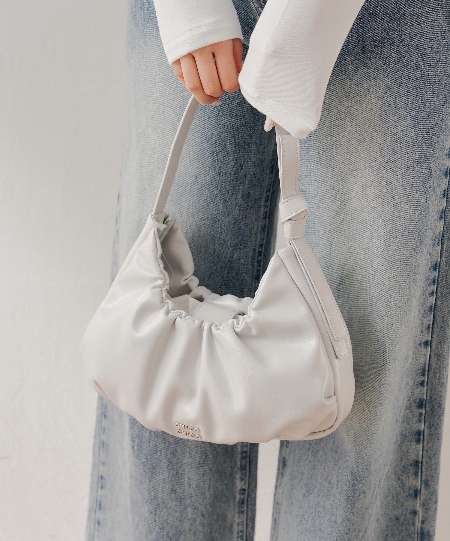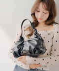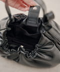 ・バッグ全体に施されたギャザーが、柔らかな印象を与え、コーディネートに抜け感をプラスします。
