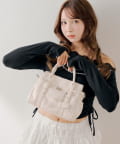 ・上品な甘さとエッジの効いたデザインが魅力のリボンチャーム付ベルトデザインバッグ。