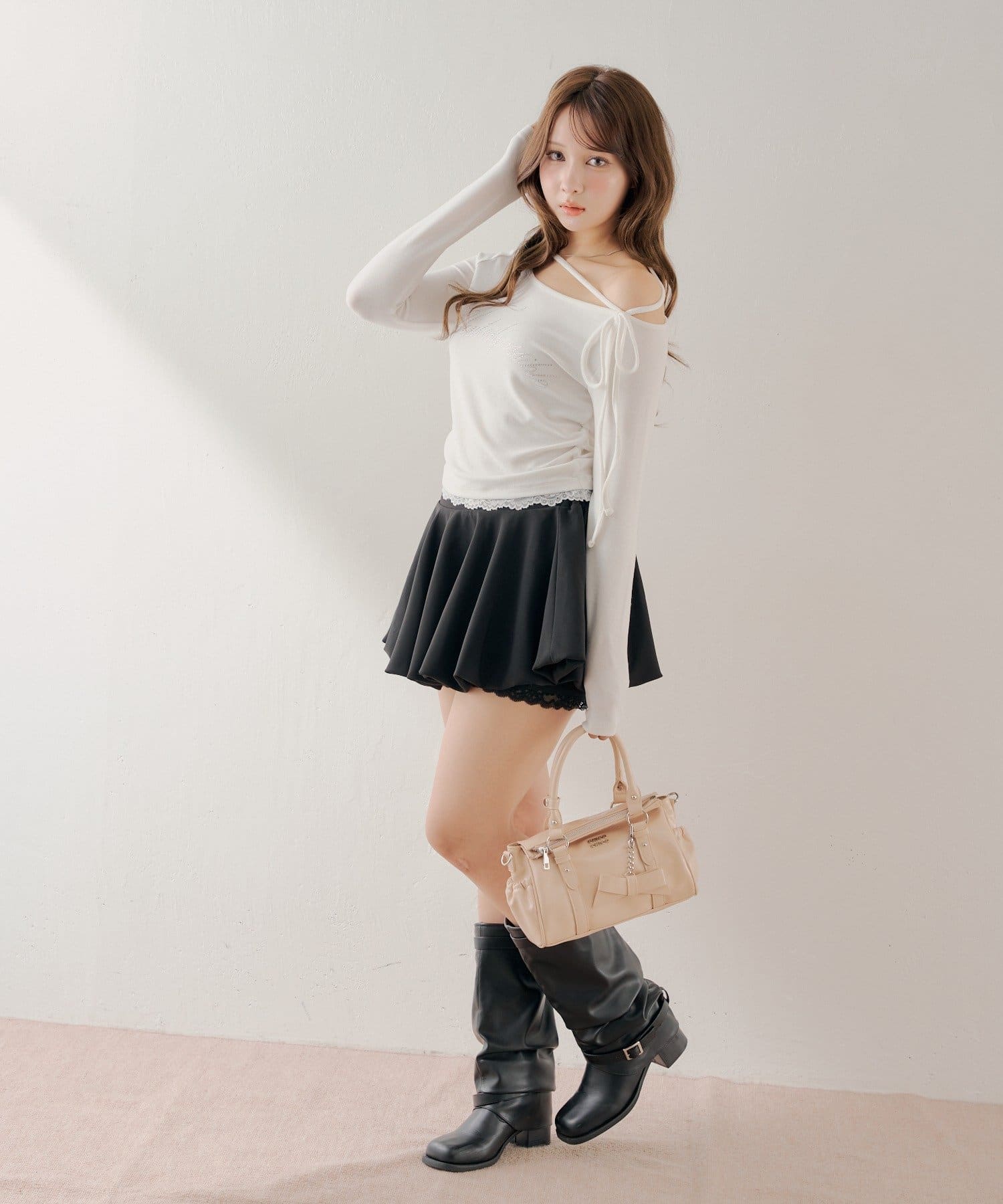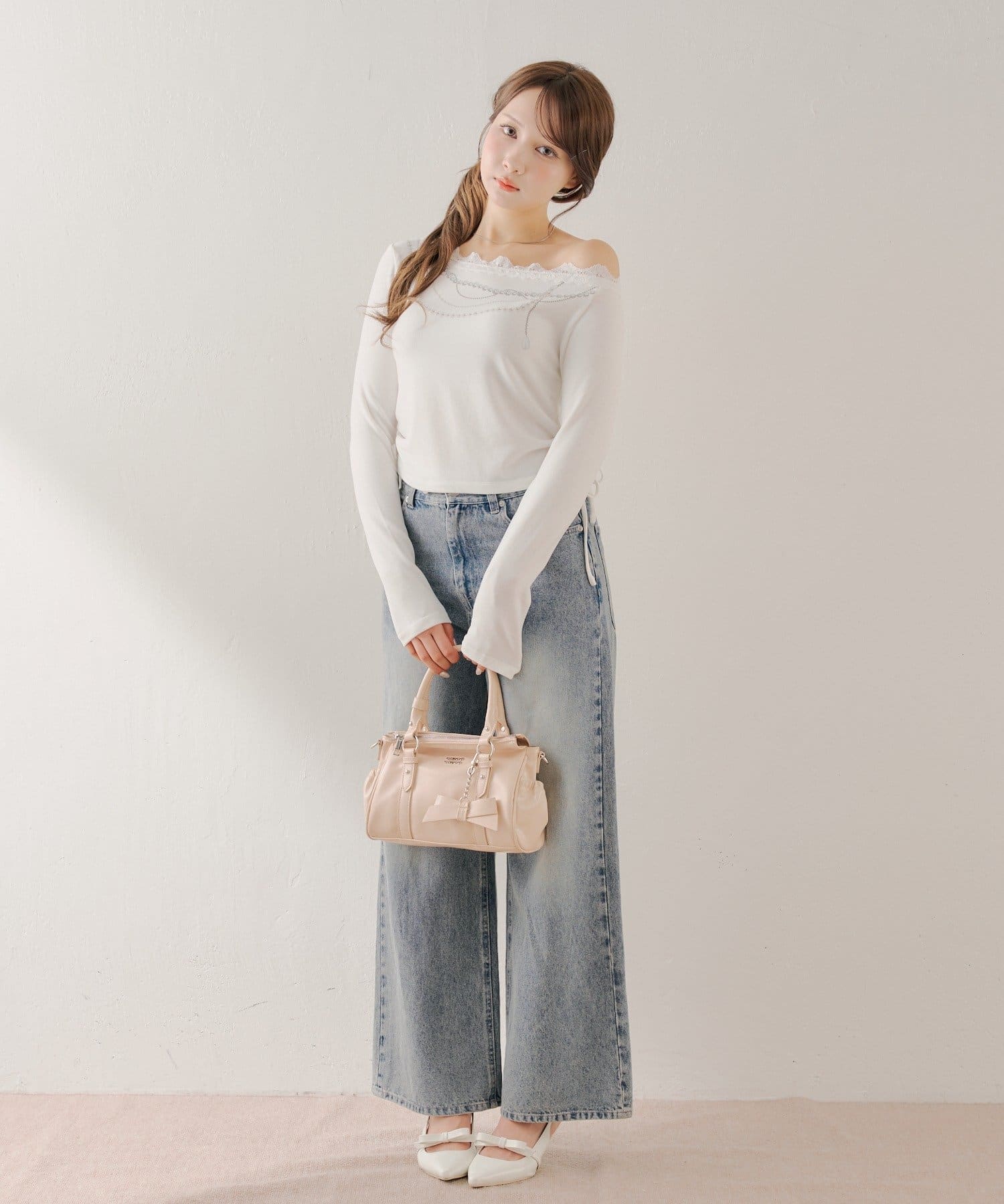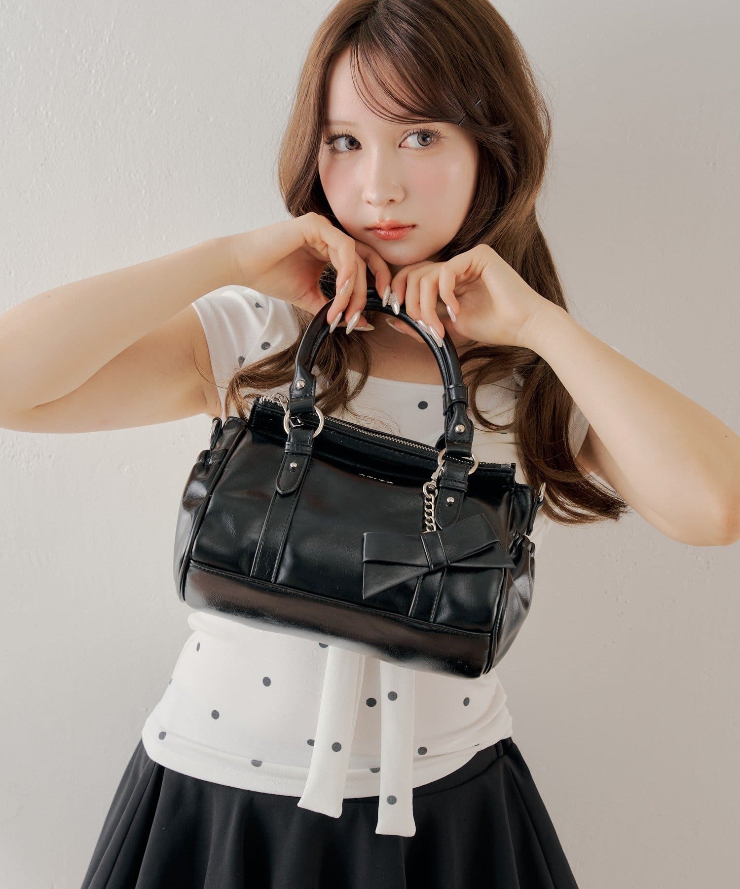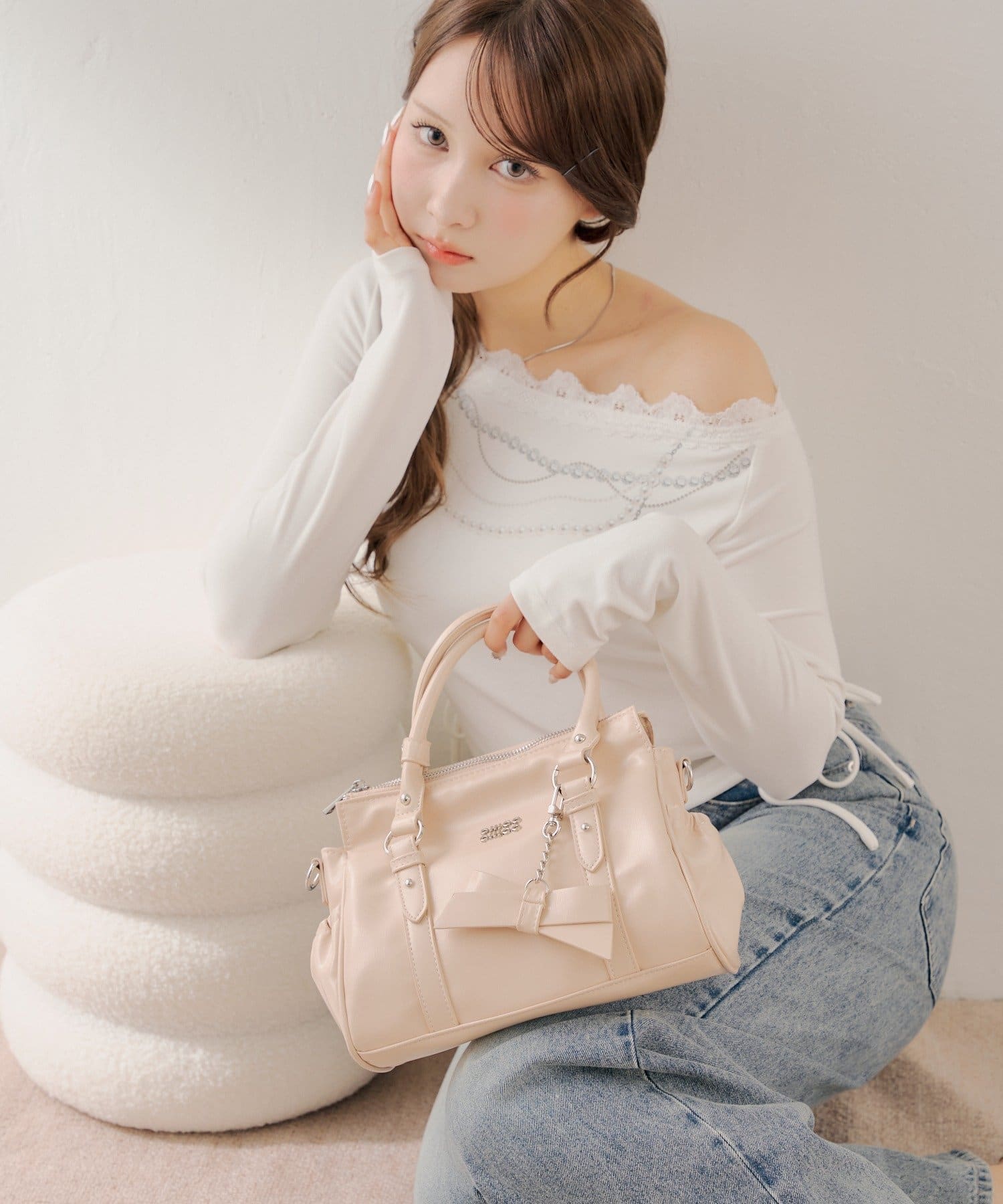 リボンチャームが目を惹く大人可愛いベルトデザインバッグ