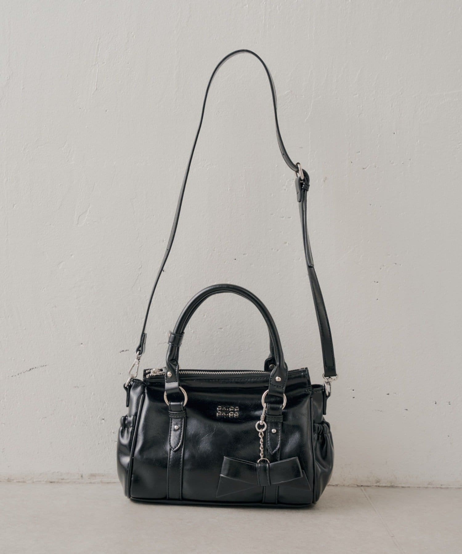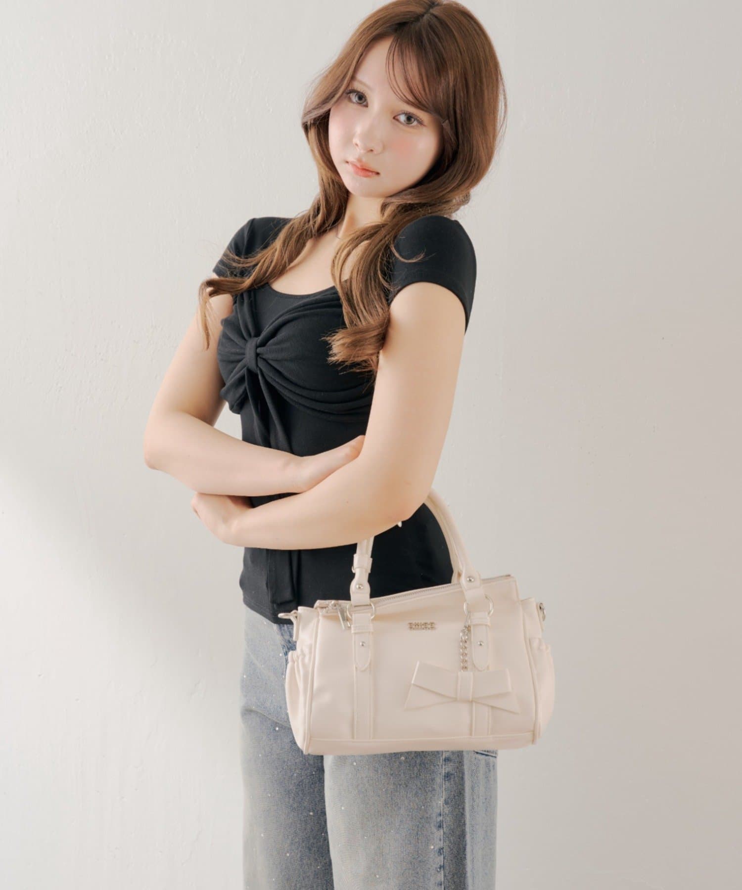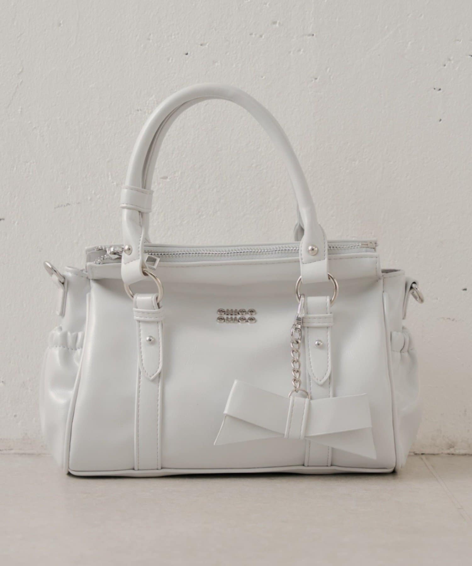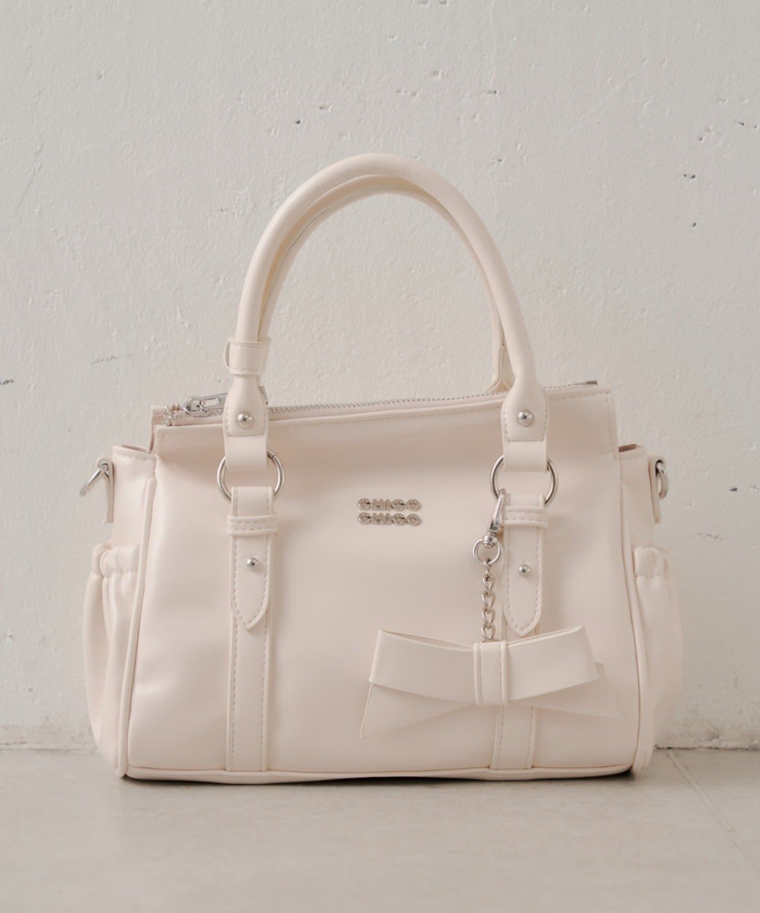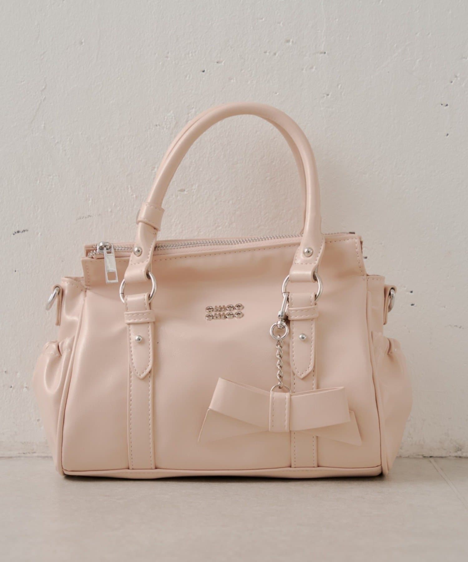 リボンチャーム付ベルトデザインバッグ