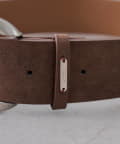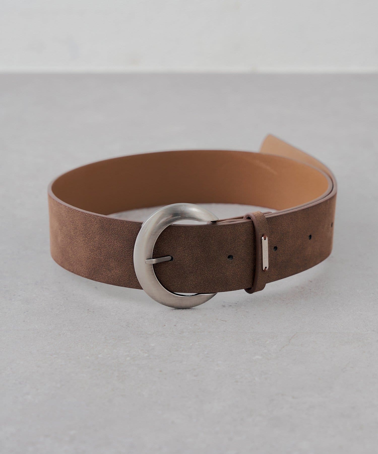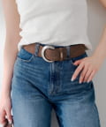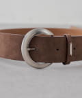 ・シンプルながらも洗練されたデザインのサークルバックル太ベルト。