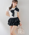 ・シンプルなトップスと合わせれば、スカートのデザインが際立つフェミニンなスタイリングに。